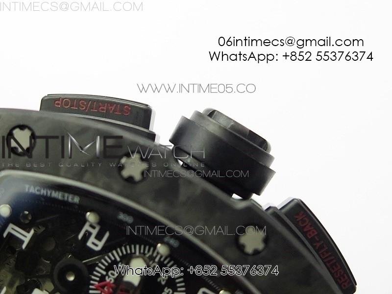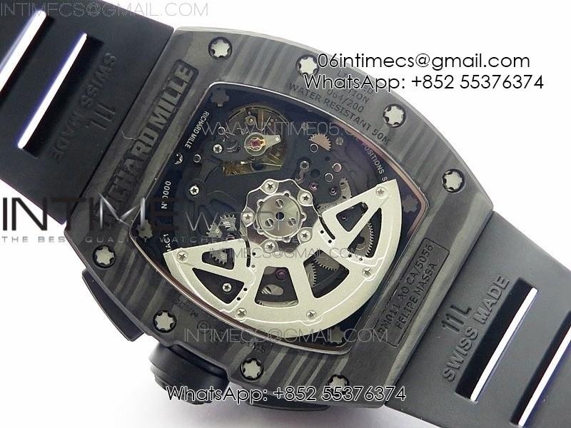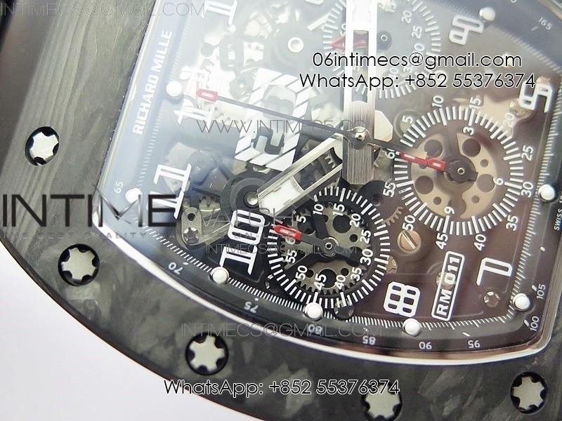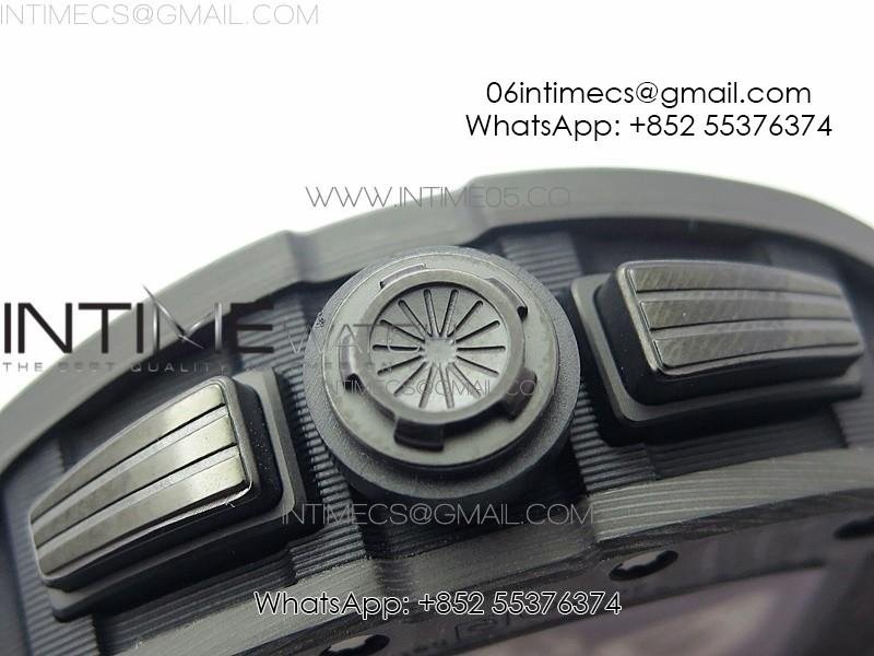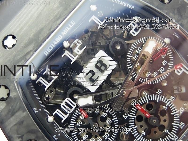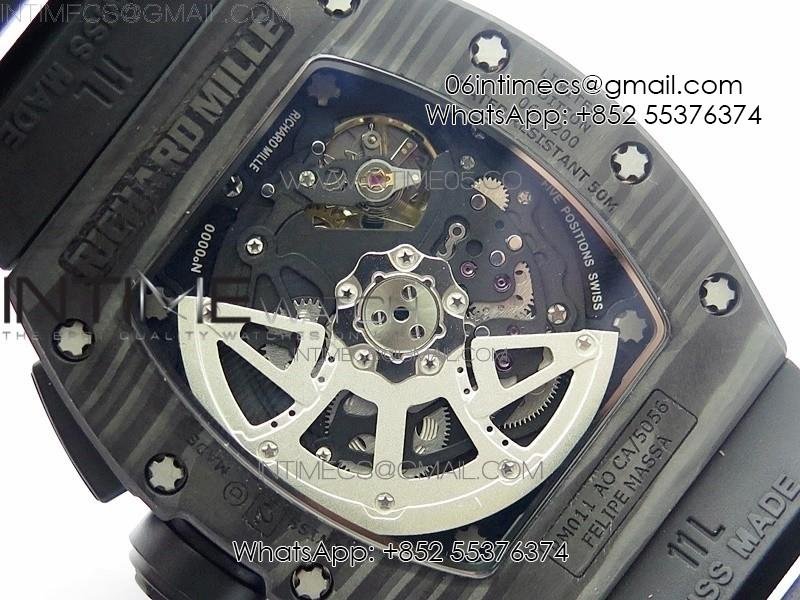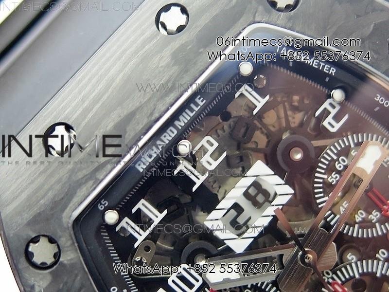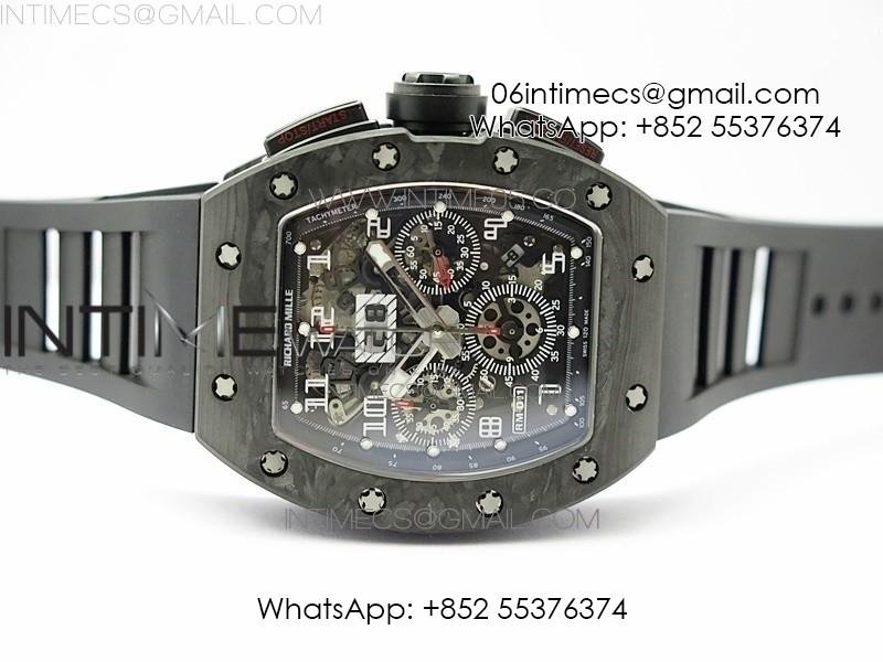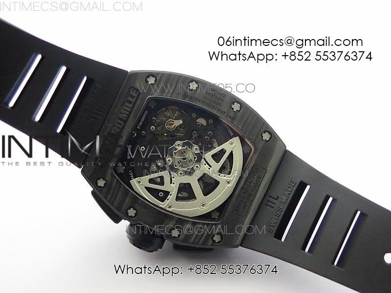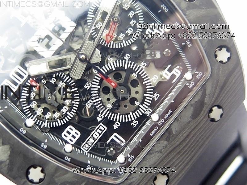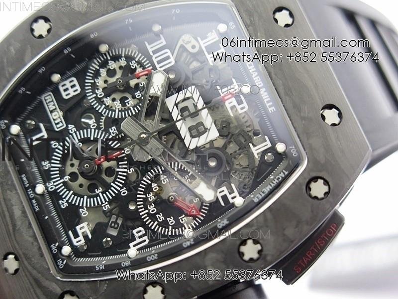 RM011 Carbon Case Carbon Bezel Chronograph KVF 1:1 Best Edition Skeleton Dial on Black Rubber Strap A7750