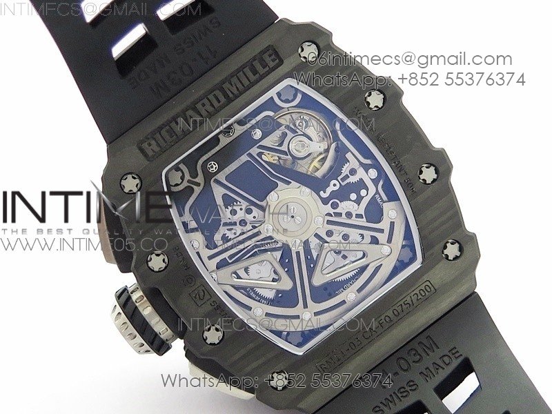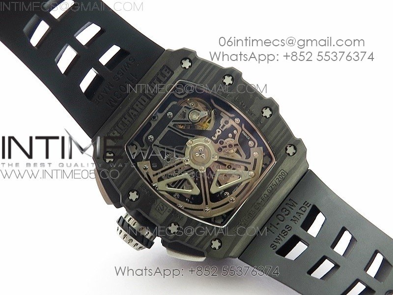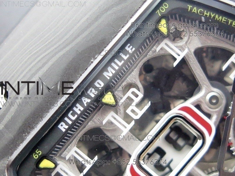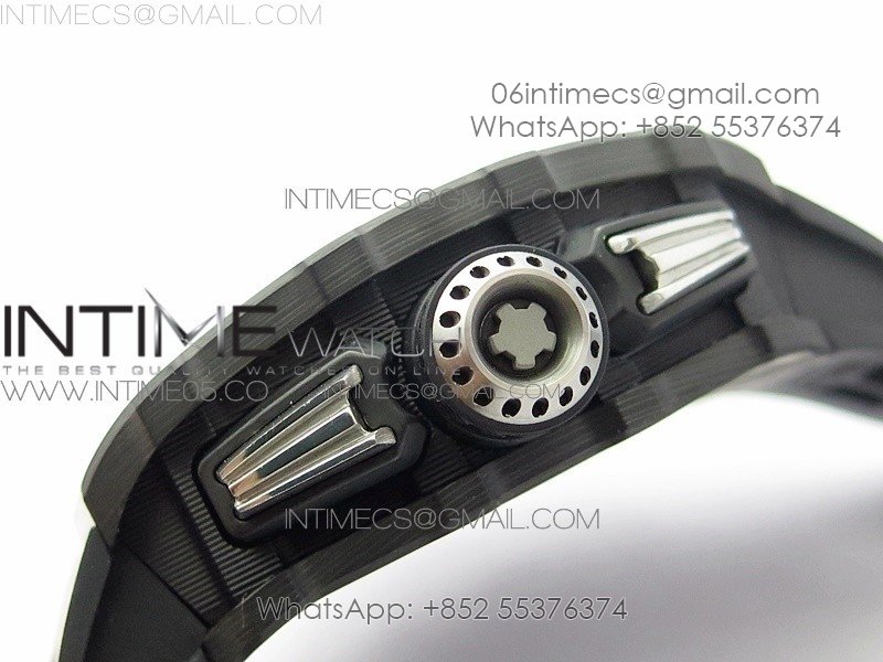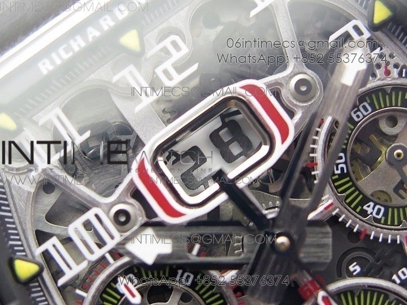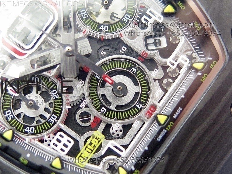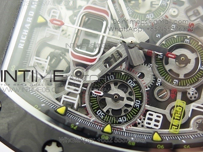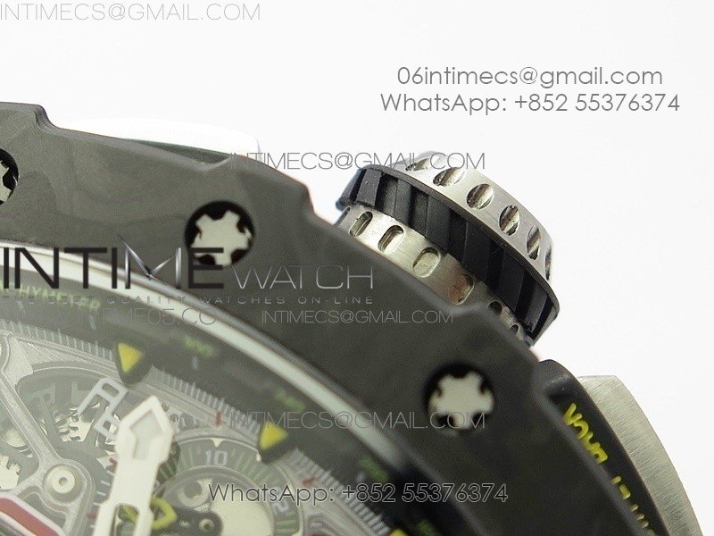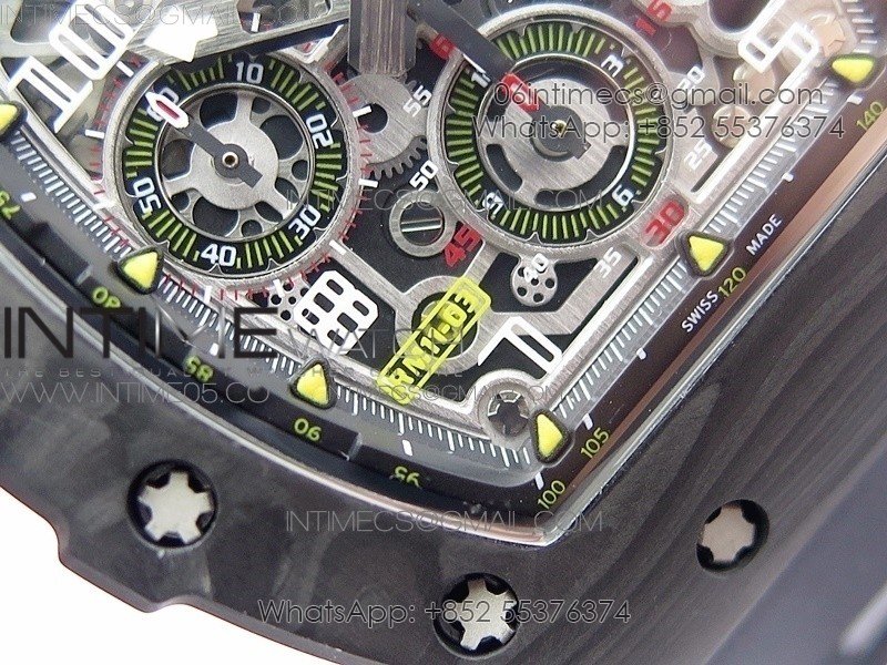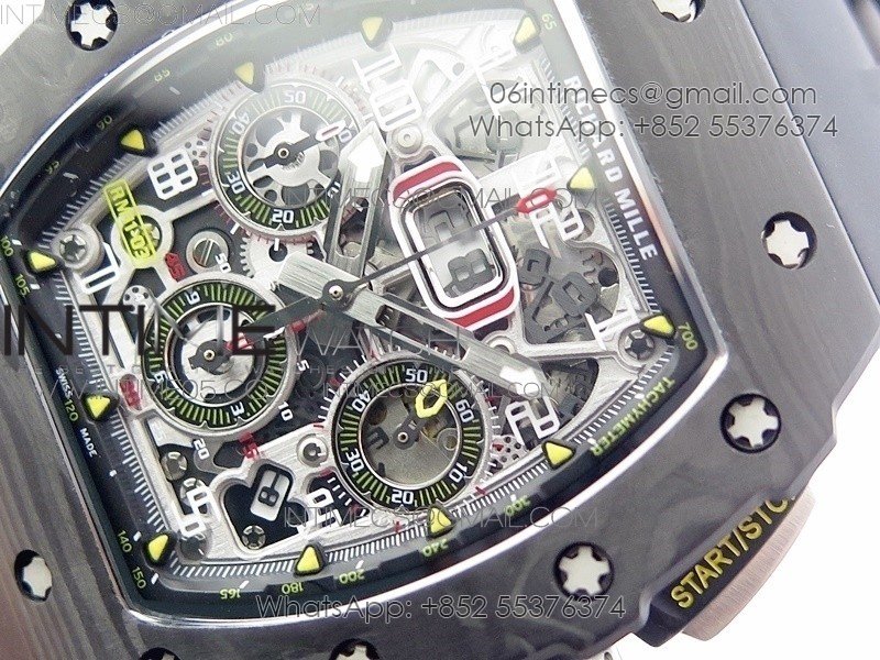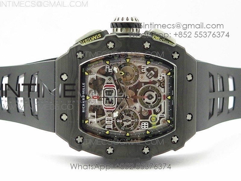 RM011 Carbon Case Chrono KVF 1:1 Best Edition Crystal Skeleton Yellow Dial on Black Rubber Strap A7750 V2