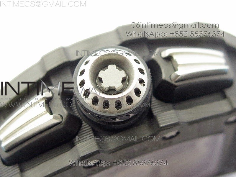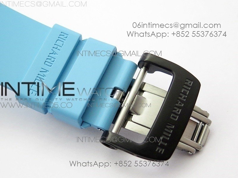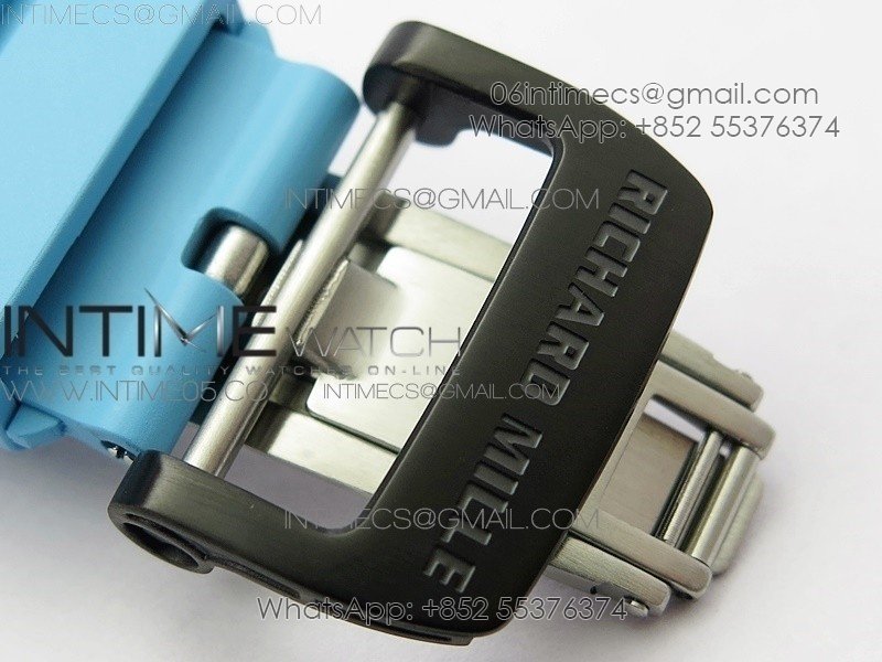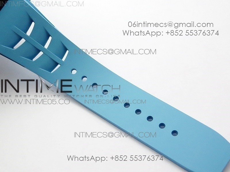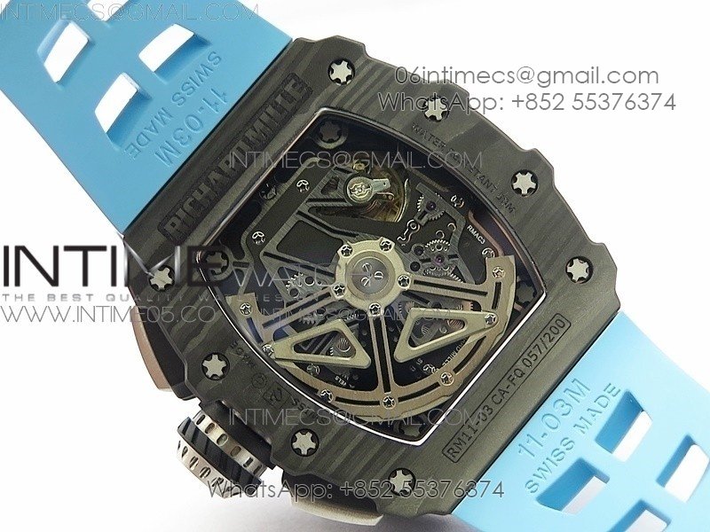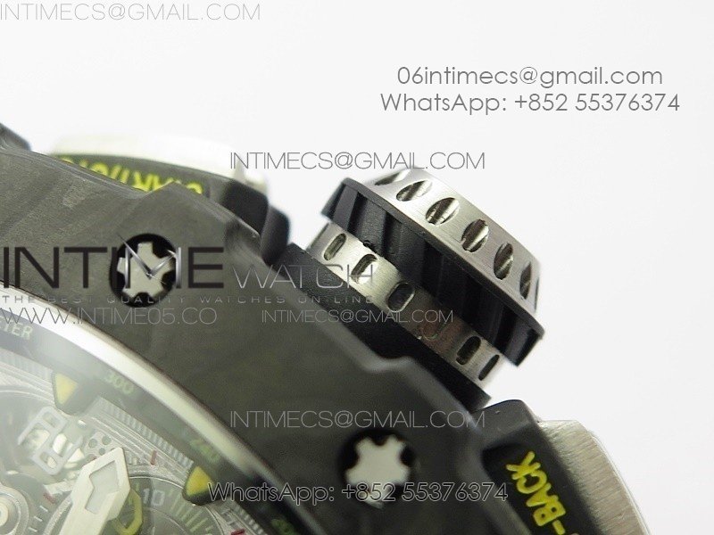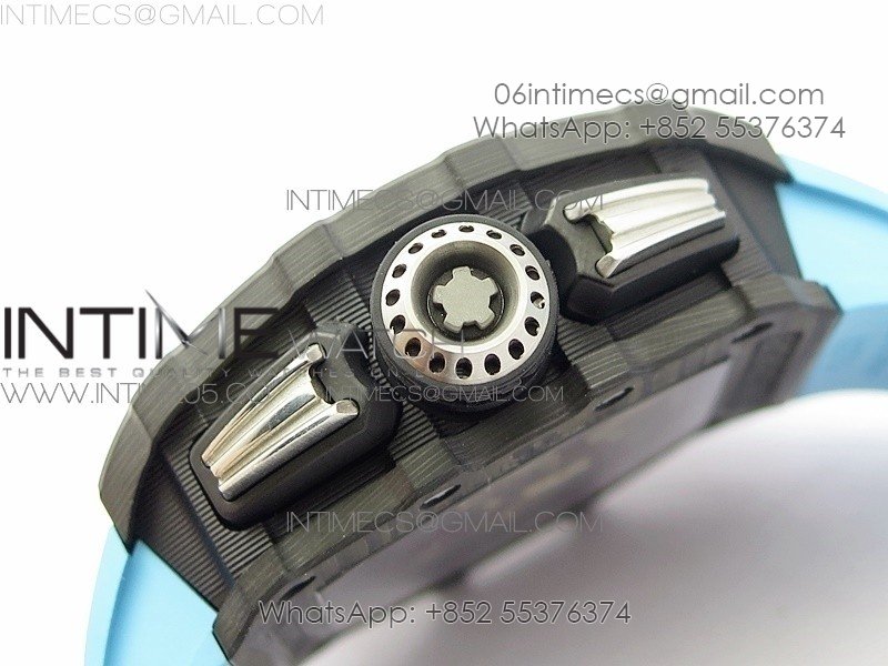 RM011 Carbon Case Chrono KVF 1:1 Best Edition Crystal Skeleton Yellow Dial on Blue Rubber Strap A7750 V2