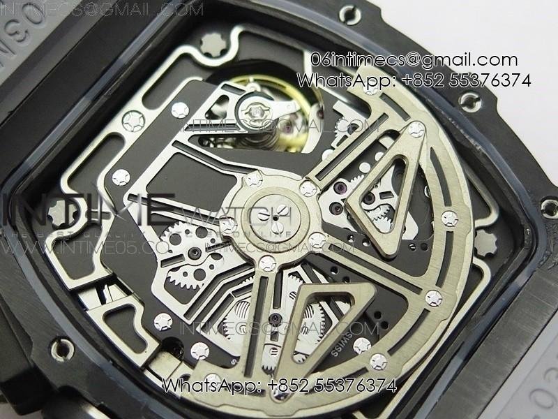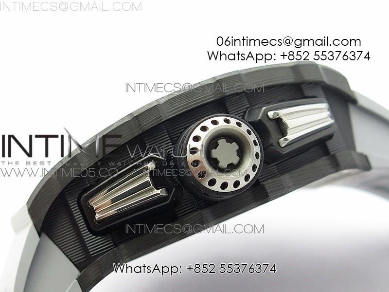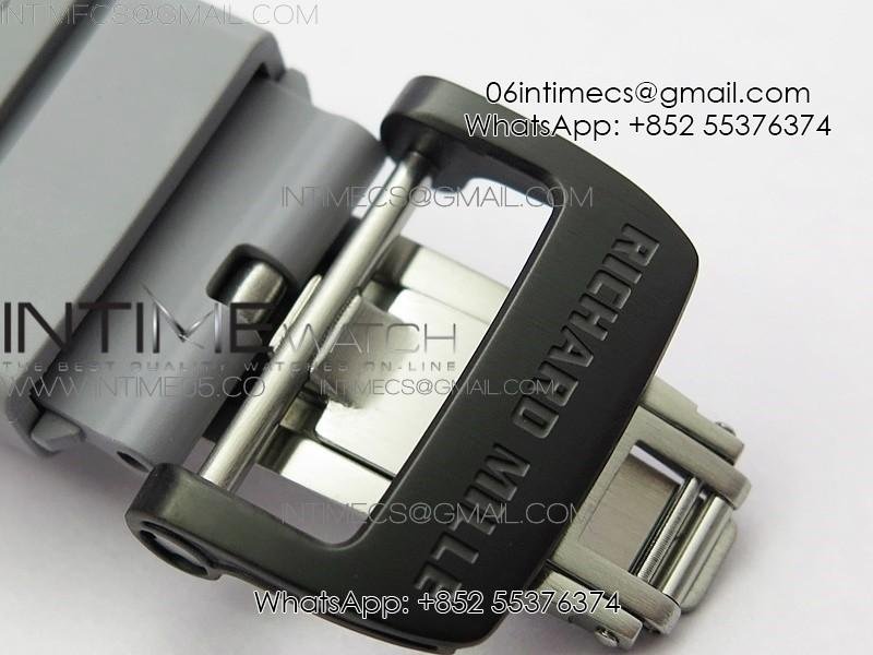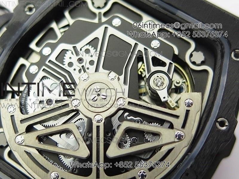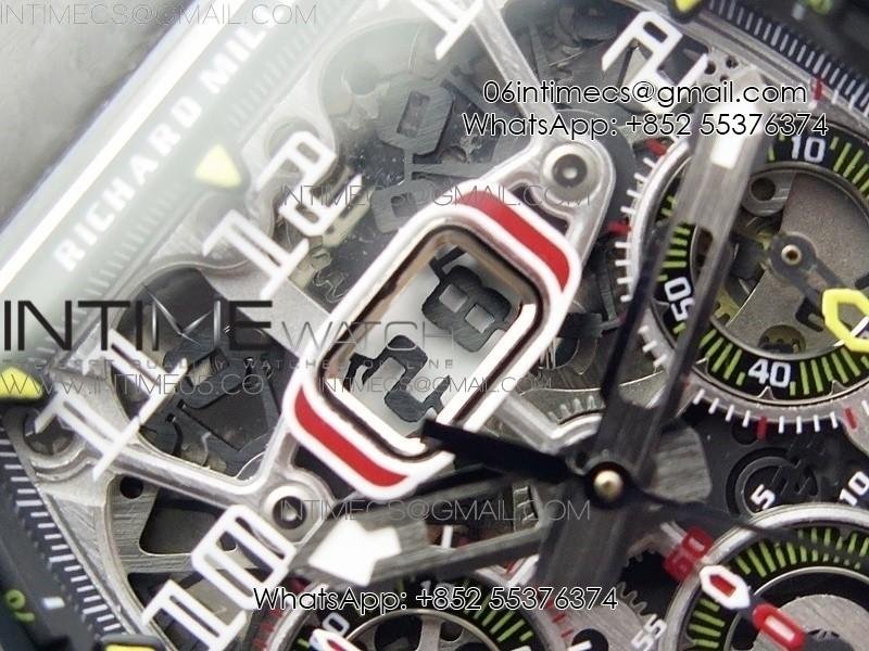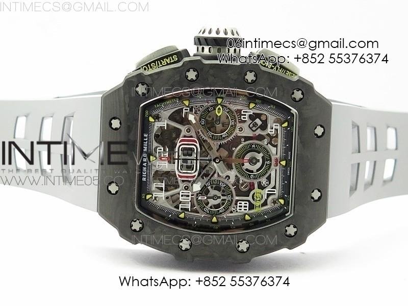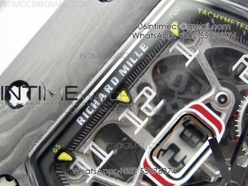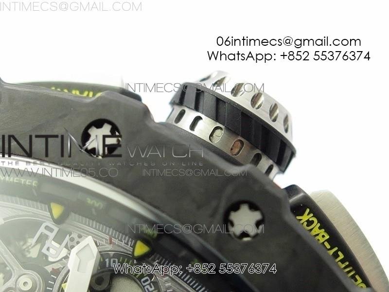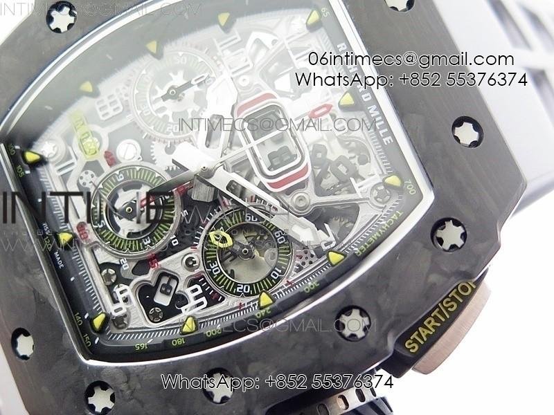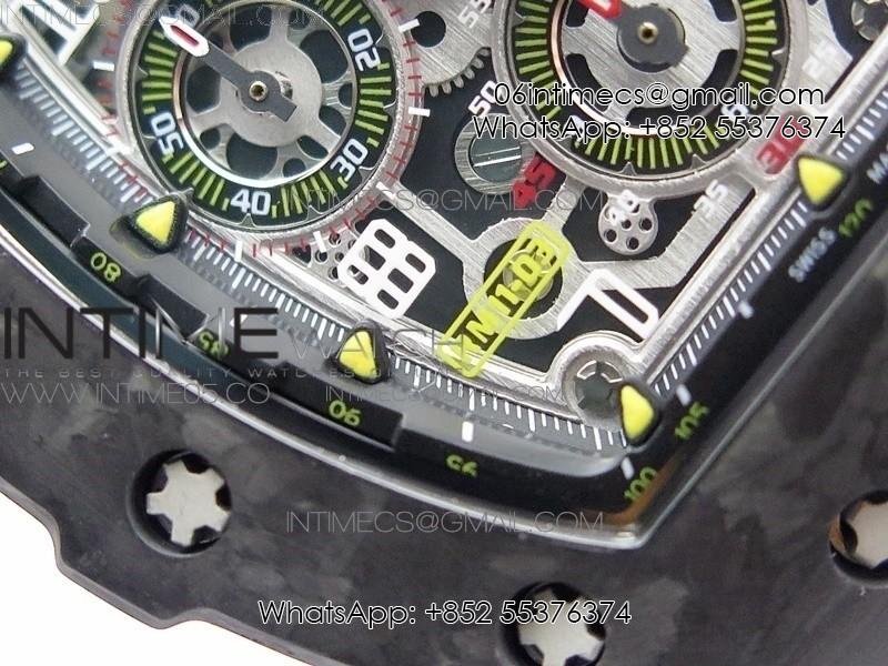 RM011 Carbon Case Chrono KVF 1:1 Best Edition Crystal Skeleton Yellow Dial on Gray Rubber Strap A7750 V2