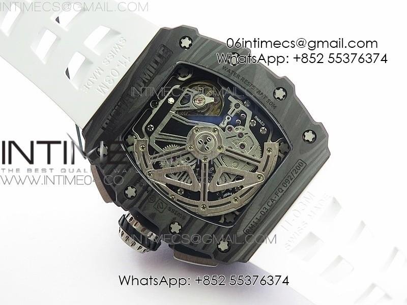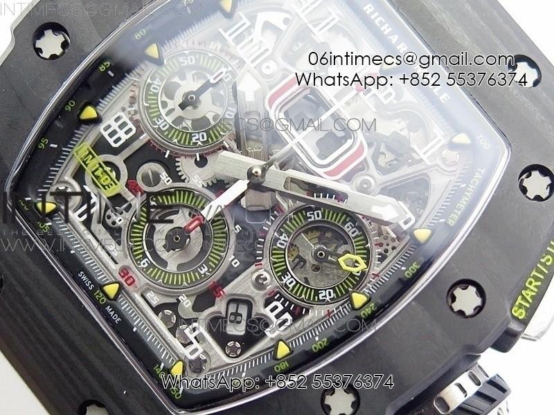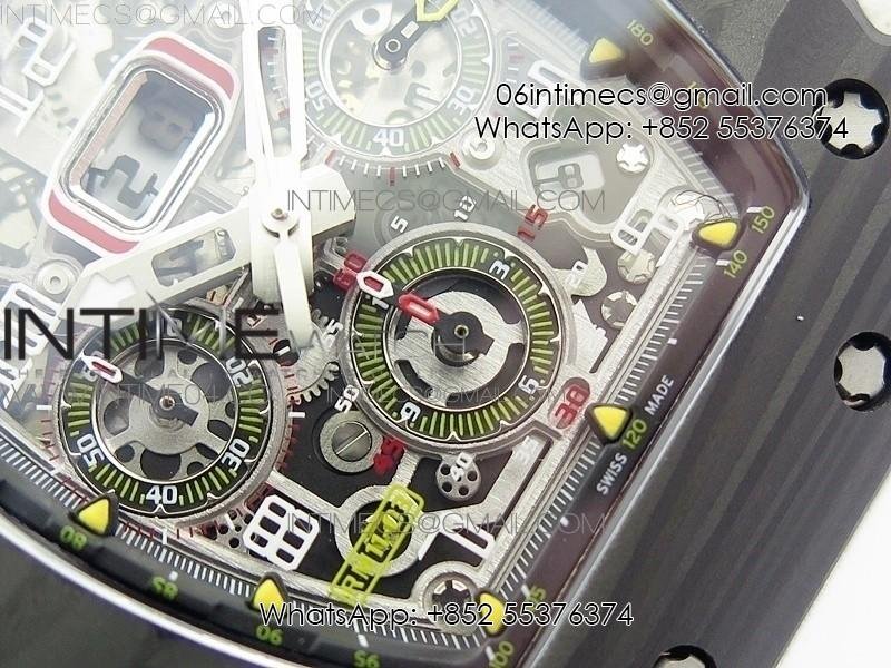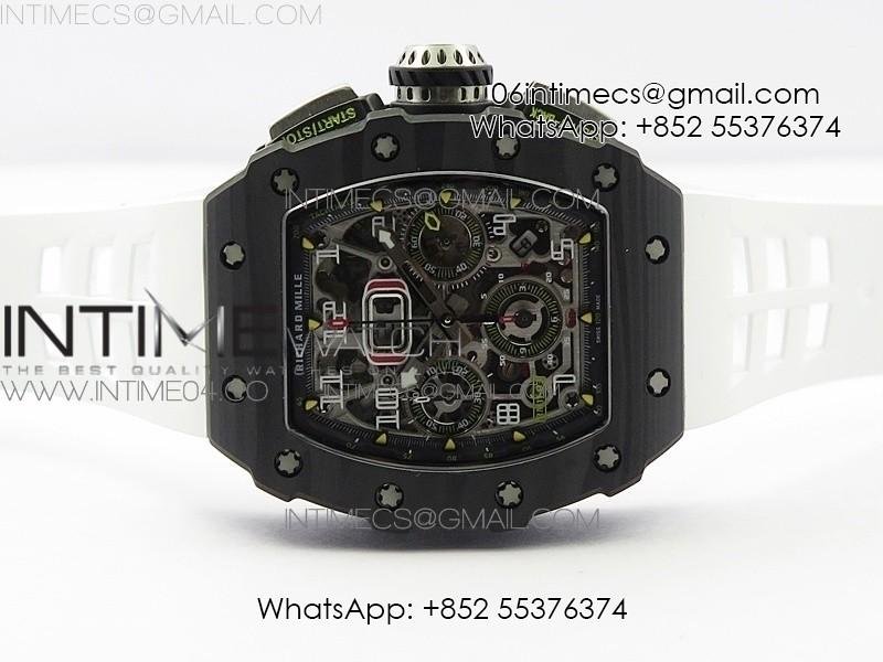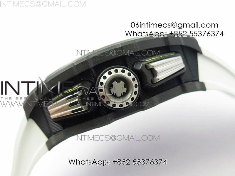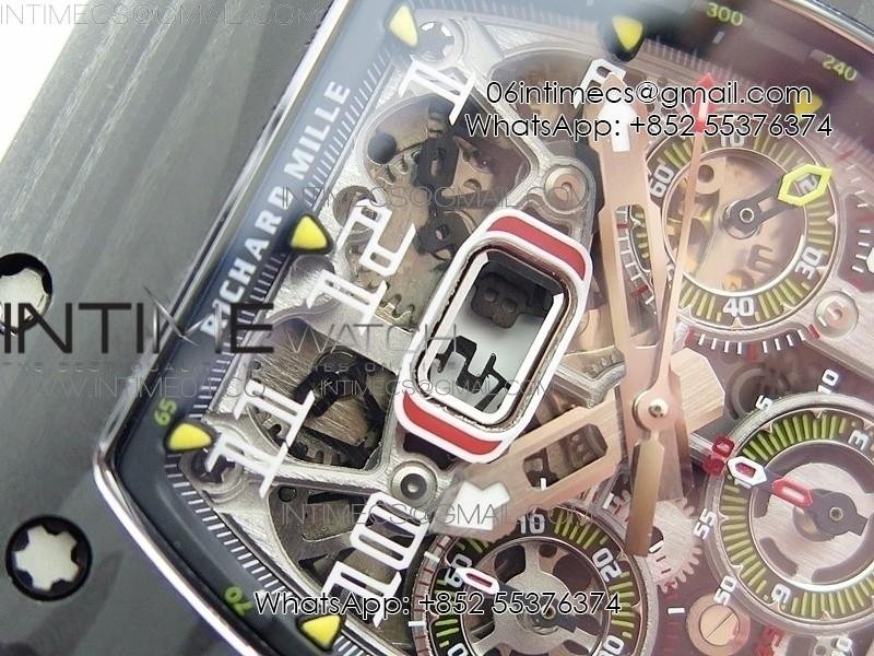 RM011 Carbon Case Chrono KVF 1:1 Best Edition Crystal Skeleton Yellow Dial on White Rubber Strap A7750