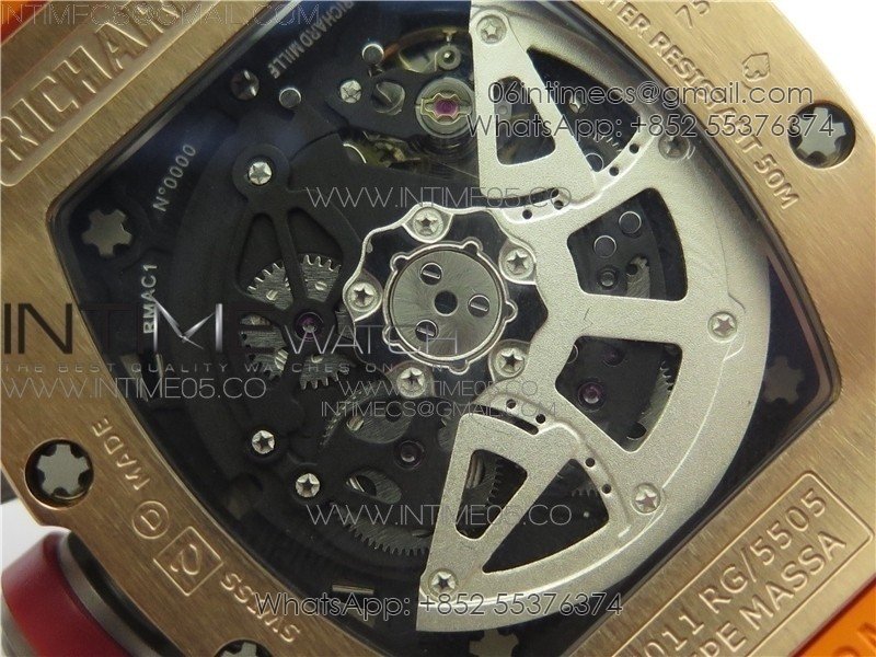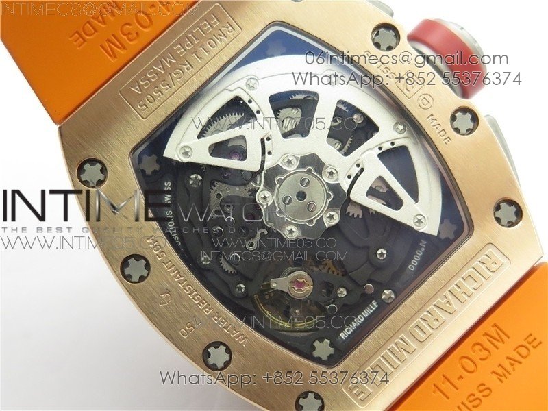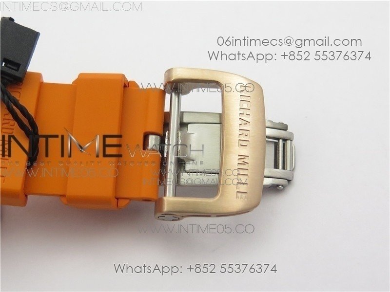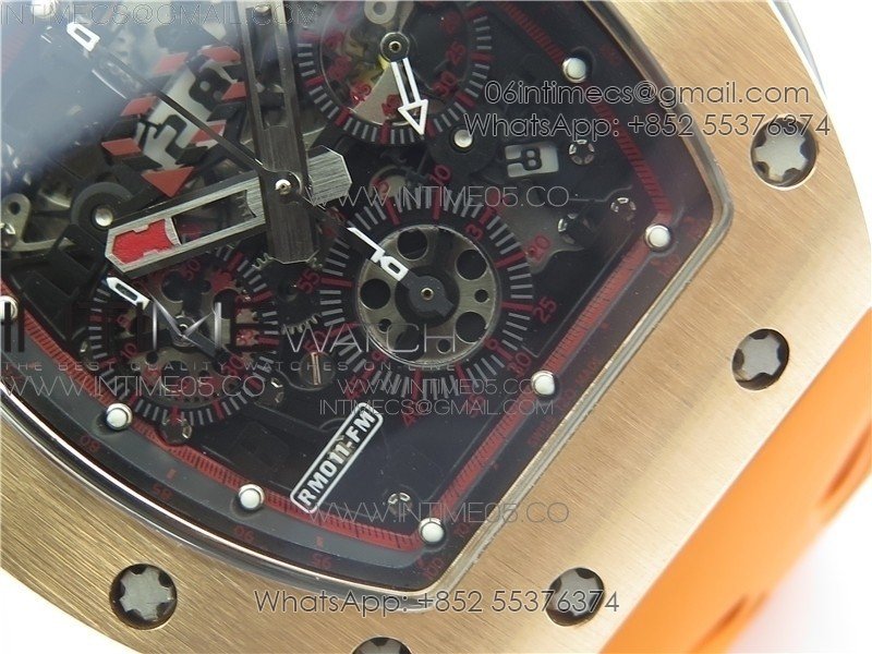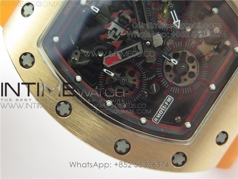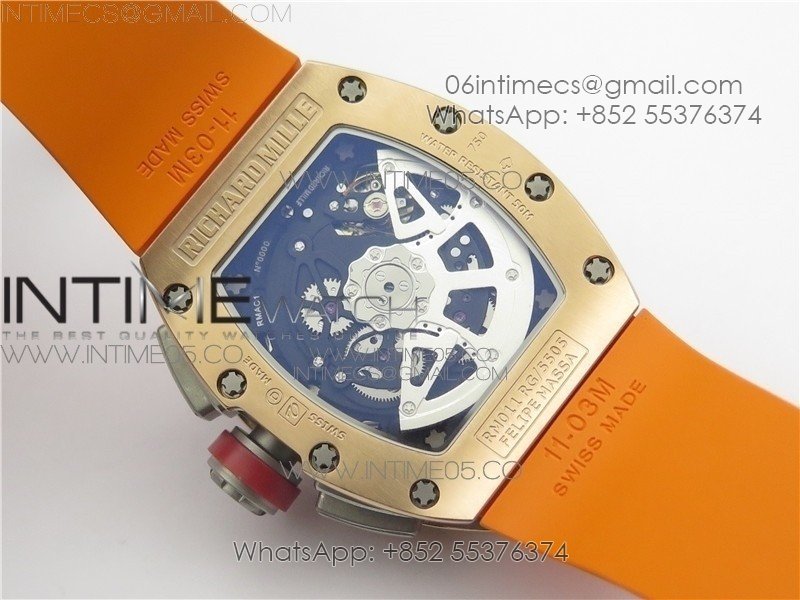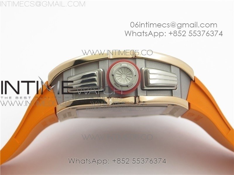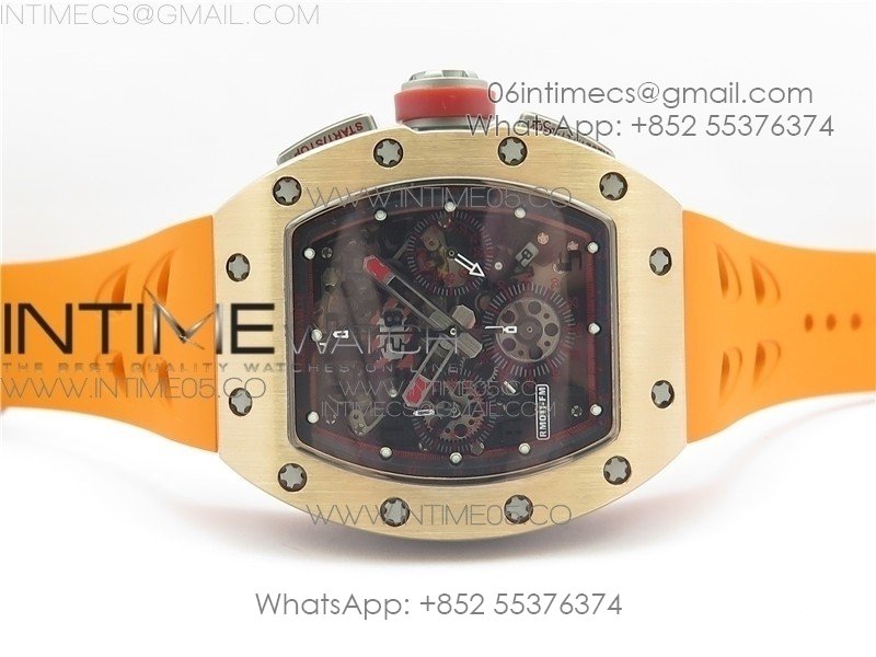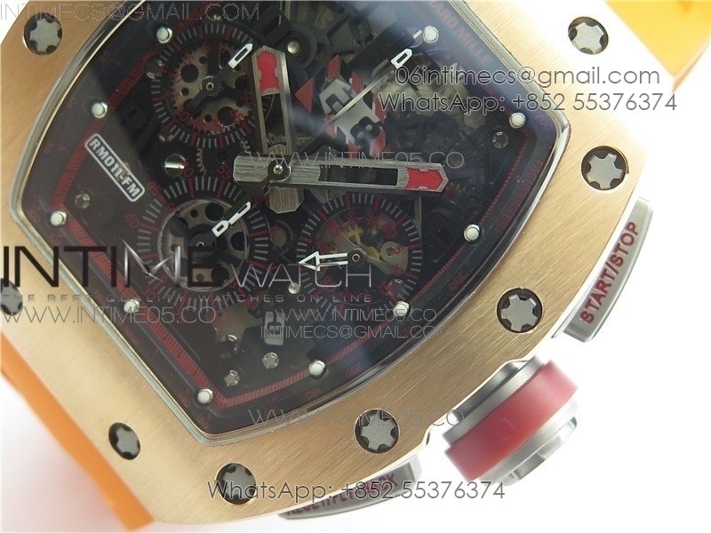 RM011-FM RG CHRONOGRAPH RG CASE KVF 1:1 BEST EDITION CRYSTAL SKELETON DIAL ON ORANGE RUBBER STRAP A7750