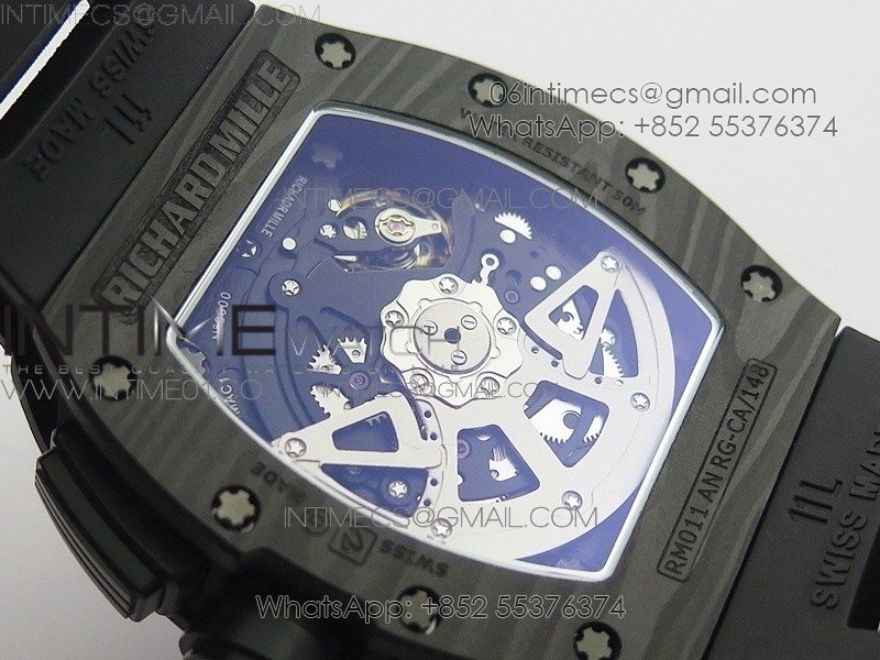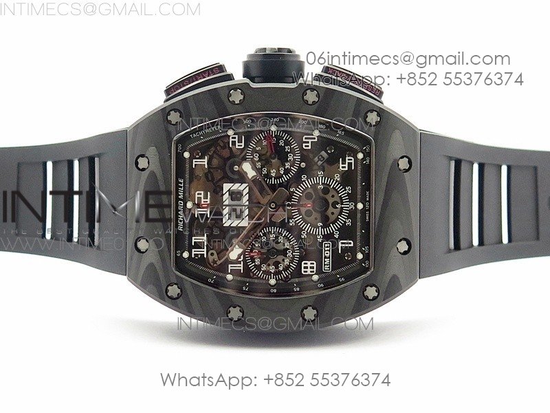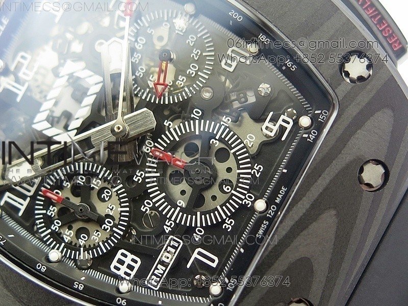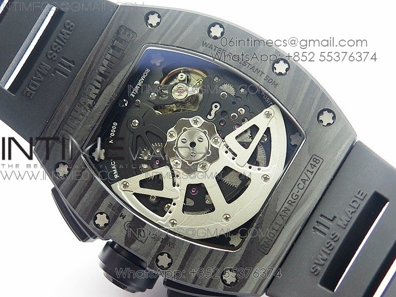 RM011 NTPT Carbon Case Chronograph KVF 1:1 Best Edition Crystal Skeleton Dial White on Black Rubber Strap A7750