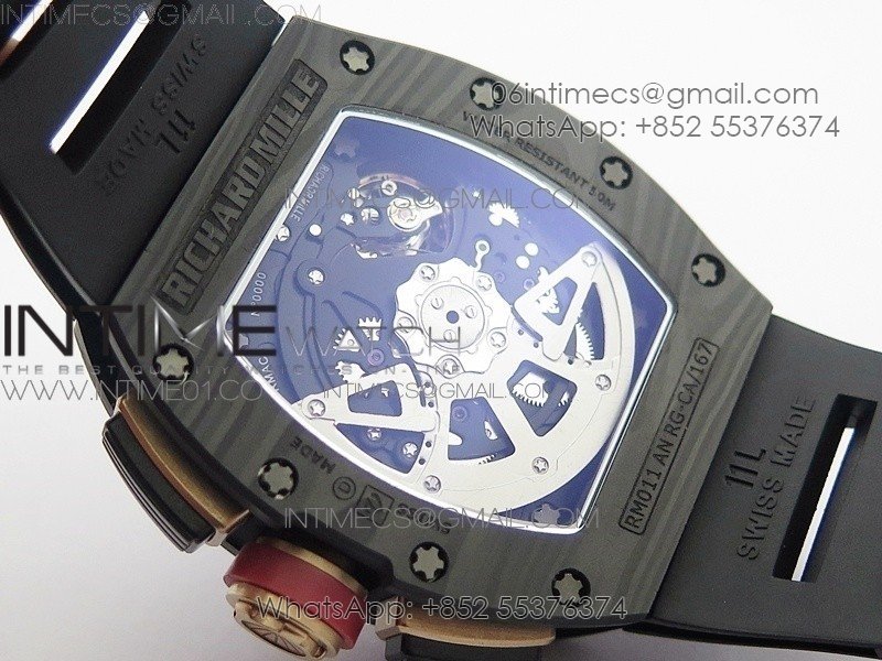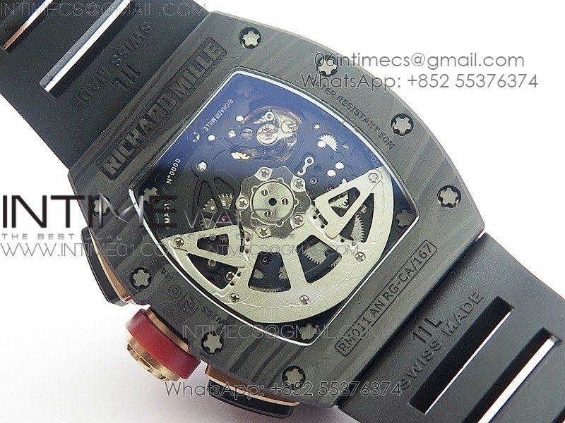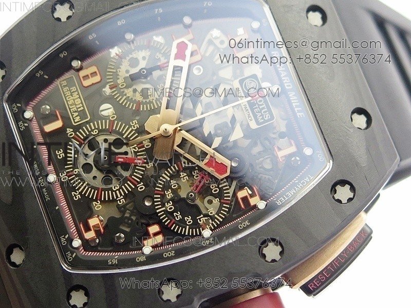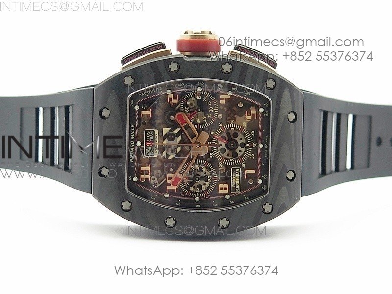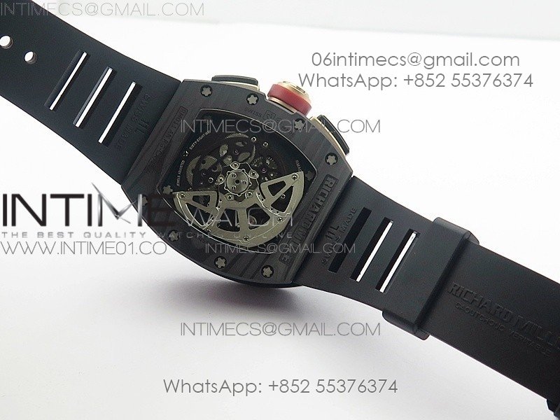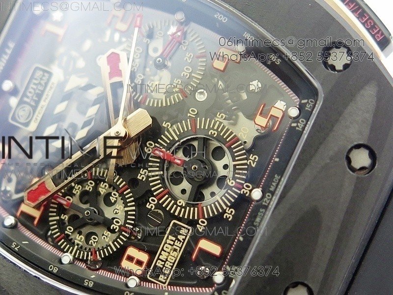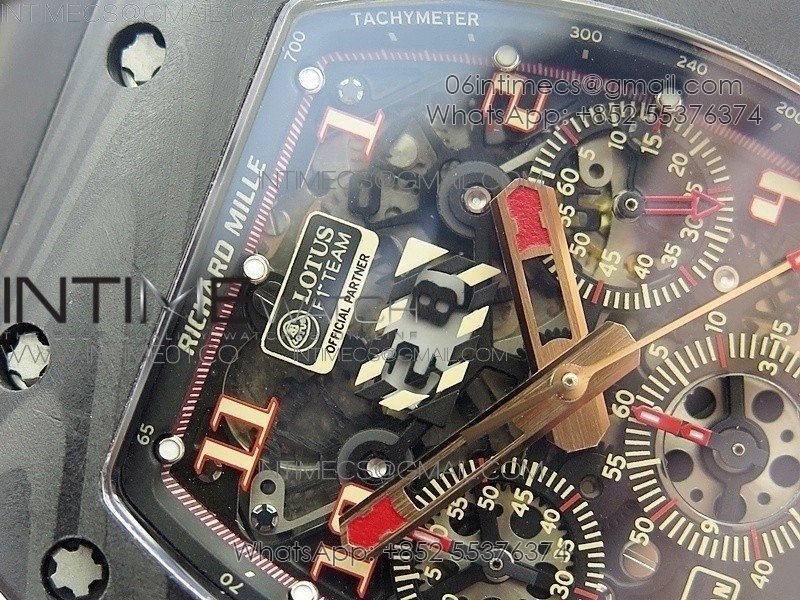 RM011 NTPT Lotus F1 Team Carbon Case Chronograph KVF 1:1 Best Edition Crystal Skeleton Dial Blue on Black Rubber Strap A7750