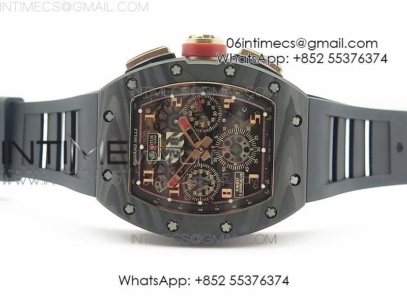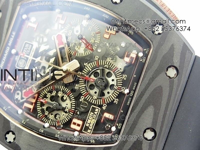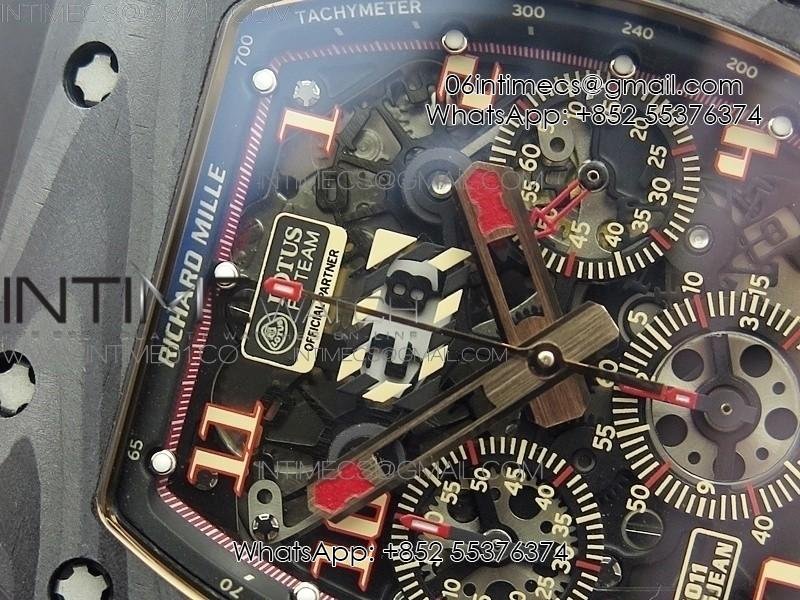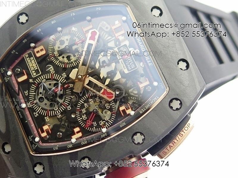 RM011 NTPT Lotus F1 Team RG Chronograph KVF 1:1 Best Edition Crystal Skeleton Dial Red on Black Rubber Strap A7750