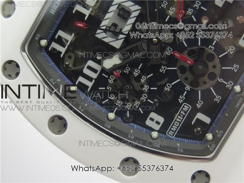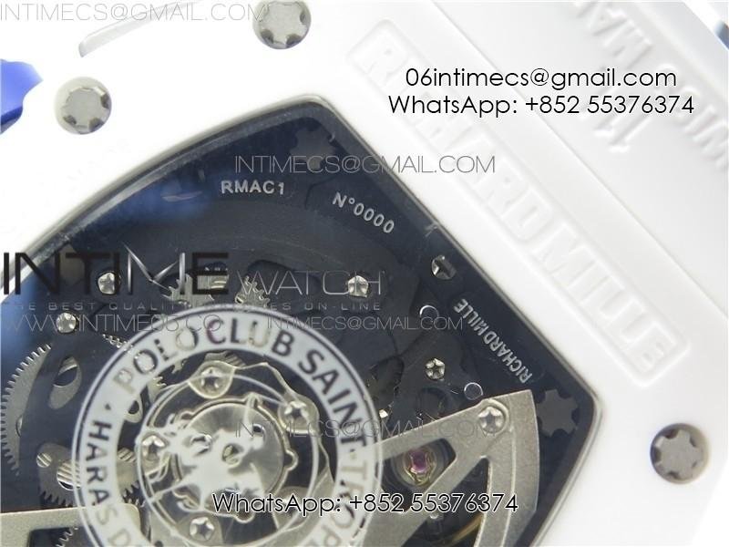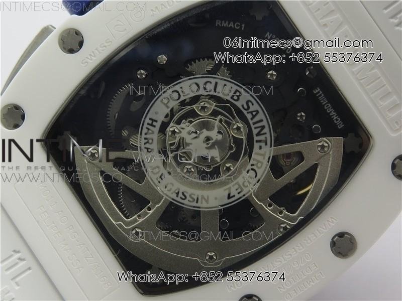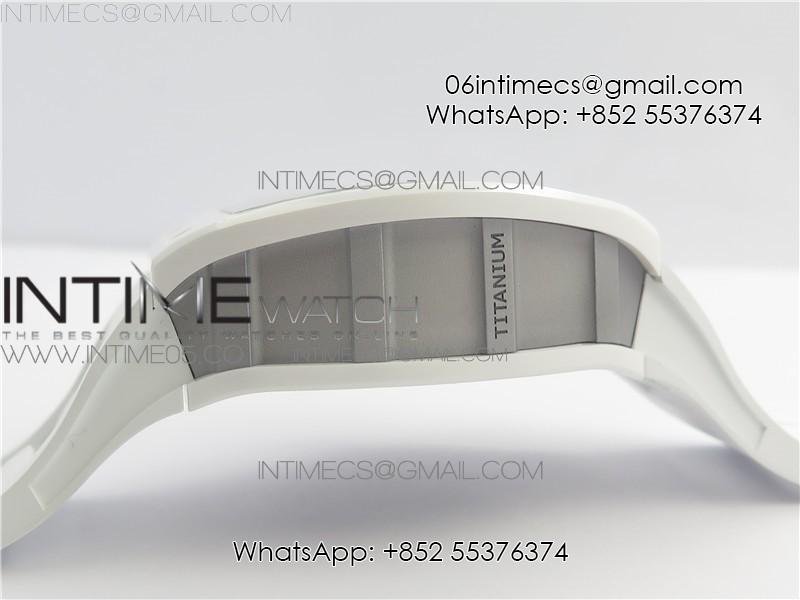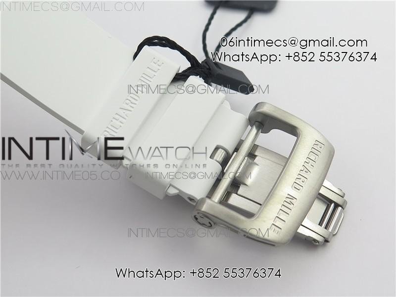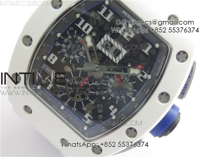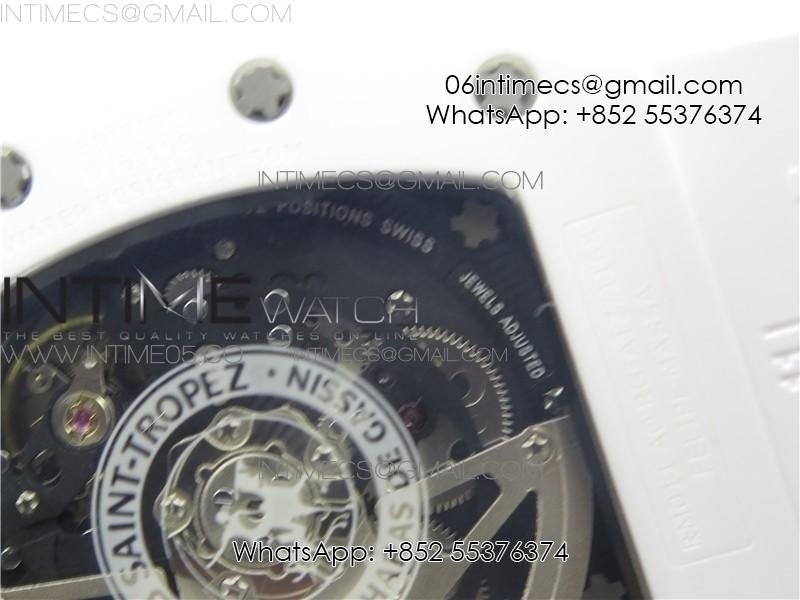 RM011 Real White Ceramic Chronograph KVF 1:1 Best Edition Crystal Skeleton Dial Blue on White Rubber Strap A7750