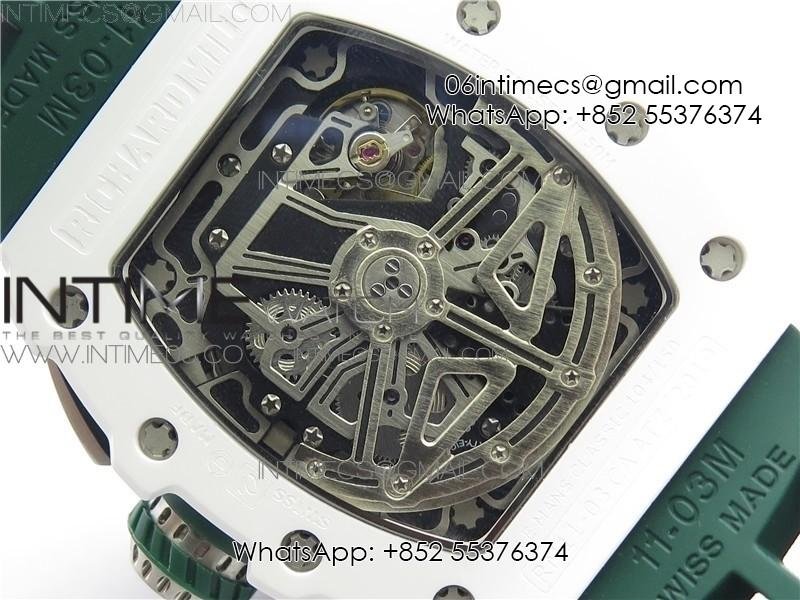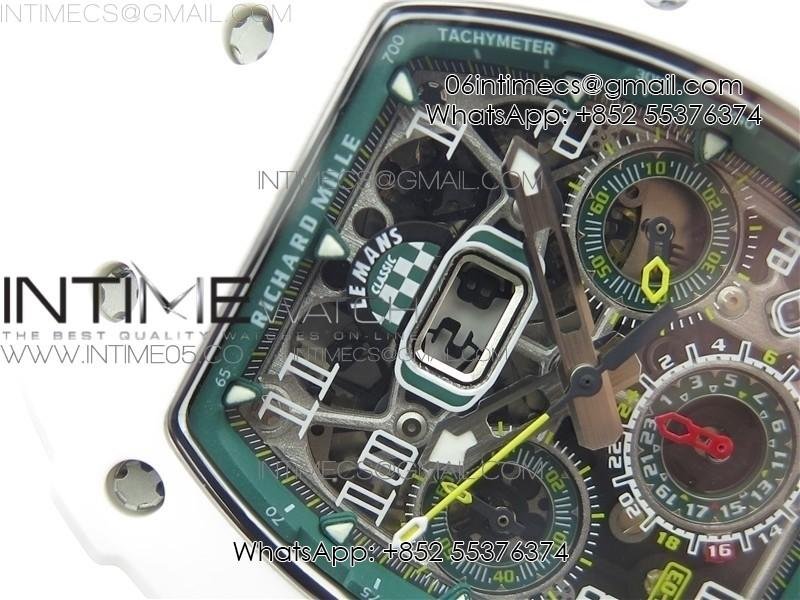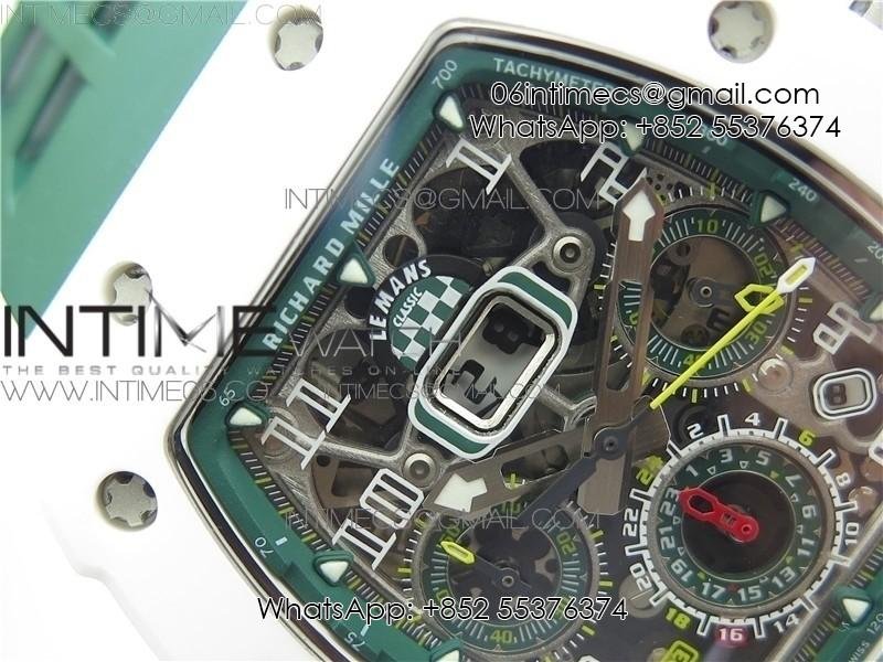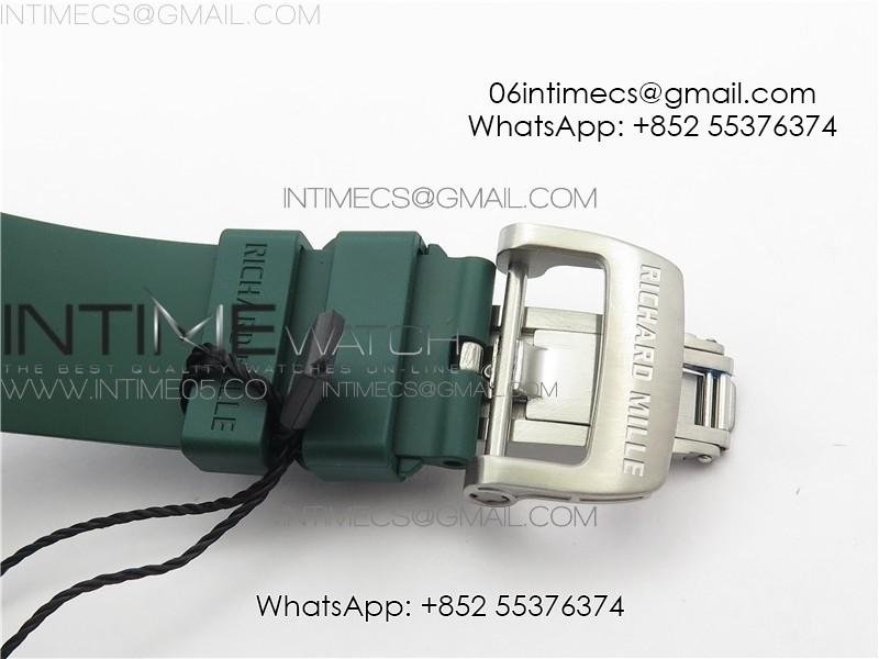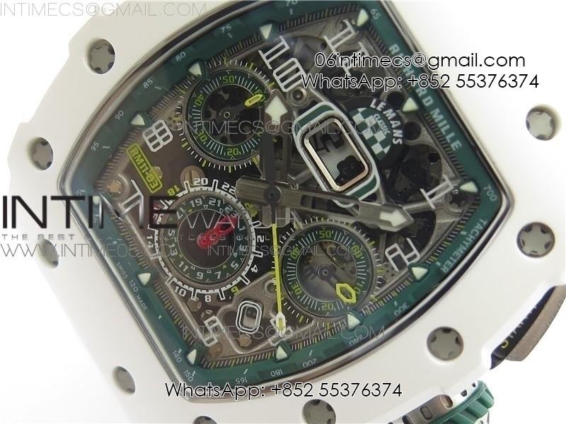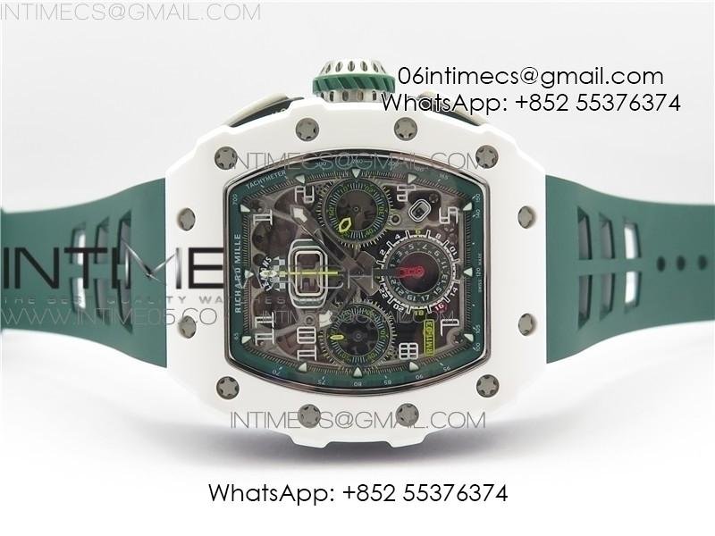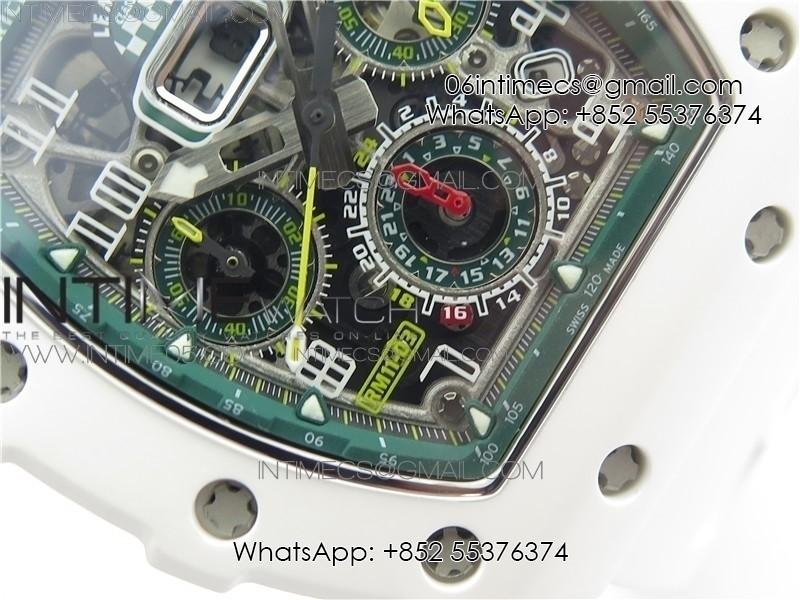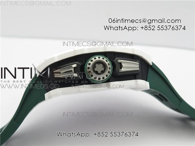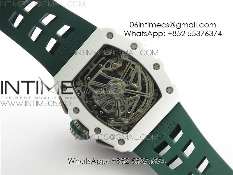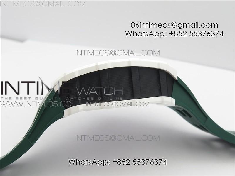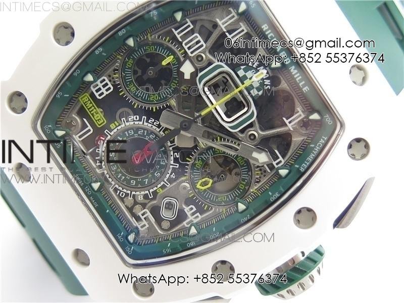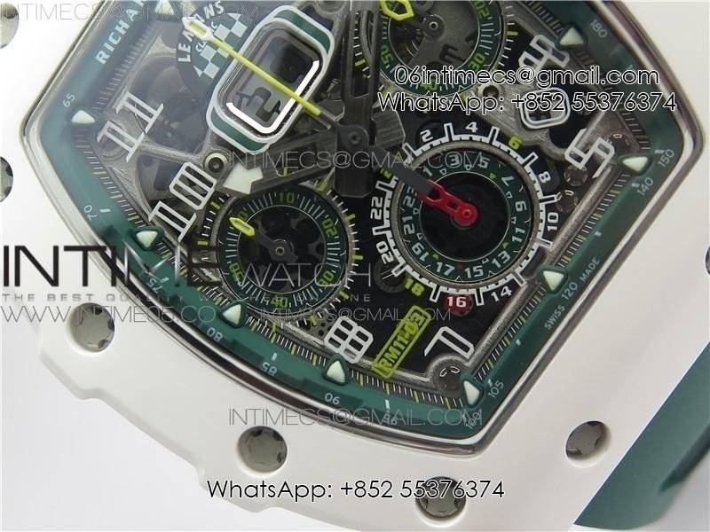 RM011 Real White Ceramic Chronograph KVF 1:1 Best Edition Crystal Skeleton Dial Green on Green Rubber Strap A7750