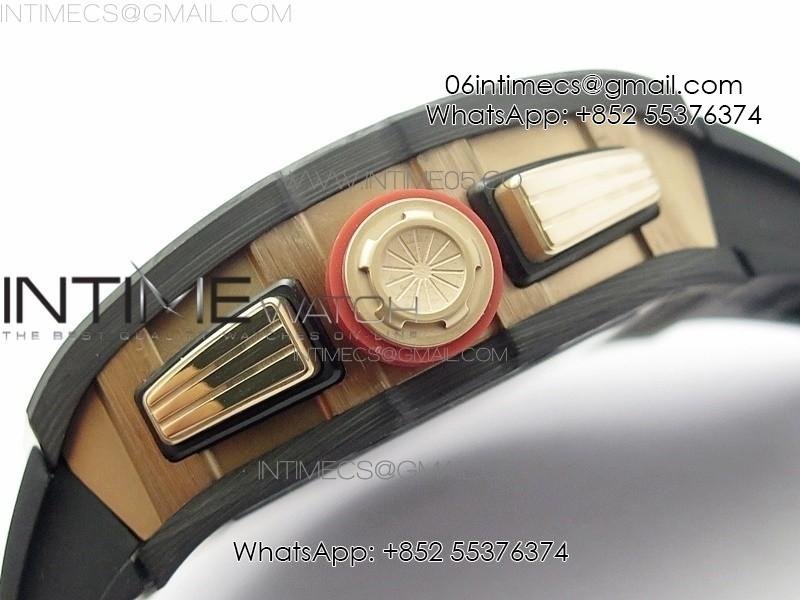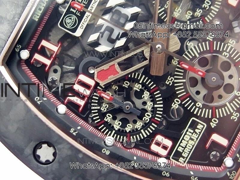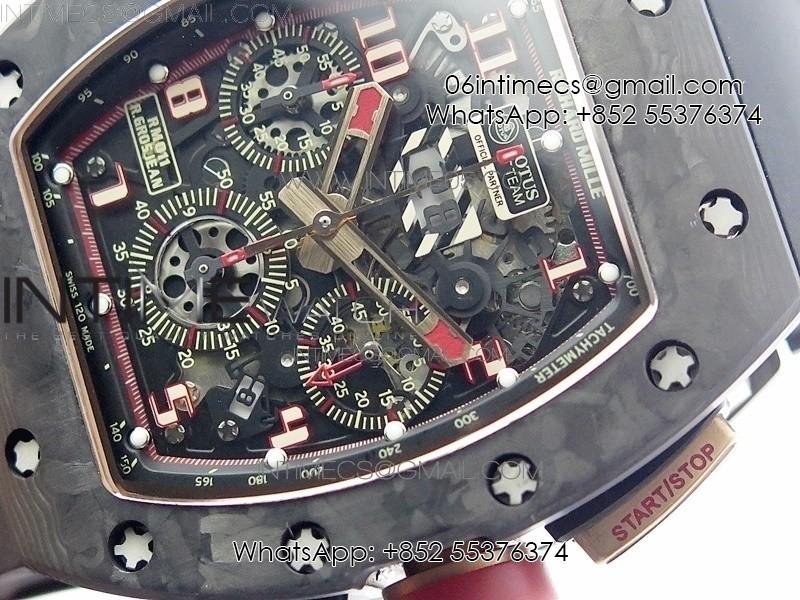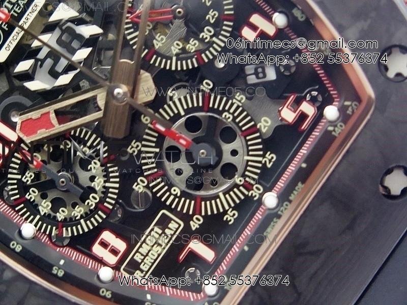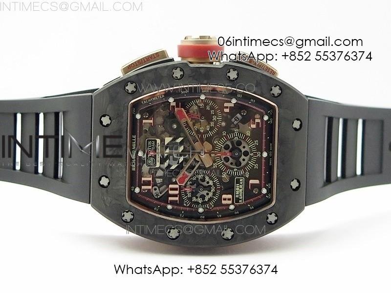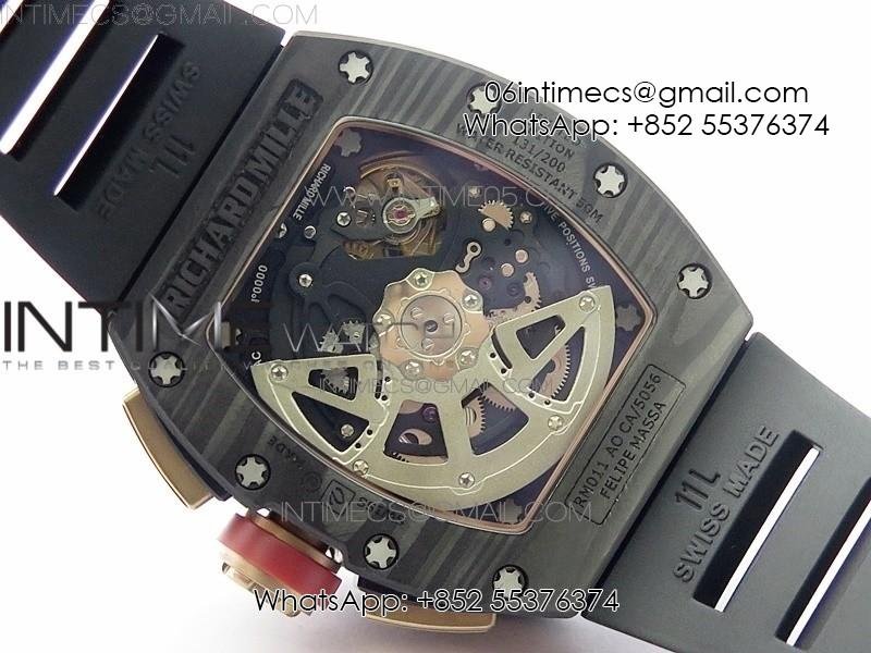 RM011 RG Case Carbon Bezel Chronograph KVF 1:1 Best Edition Skeleton Dial Red/RG on Black Rubber Strap A7750