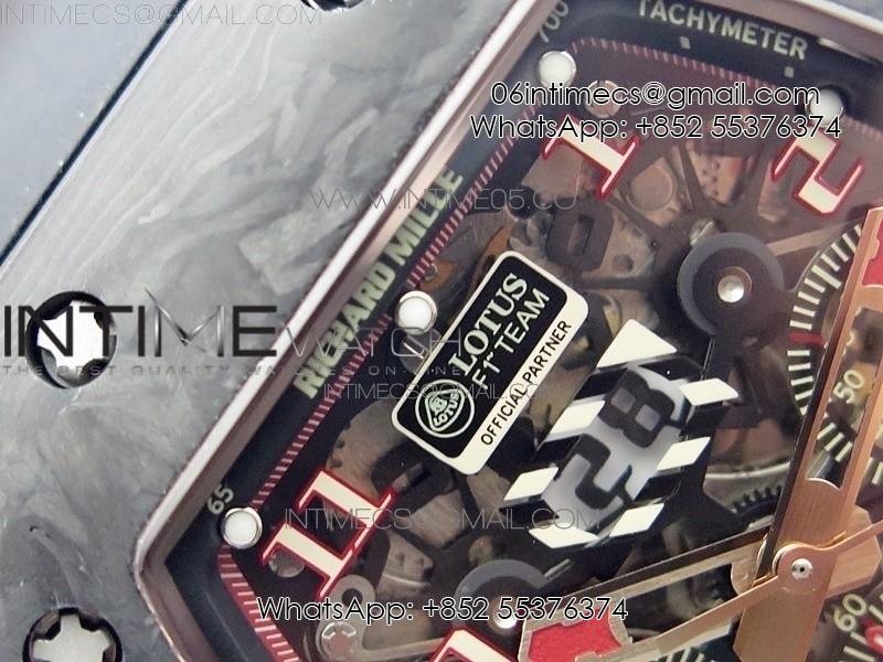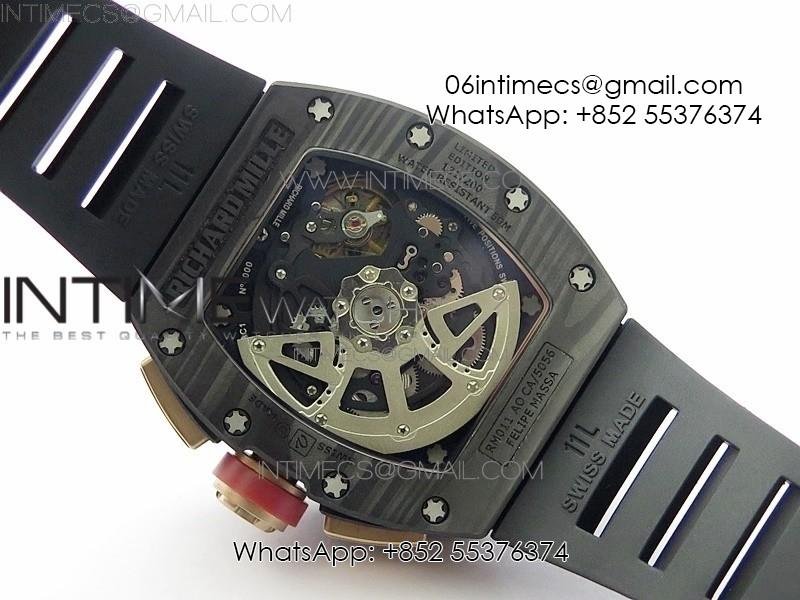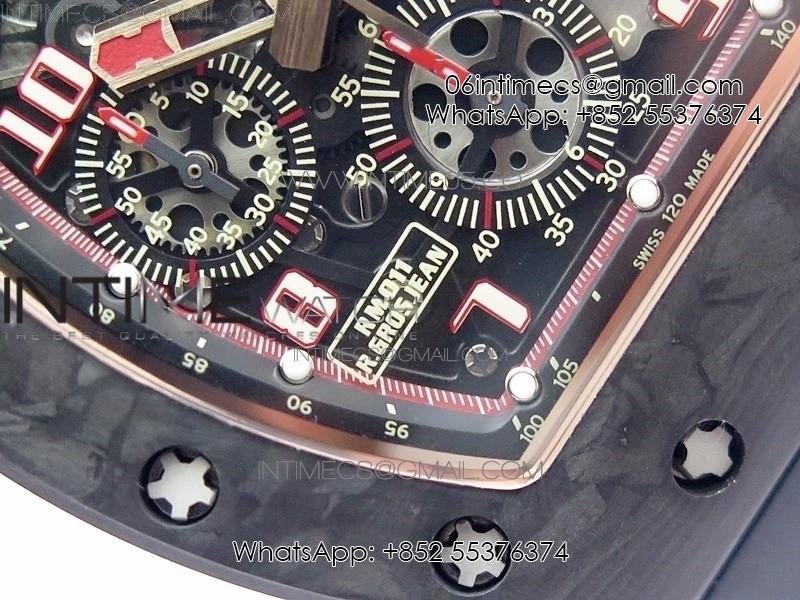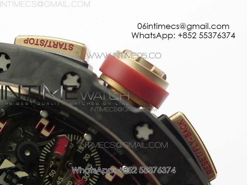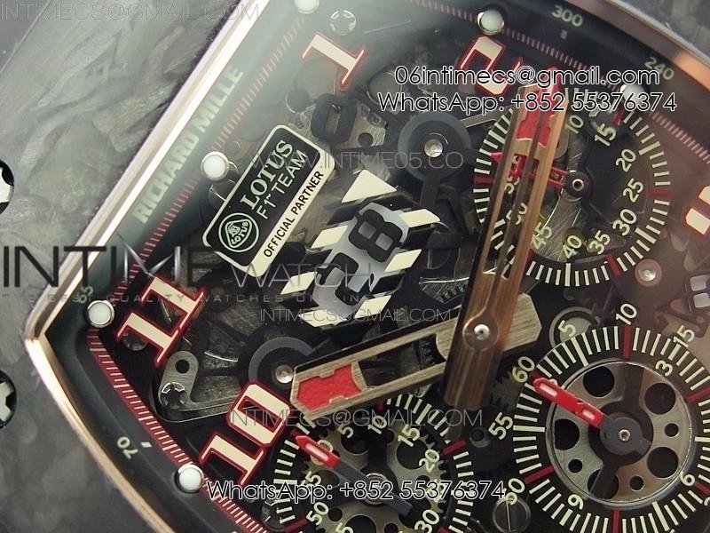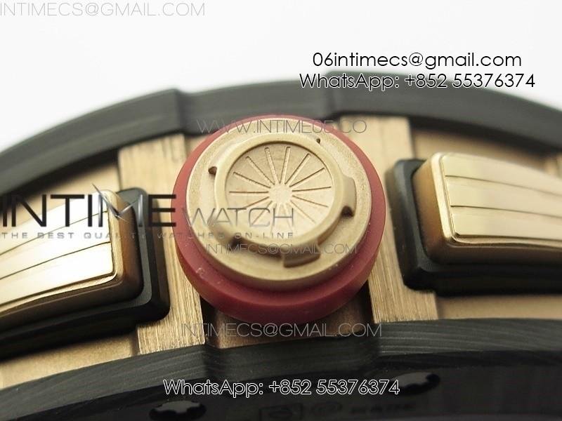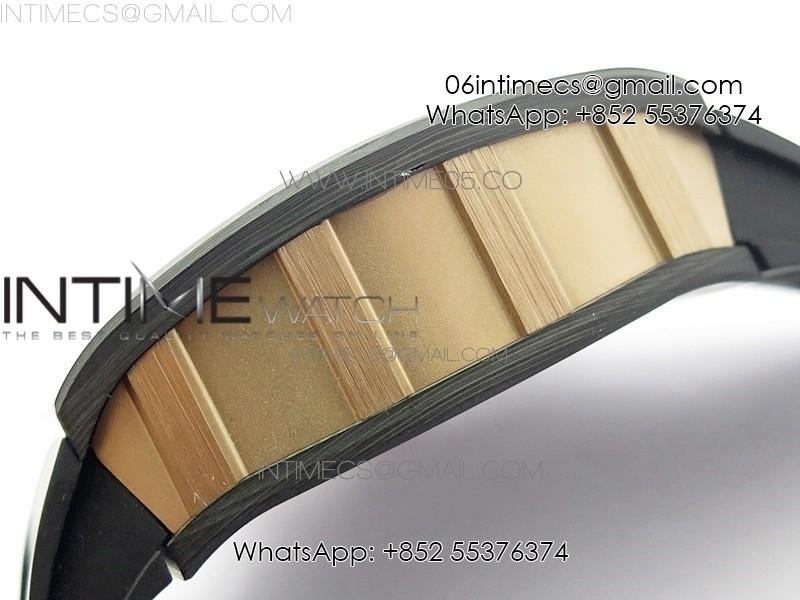 RM011 RG Case Carbon Bezel Chronograph KVF 1:1 Best Edition Skeleton Dial Red/RG on Black Rubber Strap A7750