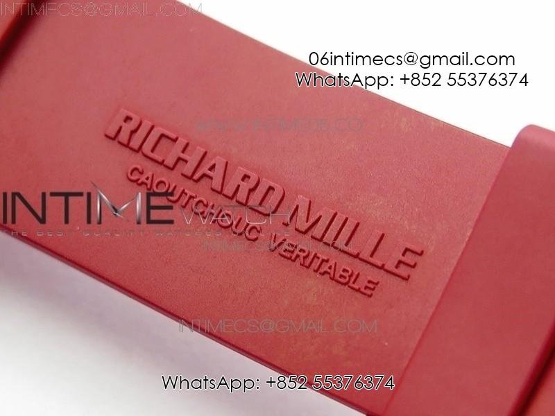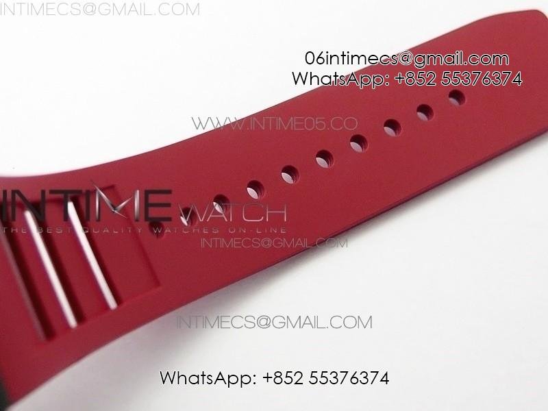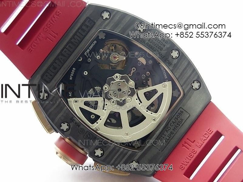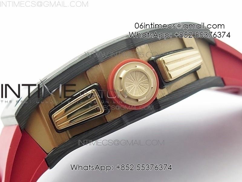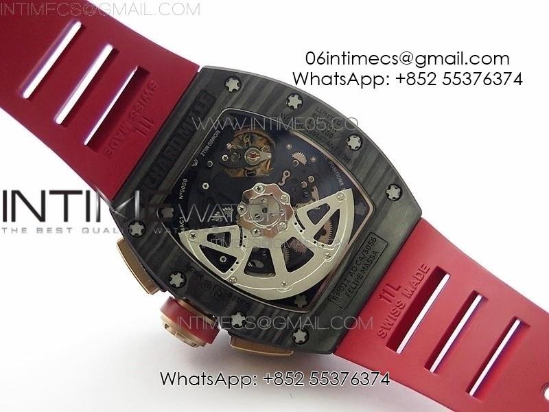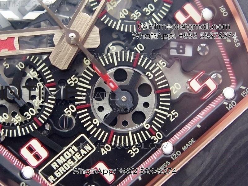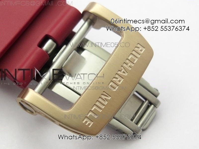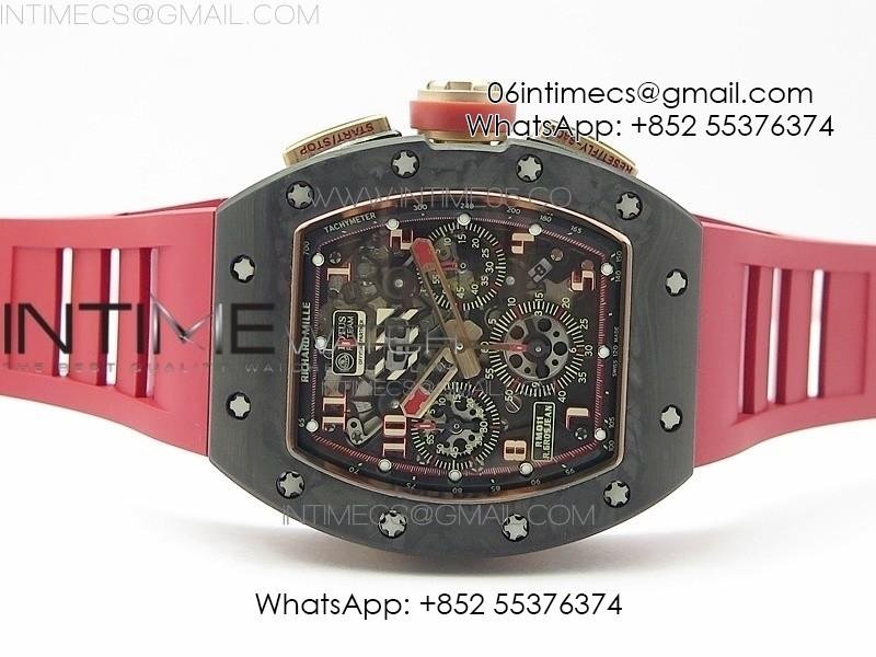 RM011 RG Case Carbon Bezel Chronograph KVF 1:1 Best Edition Skeleton Dial Red/RG on Red Rubber Strap A7750