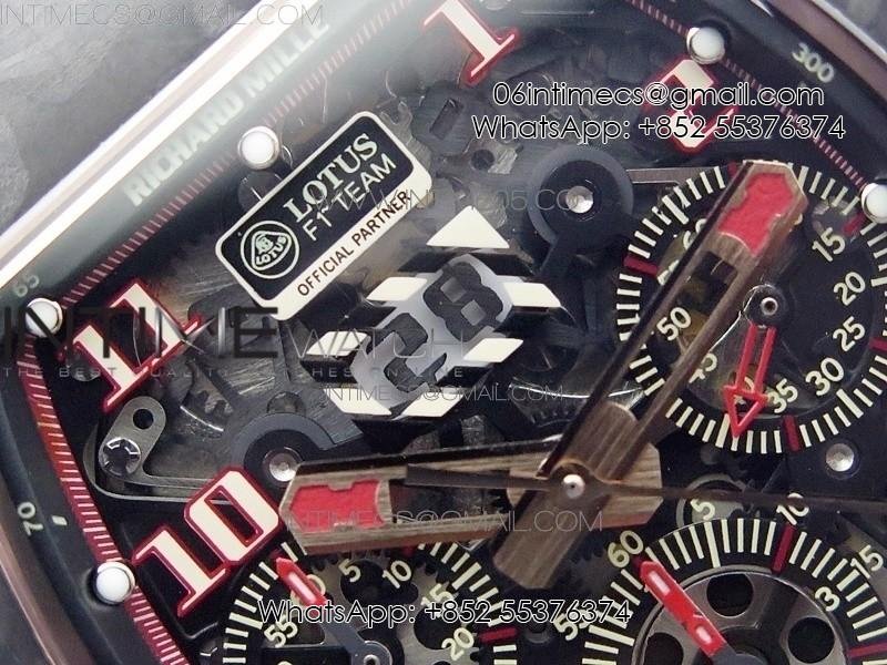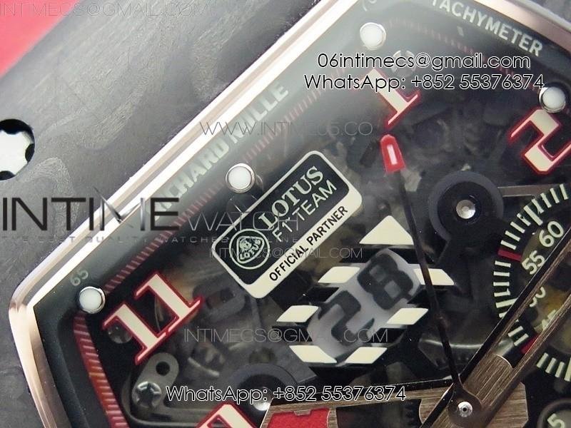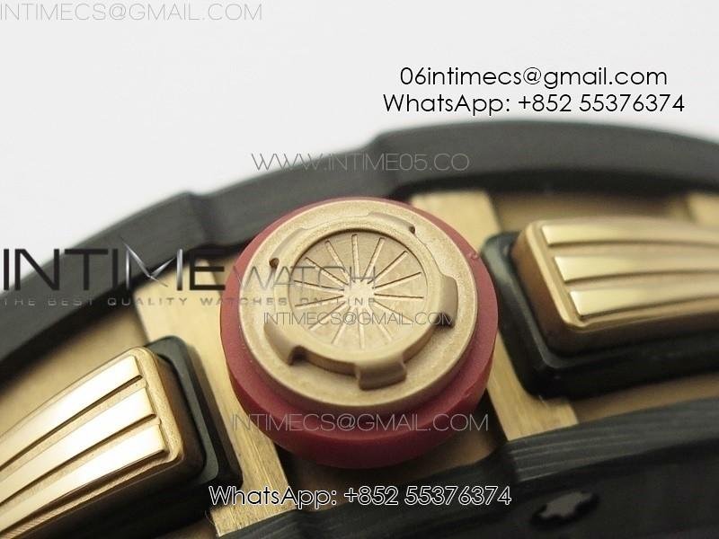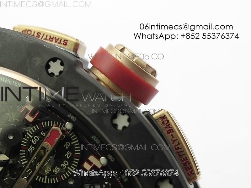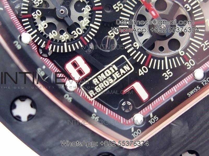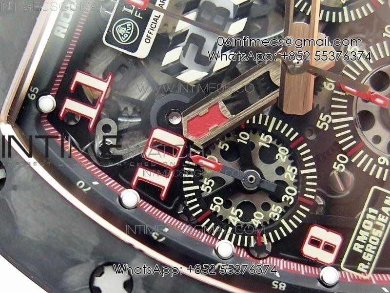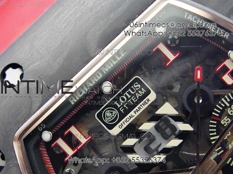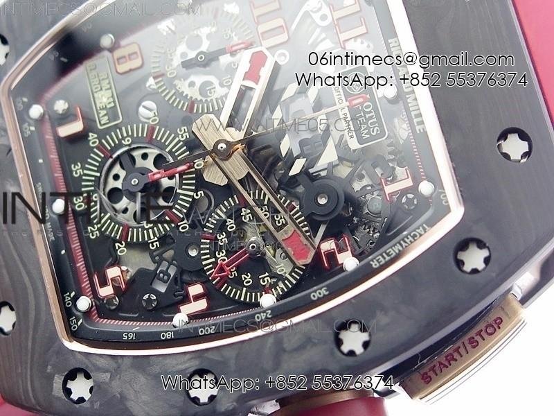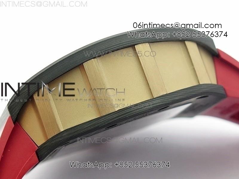 RM011 RG Case Carbon Bezel Chronograph KVF 1:1 Best Edition Skeleton Dial Red/RG on Red Rubber Strap A7750