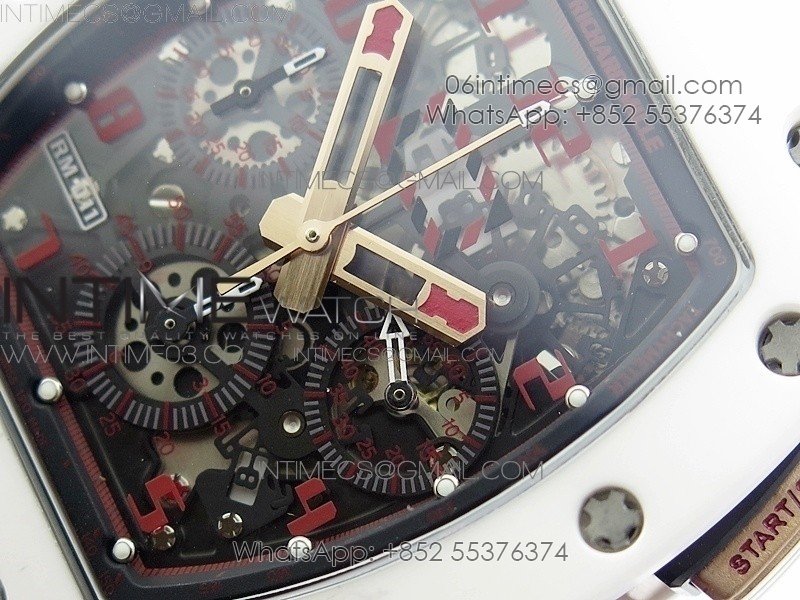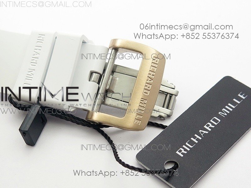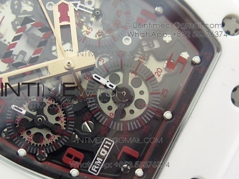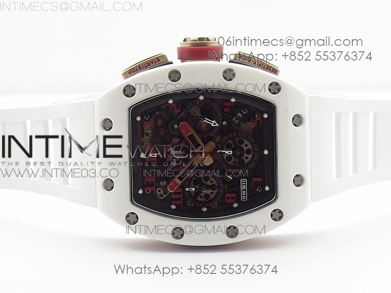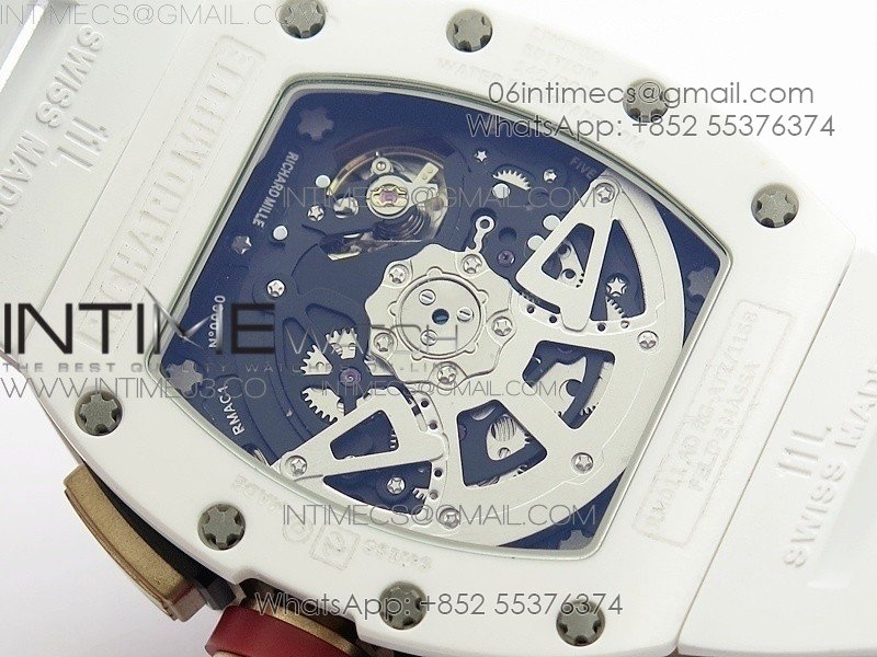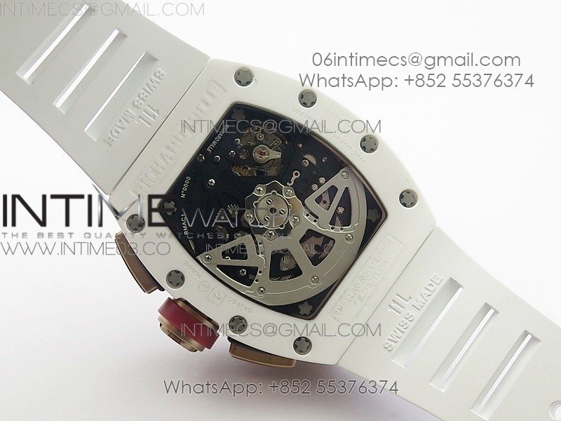RM011 RG Case Chronograph KVF 1:1 Best Edition White Ceramic Bezel Skeleton Dial on White Rubber Strap A7750