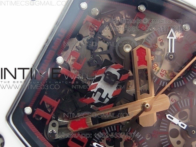 Movement Asian 7750 automatic chronograph movement with big date display decorated to RM movement; 28,800 VPH