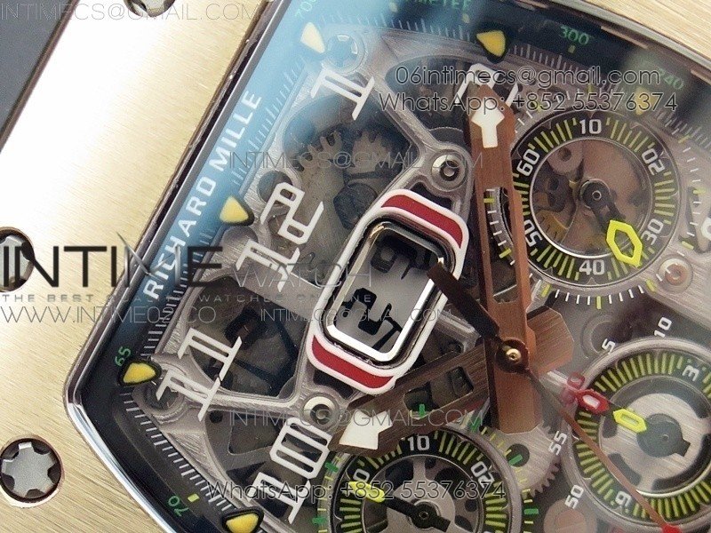 Movement    Asian 7750 automatic chronograph movement with big date display decorated to RM movement; t 28,800 VPH