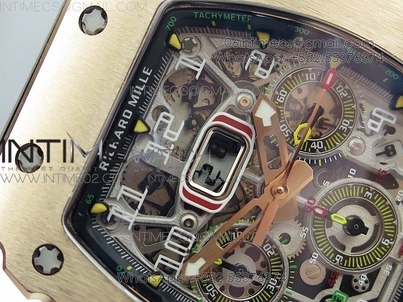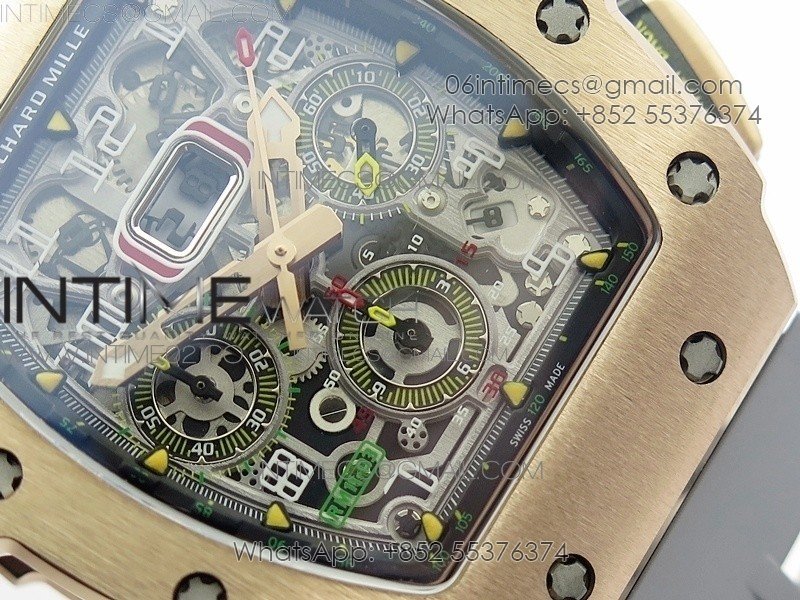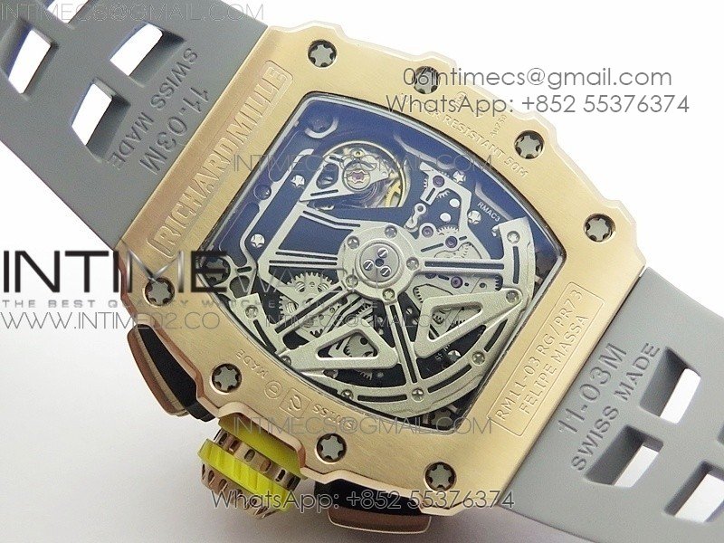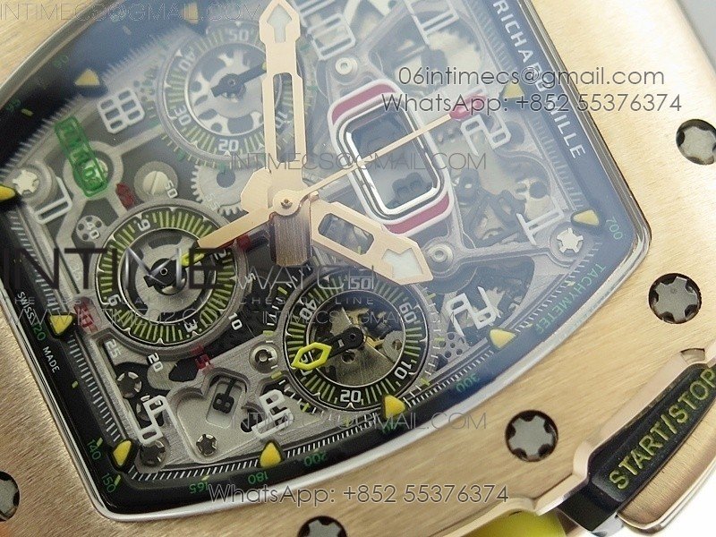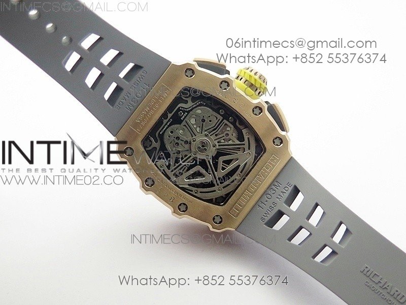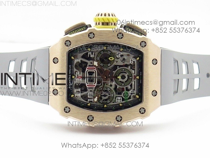 RM011 RG Chronograph RG Case KVF 1:1 Best Edition Crystal Skeleton Dial on Gray Rubber Strap A7750