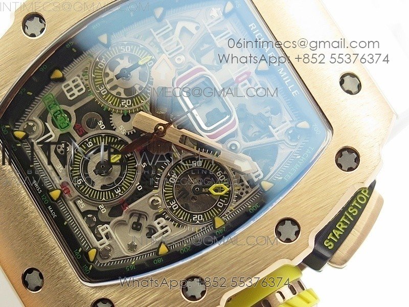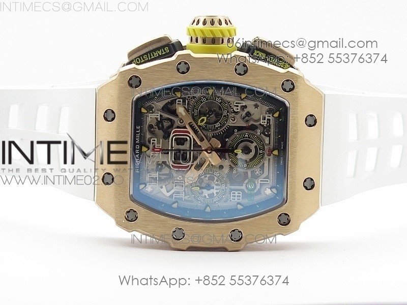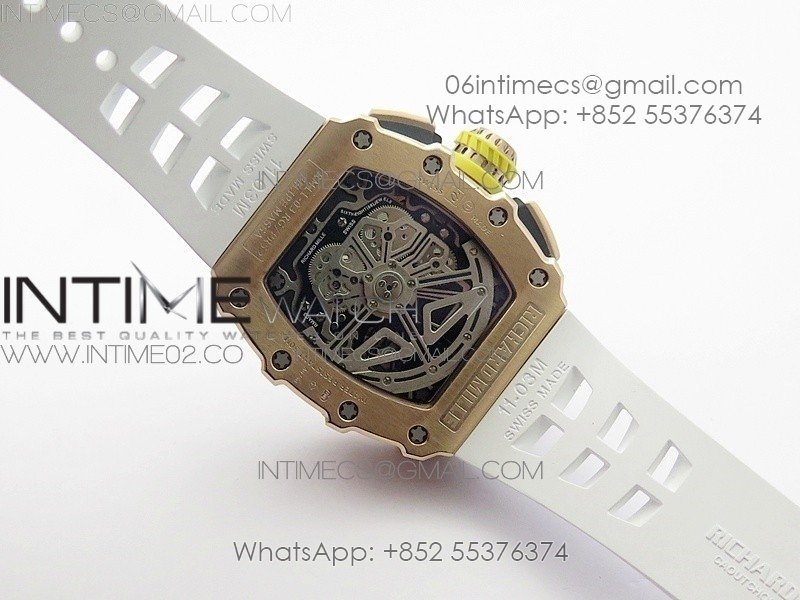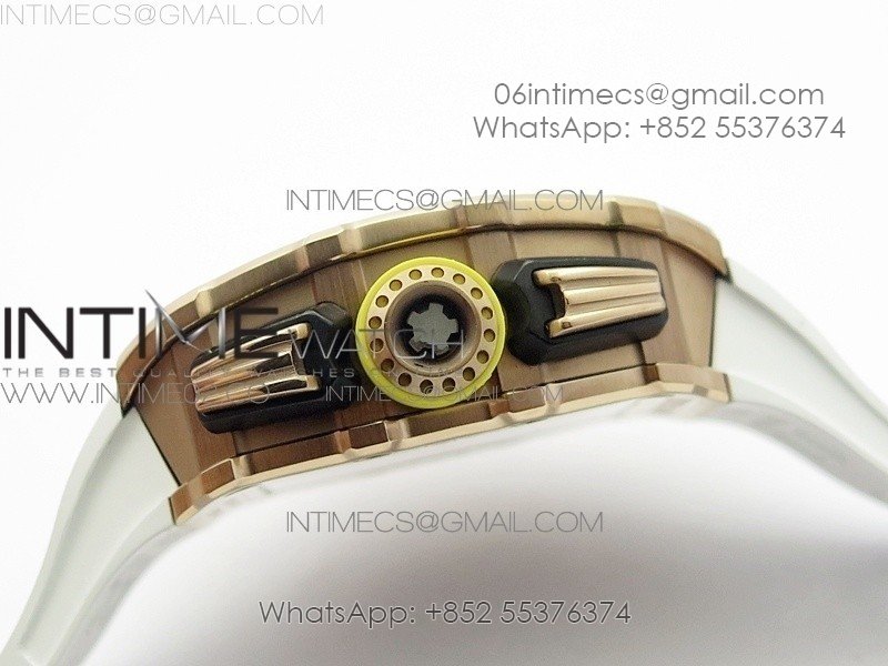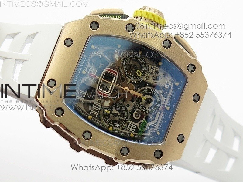 RM011 RG Chronograph RG Case KVF 1:1 Best Edition Crystal Skeleton Dial on White Rubber Strap A7750