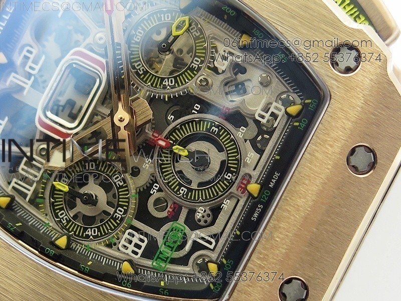 Movement Asian 7750 automatic chronograph movement with big date display decorated to RM movement; t 28,800 VPH