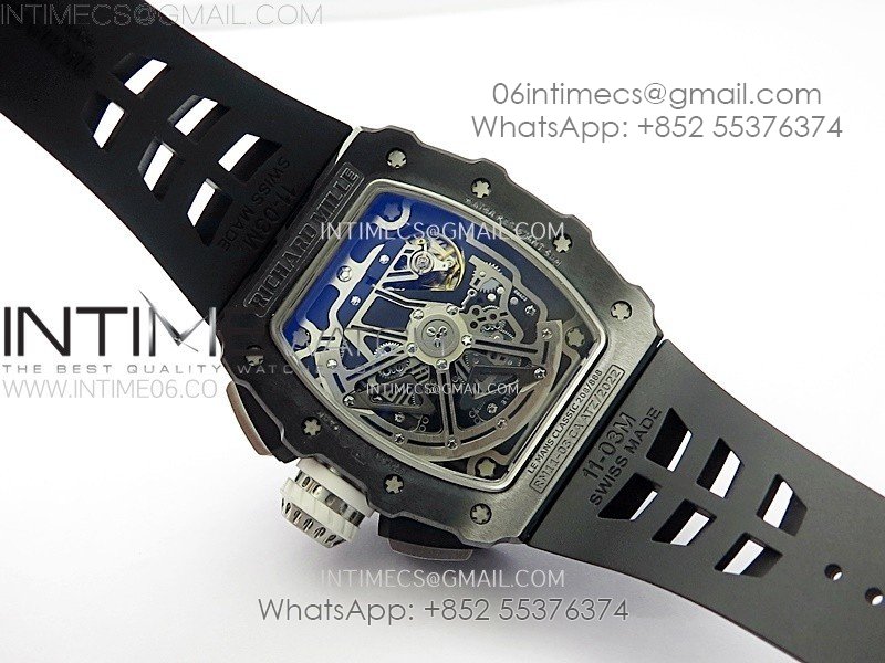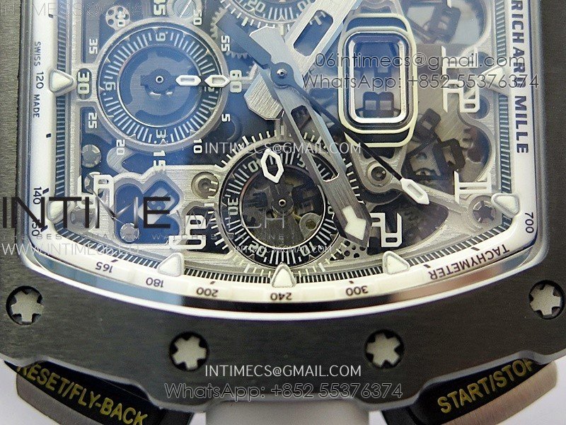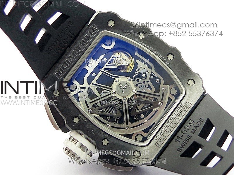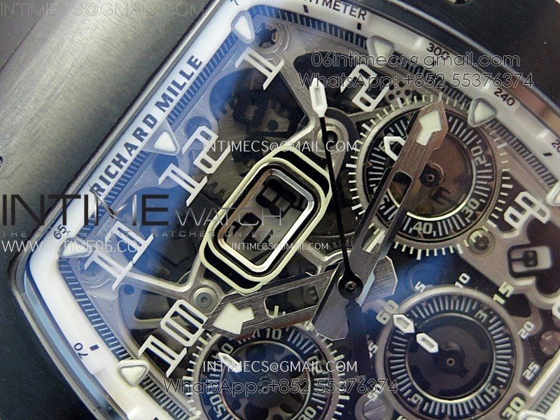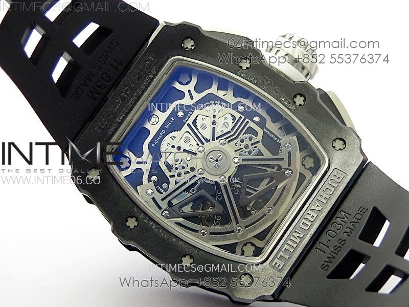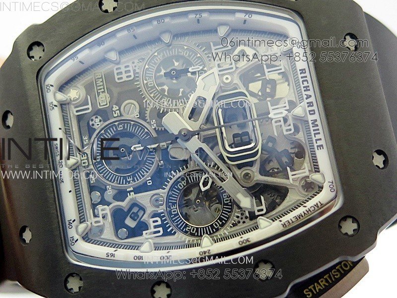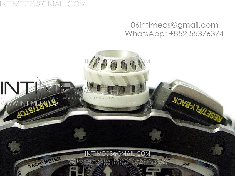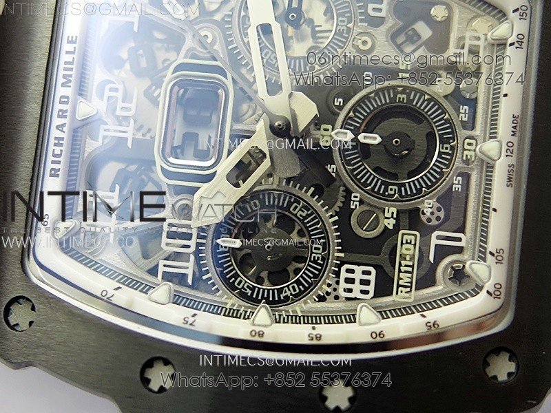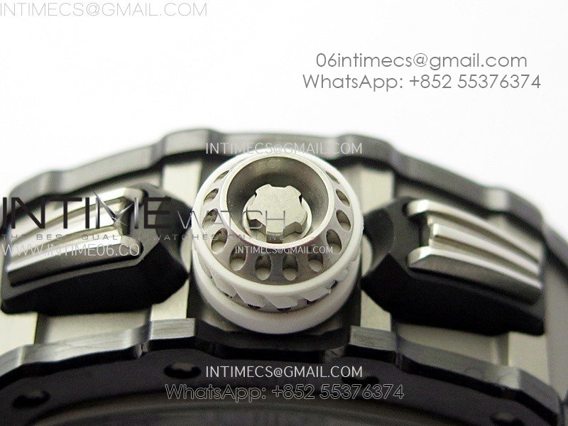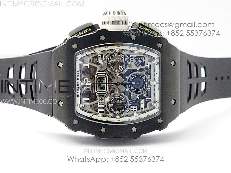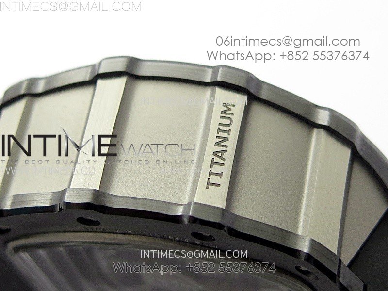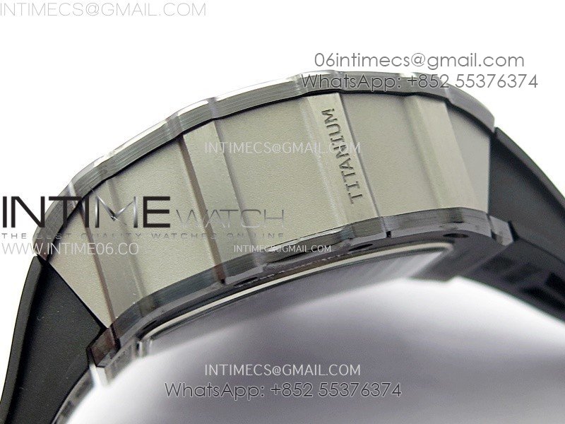 RM011 Titanium Case Black Ceramic Bezel Chronograph KUF Best Edition Skeleton Dial on Black Rubber Strap A7750