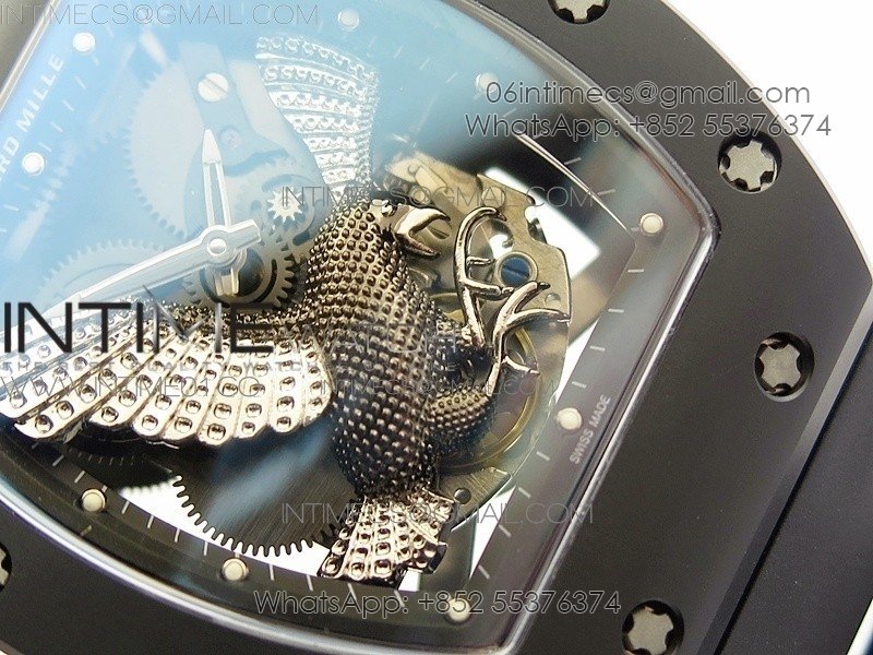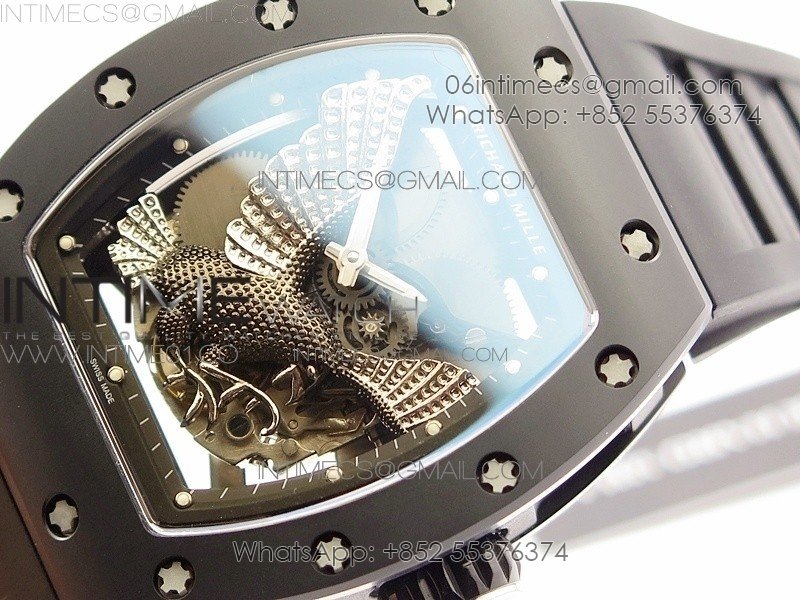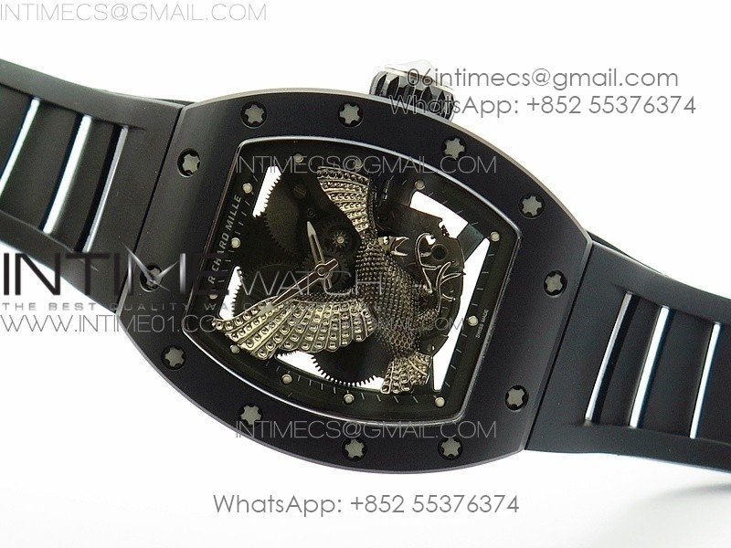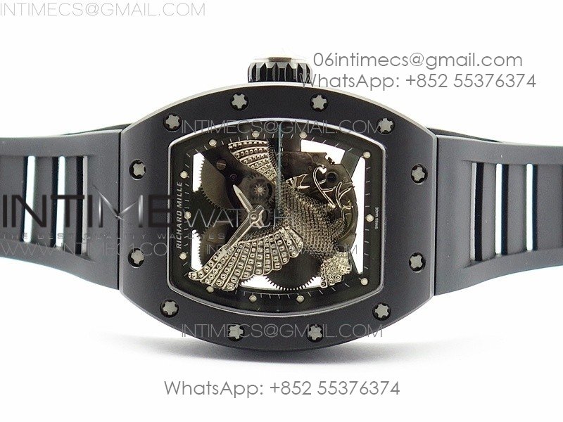 RM023 Real Ceramic Case KVF Best Edition Eagle Skeleton Dial SS Crown on Black Rubber Strap MIYOTA8215