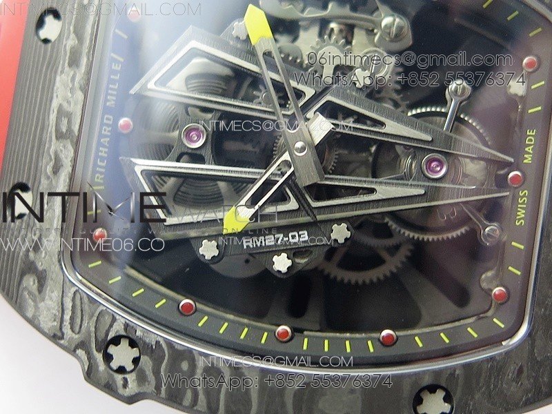 Movement Asian hand winding skeleton tourbillon movement modified to rm27 movement, black balance wheel