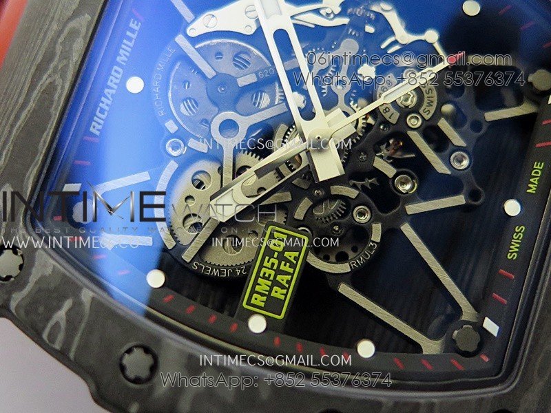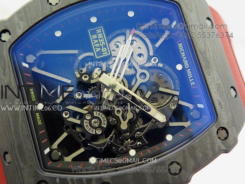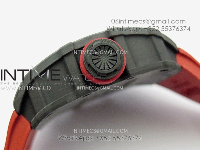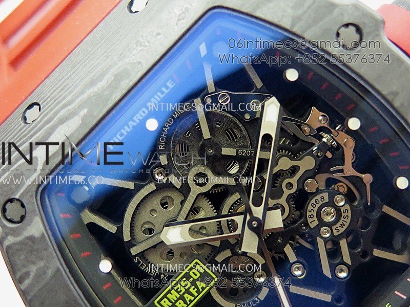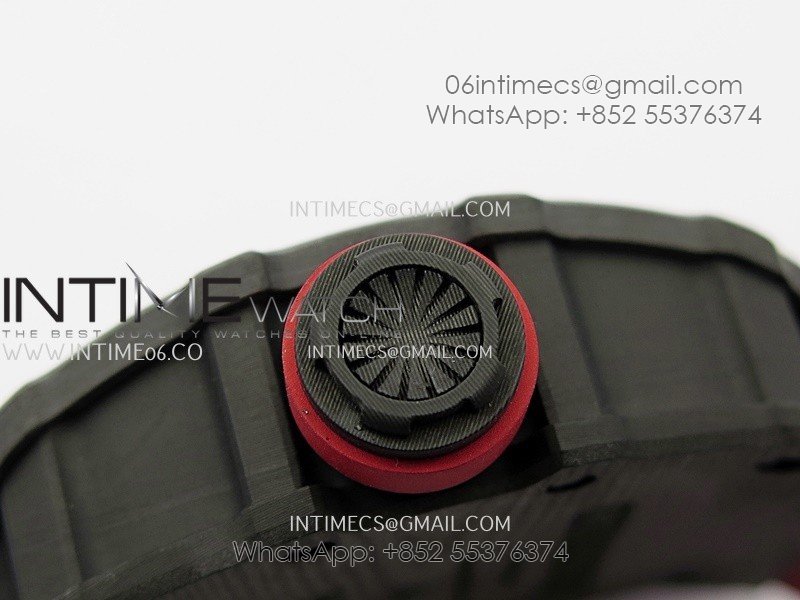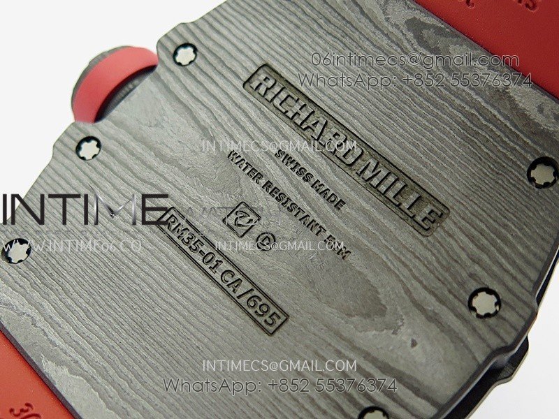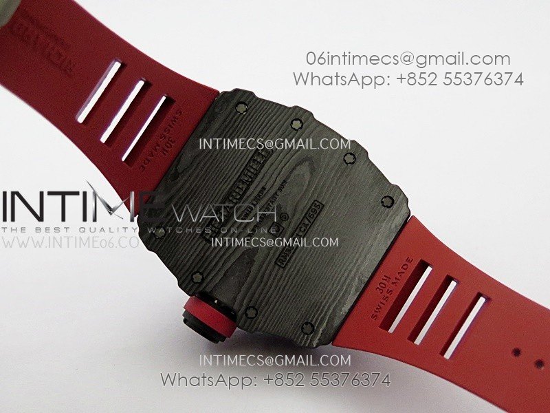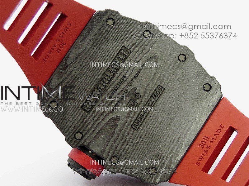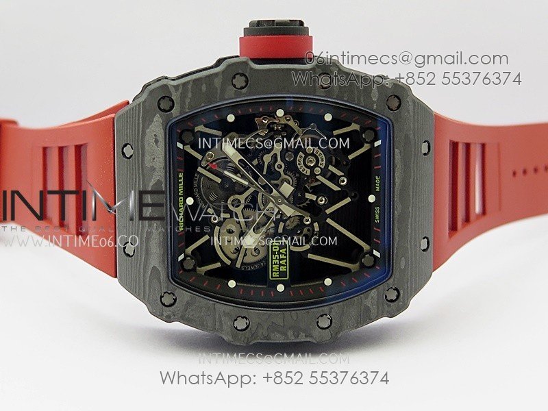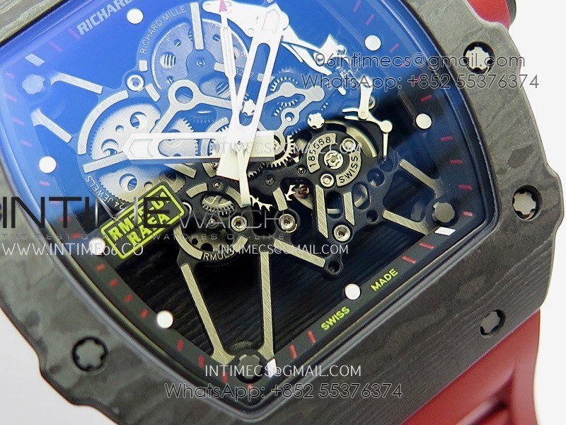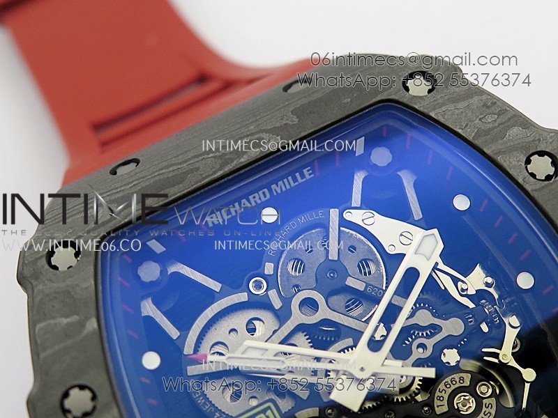 RM035-01 Black Carbon ZF Best Edition Skeleton Dial On Red Rubber Strap Super Clone RMUL2