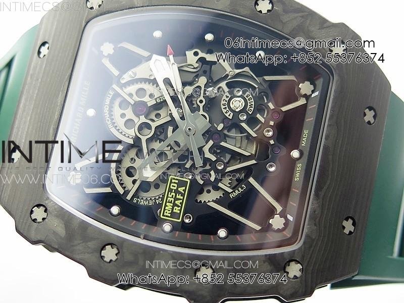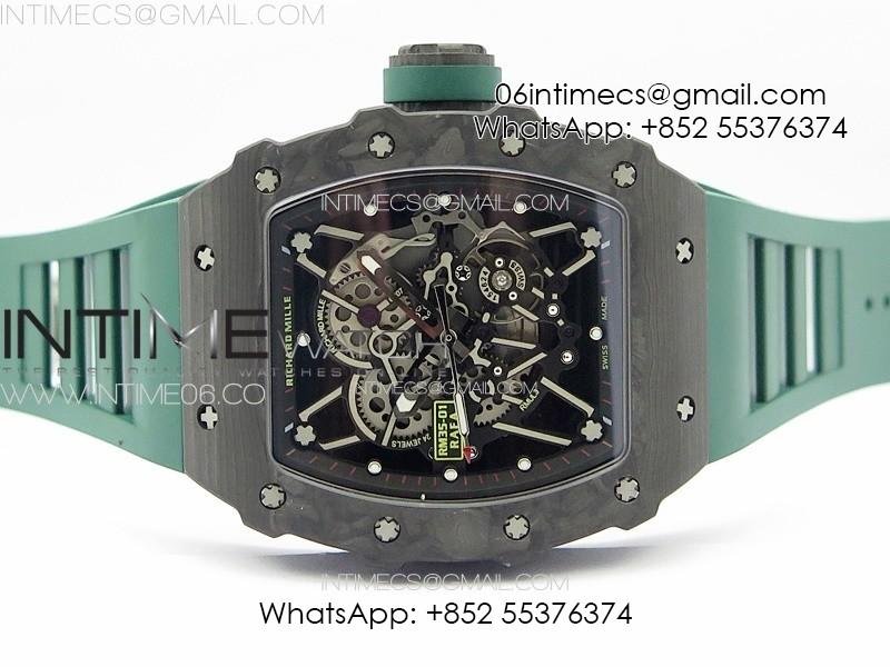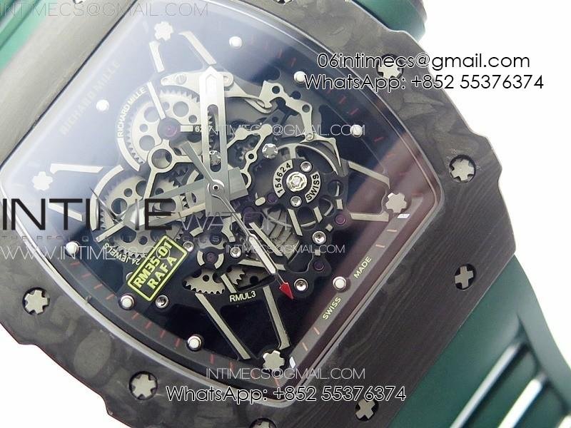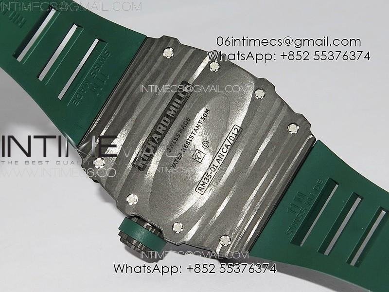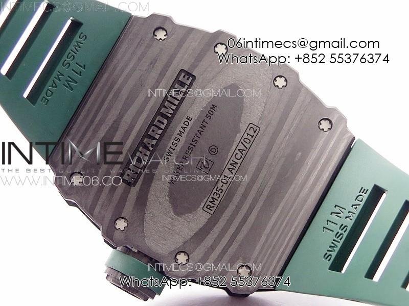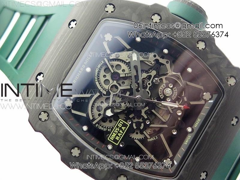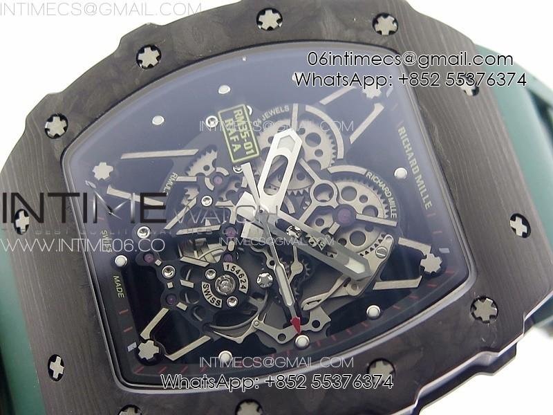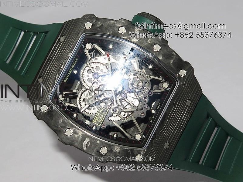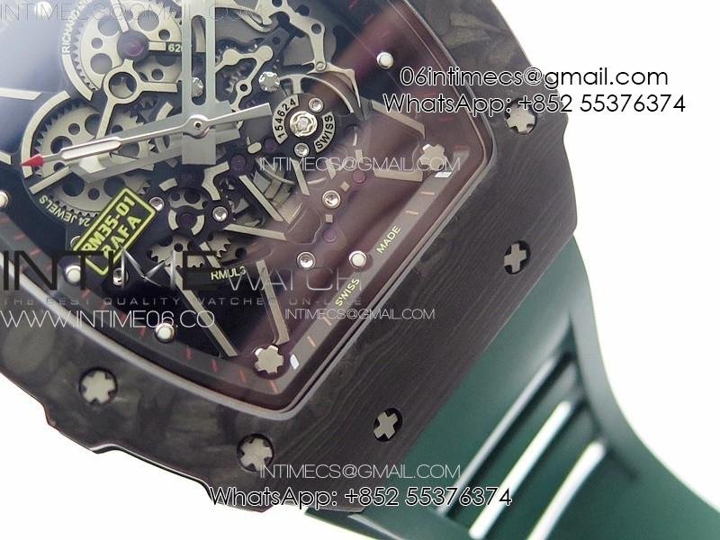 RM035-01 Forged Carbon Case KUF Best Edition Black Crown on Green Rubber Strap MIYOTA8215