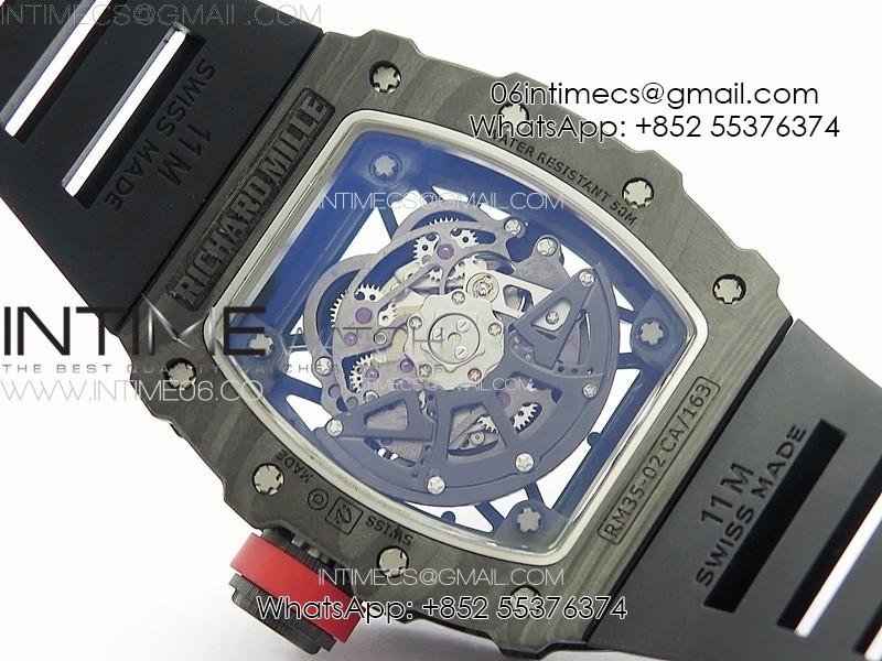 RM035-02 Forged Carbon Case KUF Best Edition Red Crown on Black Rubber Strap MIYOTA8215