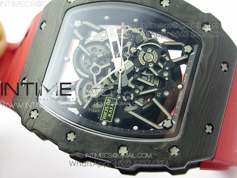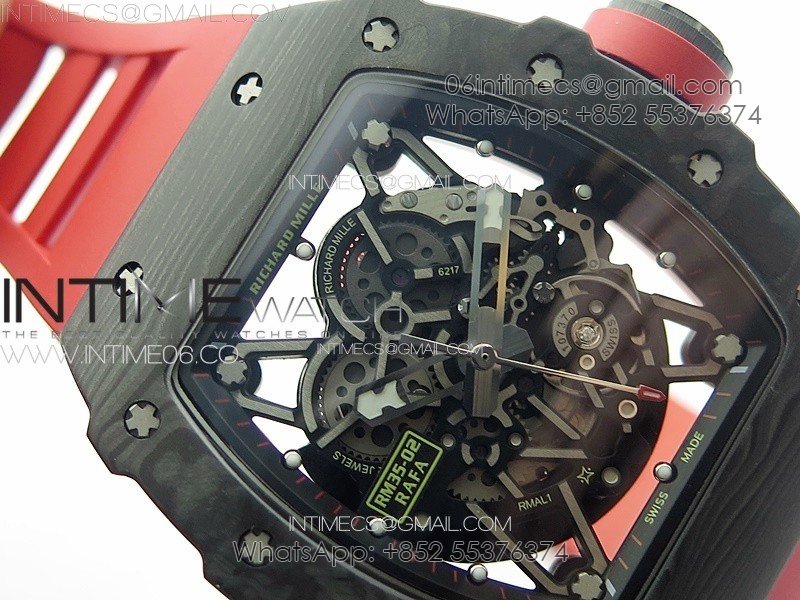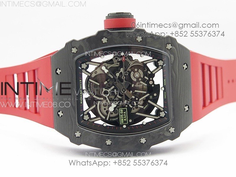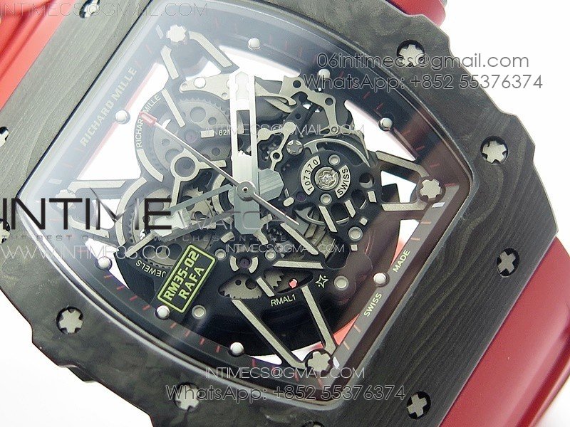 RM035-02 Forged Carbon Case KUF Best Edition Red Crown on Red Rubber Strap MIYOTA8215