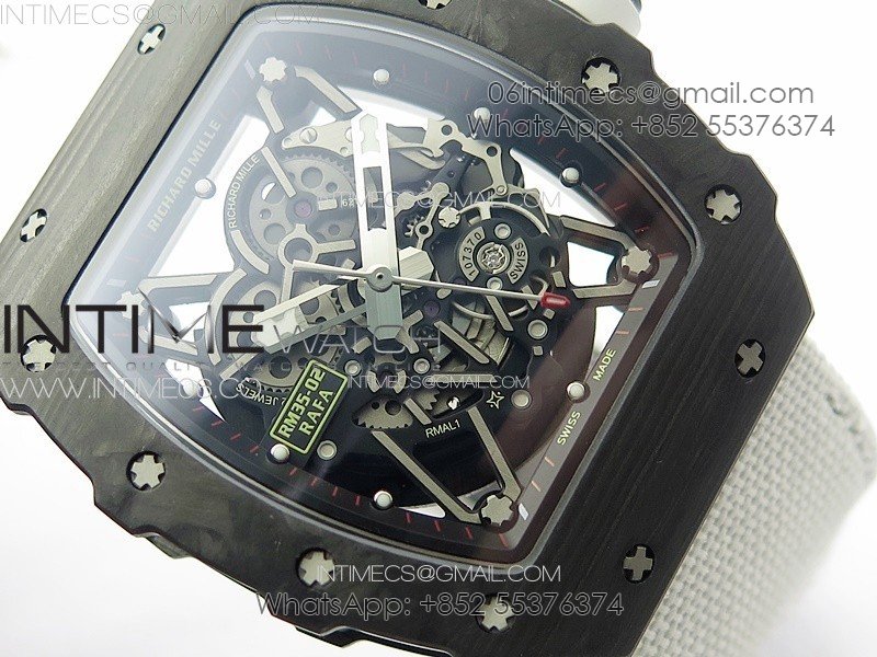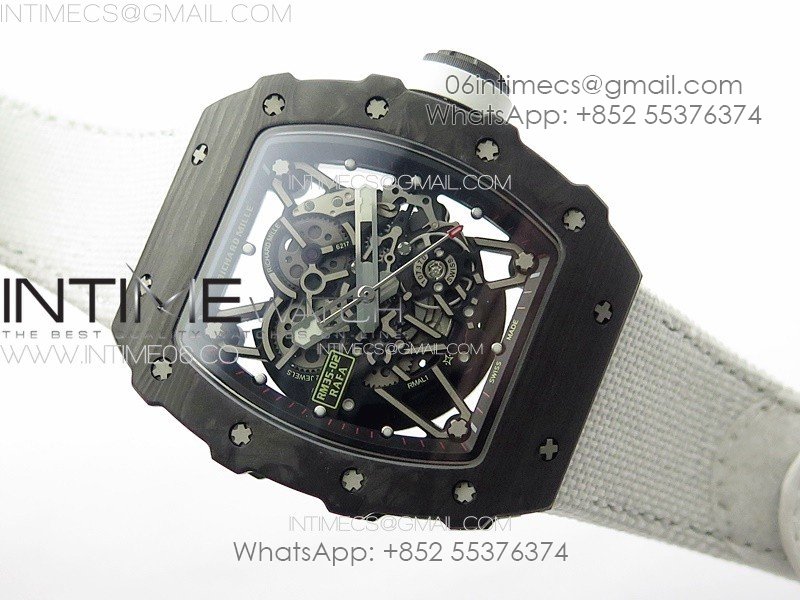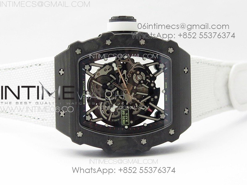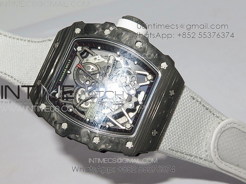 RM035-02 Forged Carbon Case KUF Best Edition White Crown on White Nylon Strap MIYOTA8215