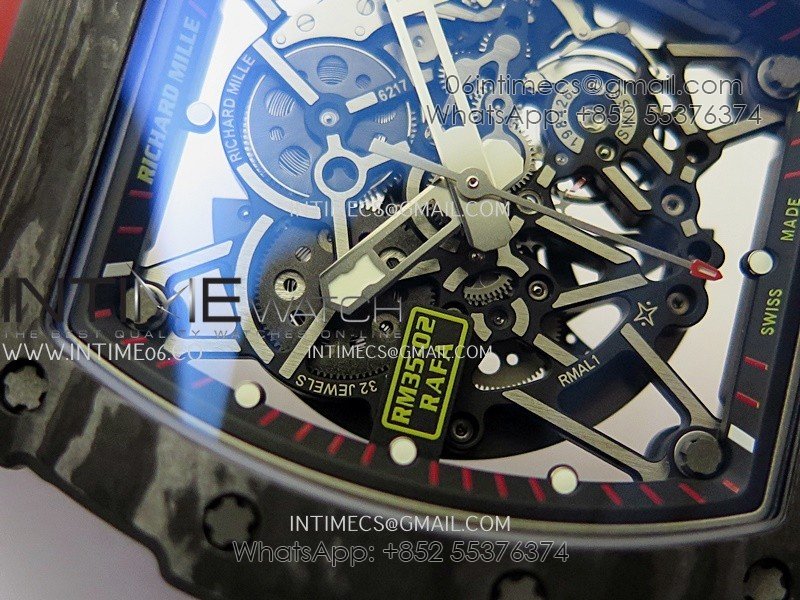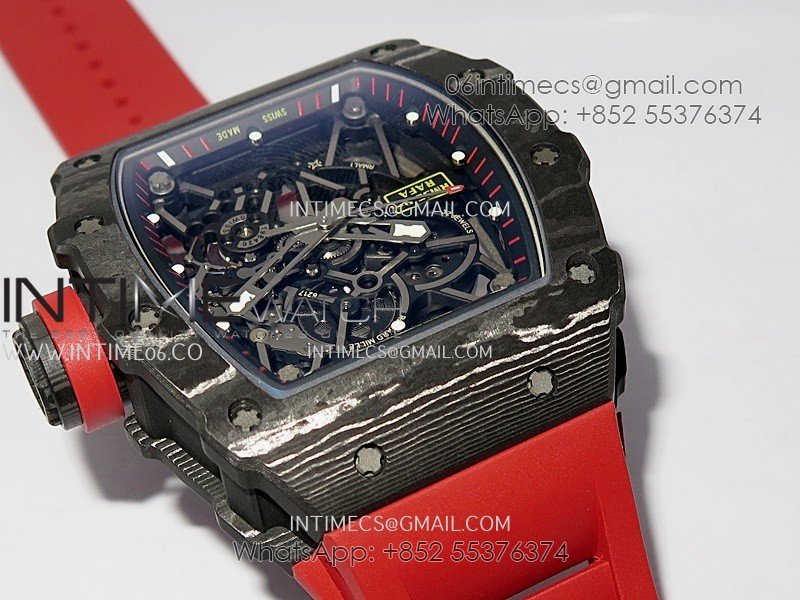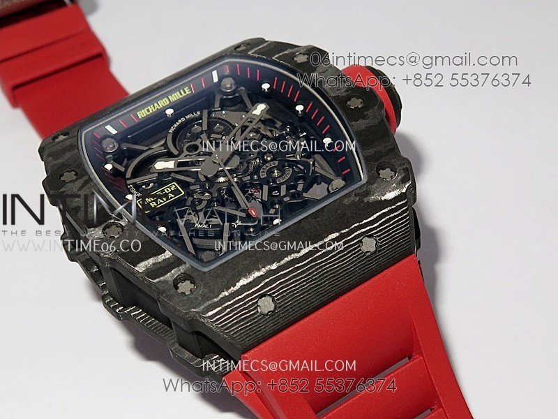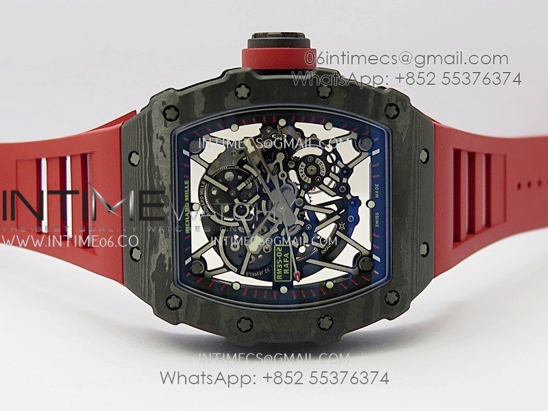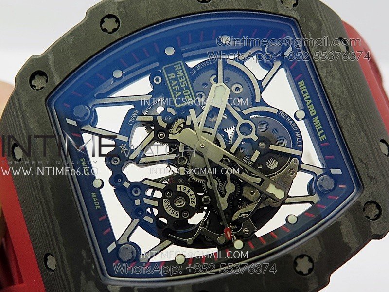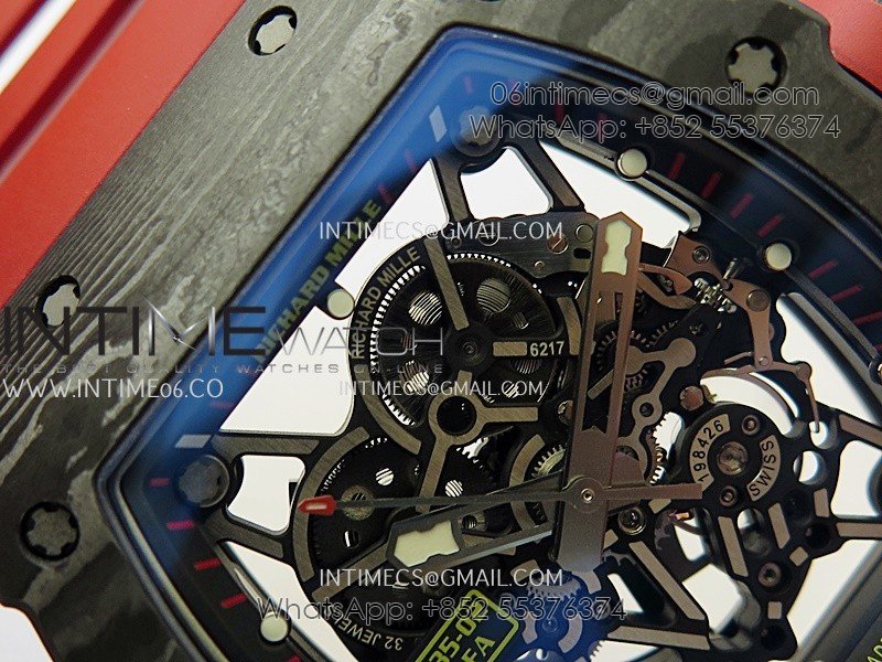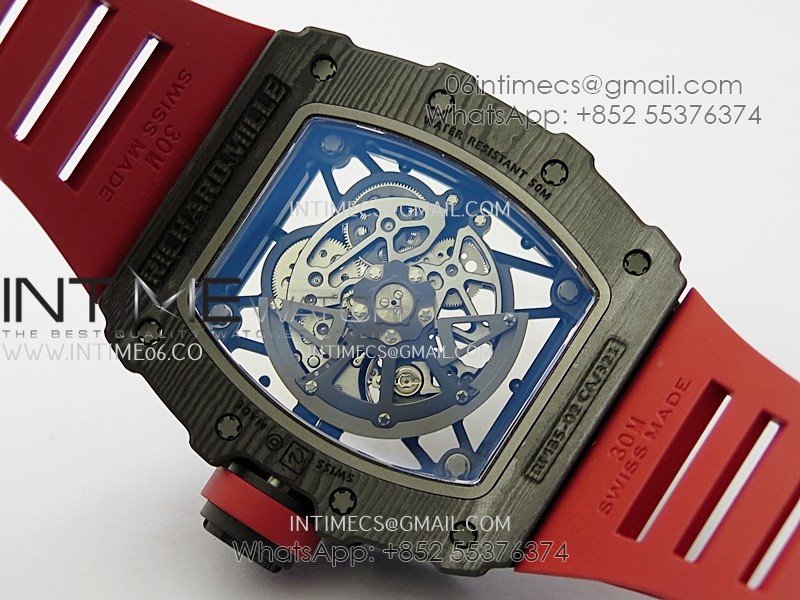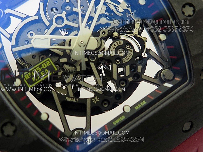 RM035-02 Real Black NTPT APSF 1:1 Best Edition Skeleton Dial On Red Rubber Strap Dandong Super Clone RMAL1 (Free Sprung)