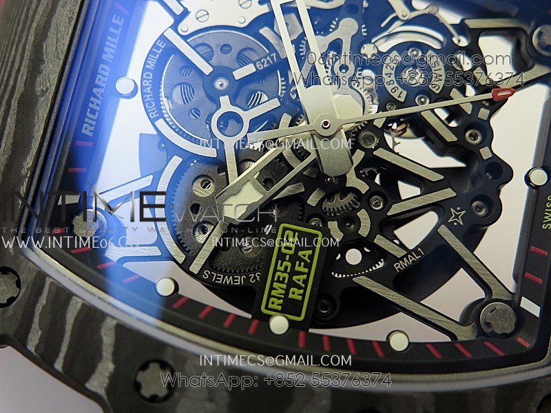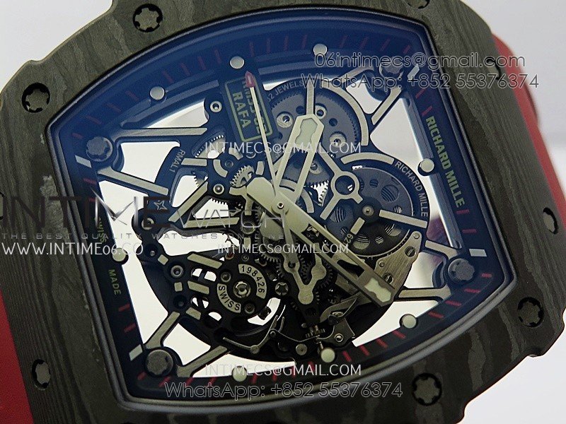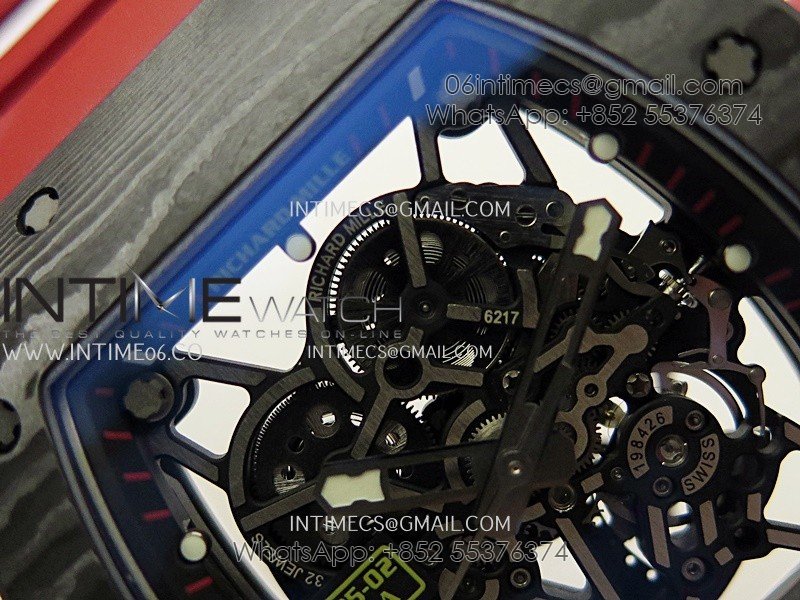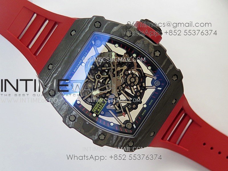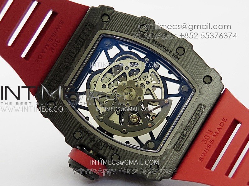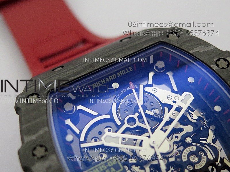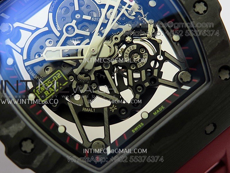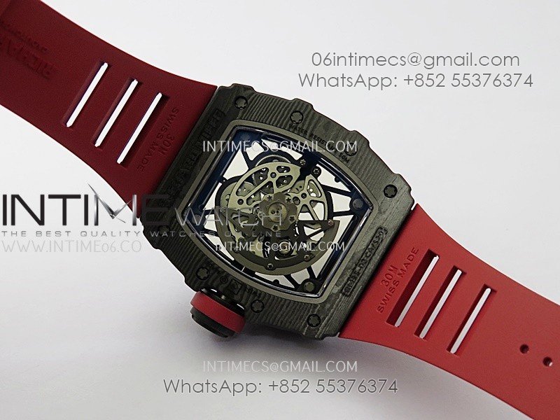 RM035-02 Real Black NTPT APSF 1:1 Best Edition Skeleton Dial On Red Rubber Strap Dandong Super Clone RMAL1