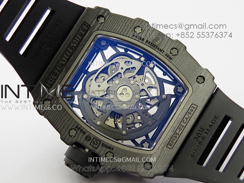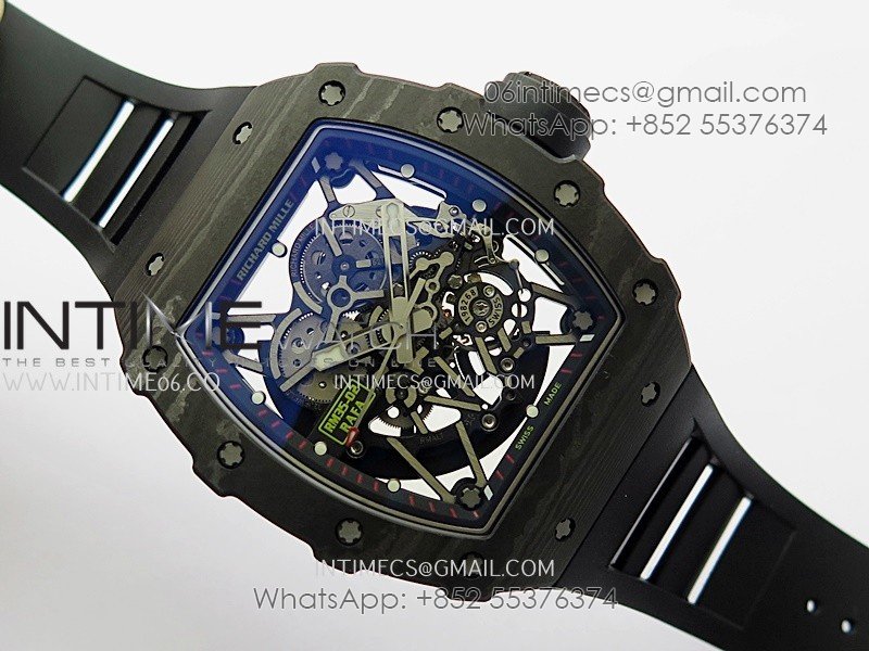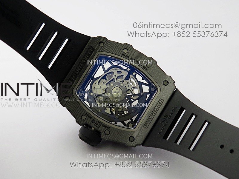 RM035-02 Real Black NTPT ZF 1:1 Best Edition Skeleton Dial On Black Rubber Strap Real Super Clone RMAL1 V7