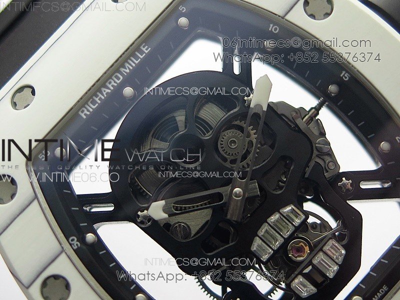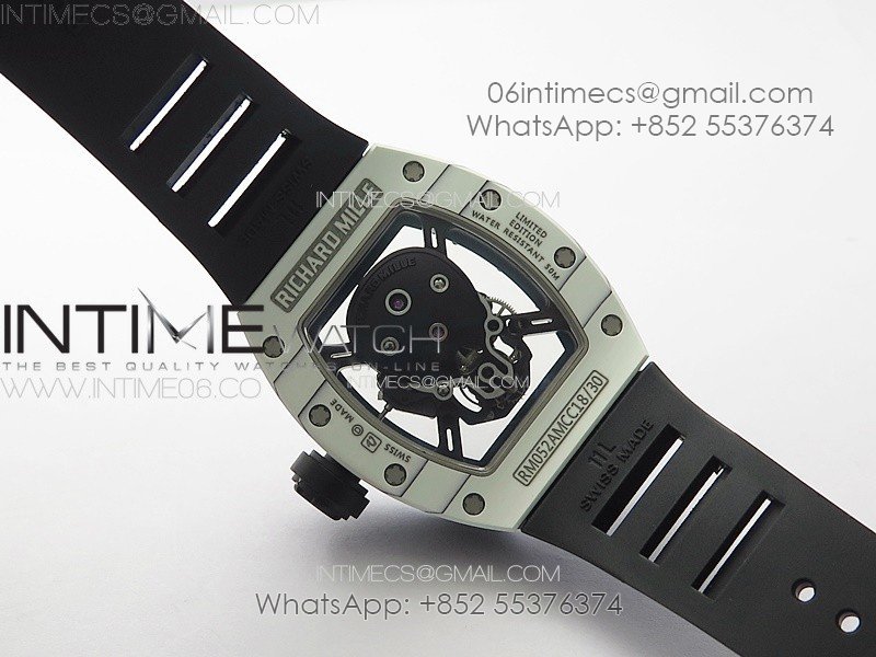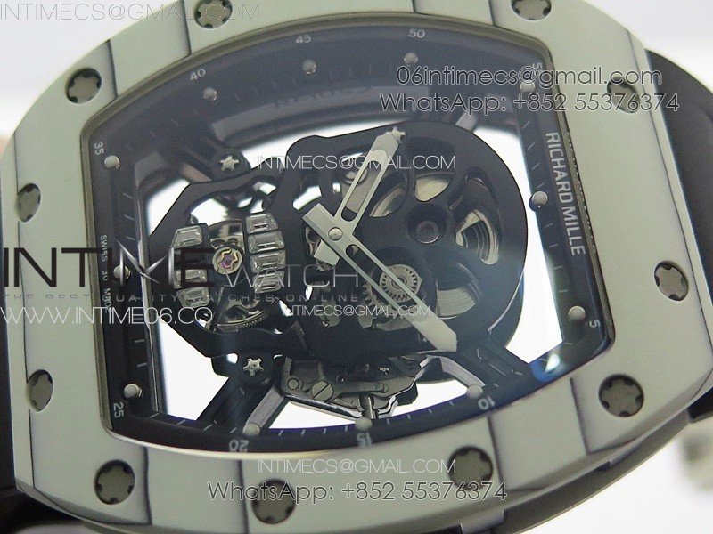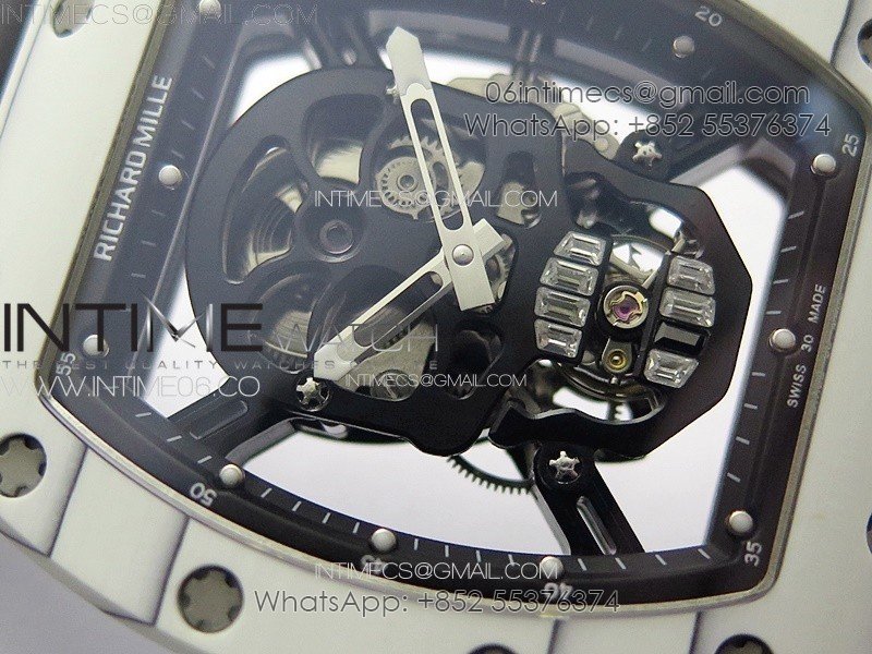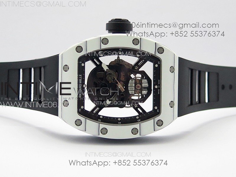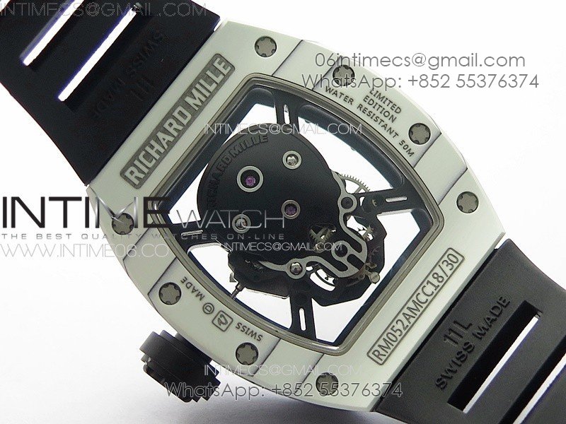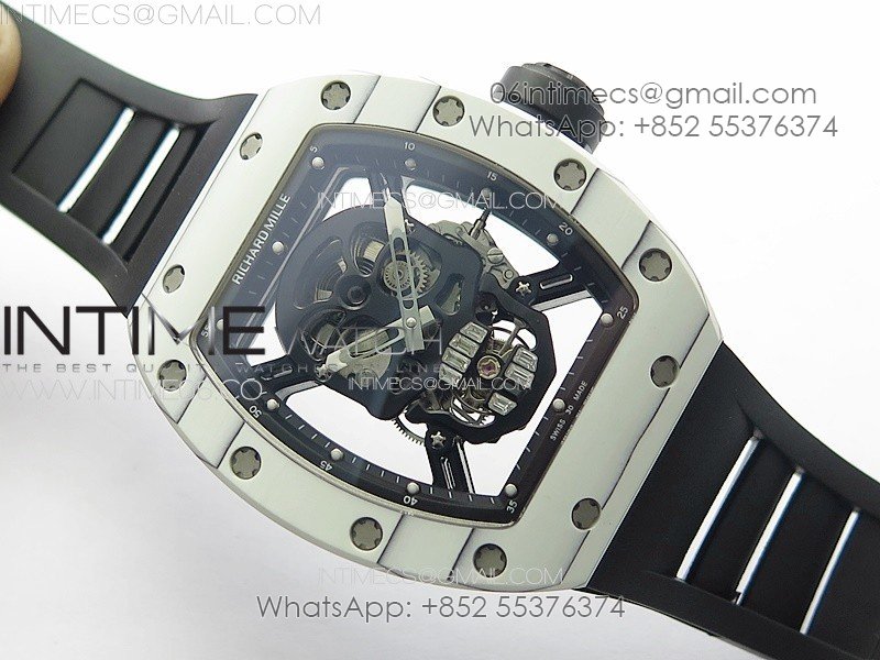 RM052 Skull White Carbon Real Tourbillon YSF 1:1 Best Edition Skull Dial on Black Rubber Strap
