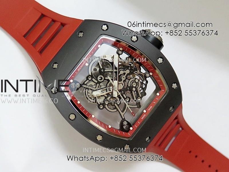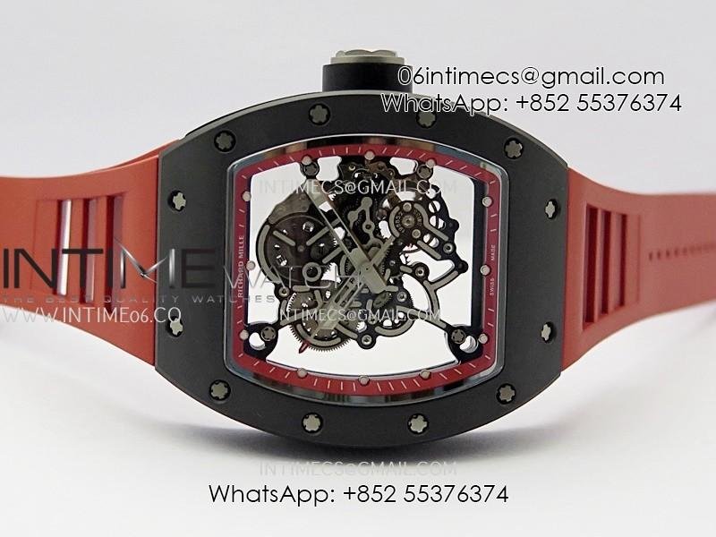 RM055 Black Ceramic Red Inner Bezel DF Best Edition On Red Rubber Strap RMUL2 Super Clone (Free Sprung)