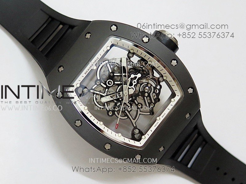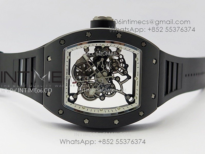 RM055 Black Ceramic White Inner Bezel DF Best Edition On Black Rubber Strap RMUL2 Super Clone (Free Sprung)