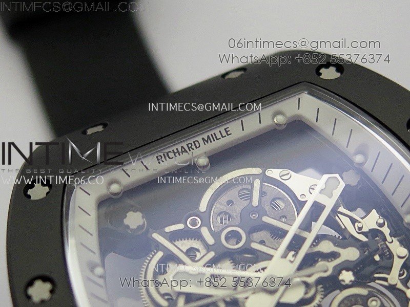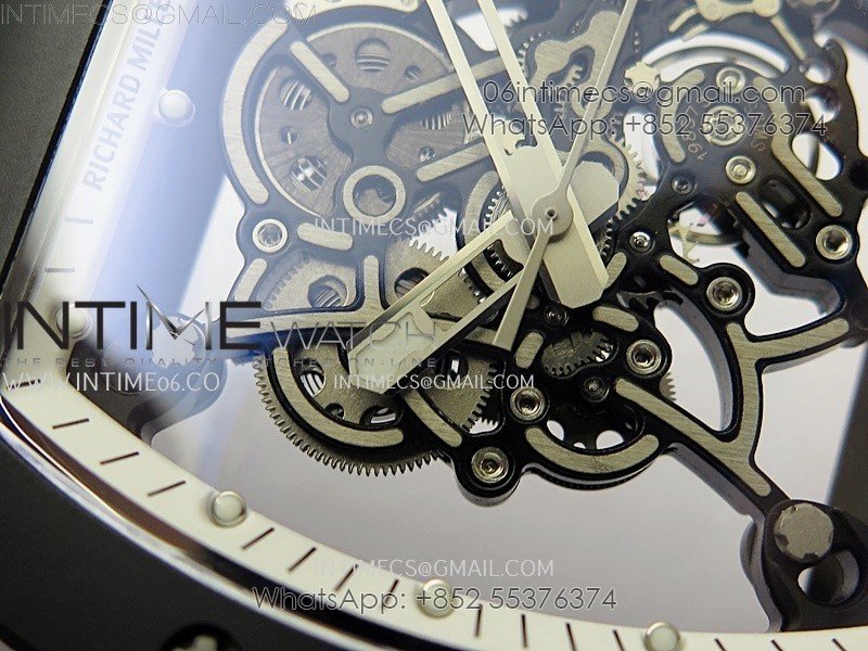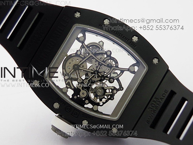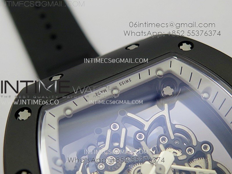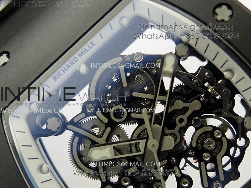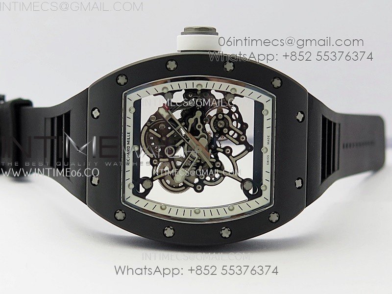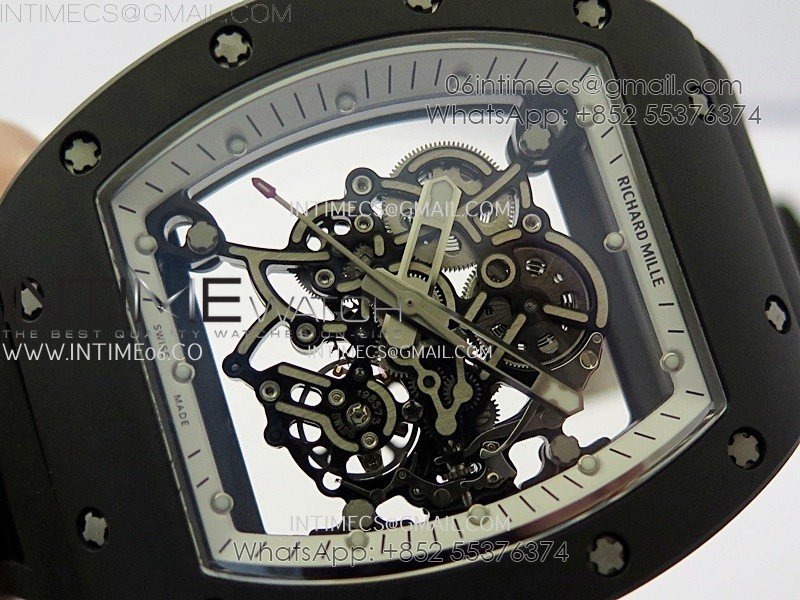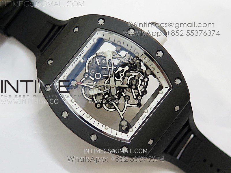 RM055 Black Ceramic White Inner RMF Best Edition Skeleton Dial On Black Rubber Strap RMUL2 Super Clone