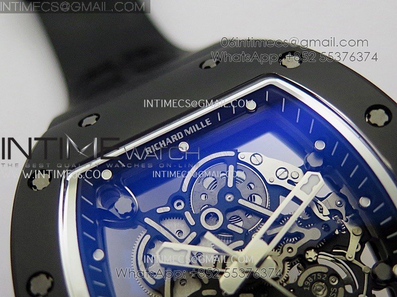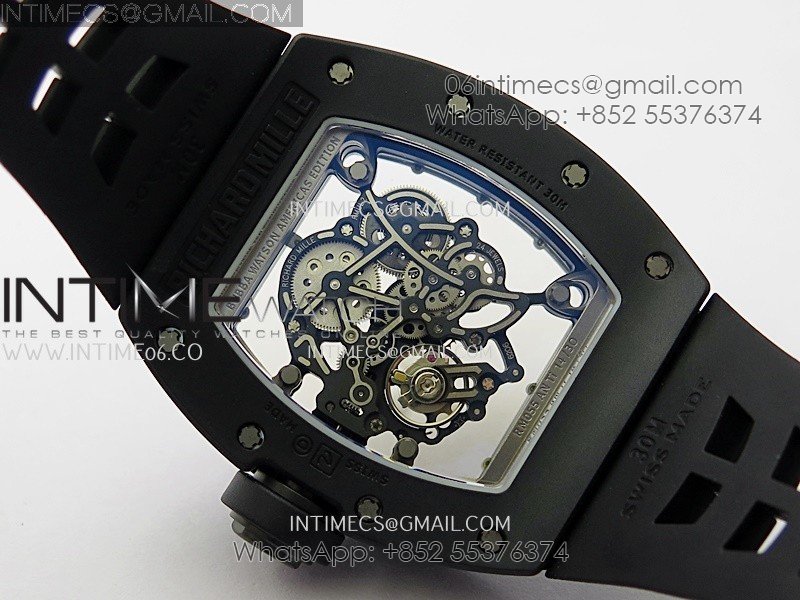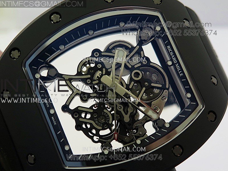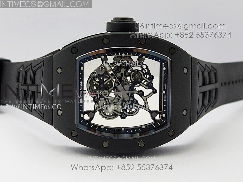 RM055 Black Crown And Inner Black Ceramic ZF 1:1 Best Edition Skeleton Dial On Black Rubber Strap RMUL2 Super Clone