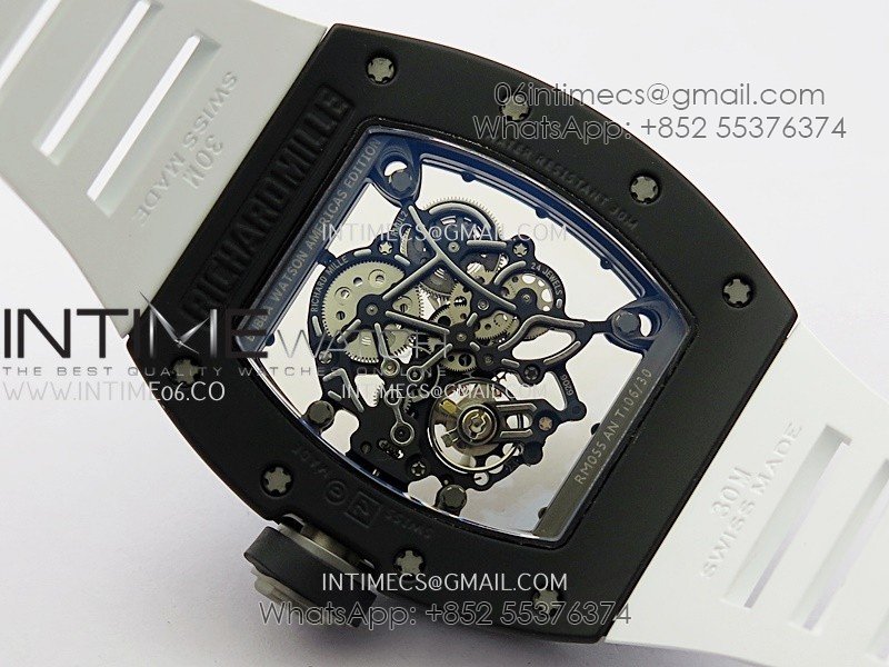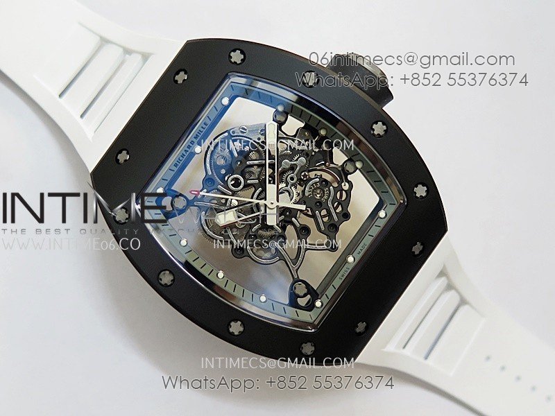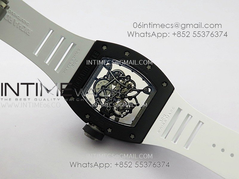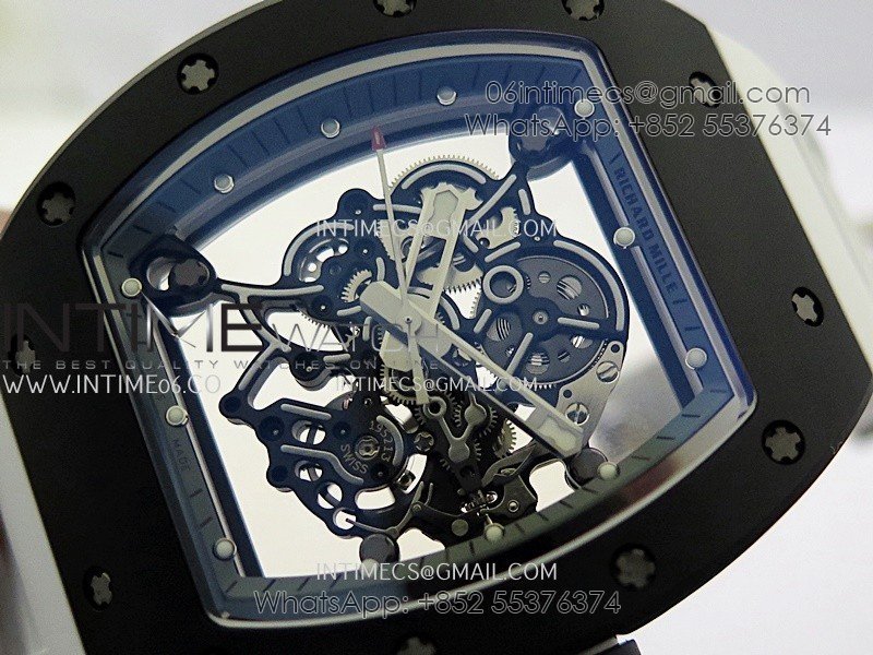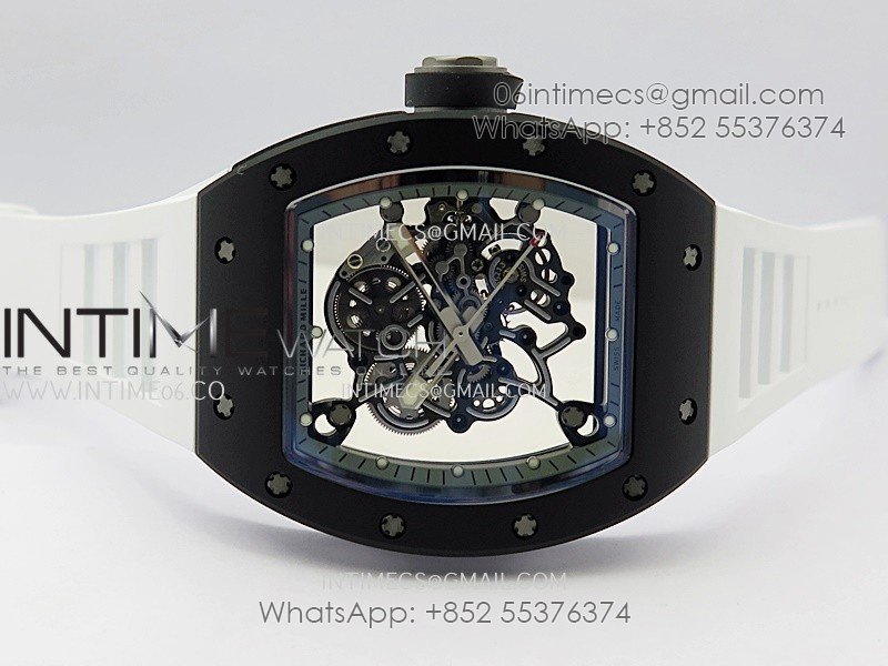RM055 Black Inner Bezel Black/White Ceramic APSF 1:1 Best Edition On Black Rubber Strap RMUL2 Super Clone