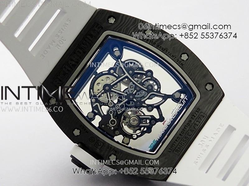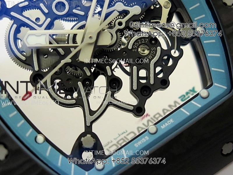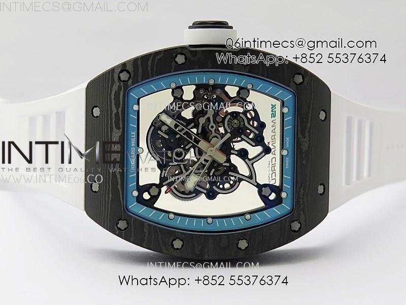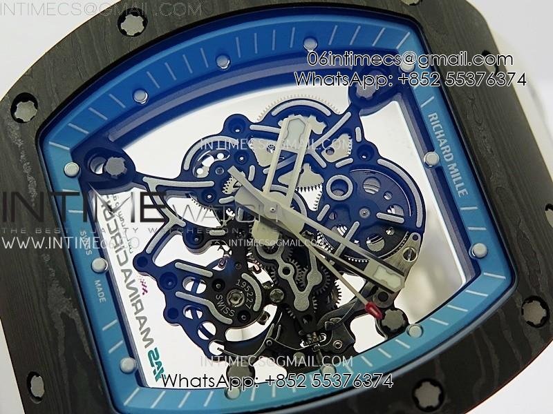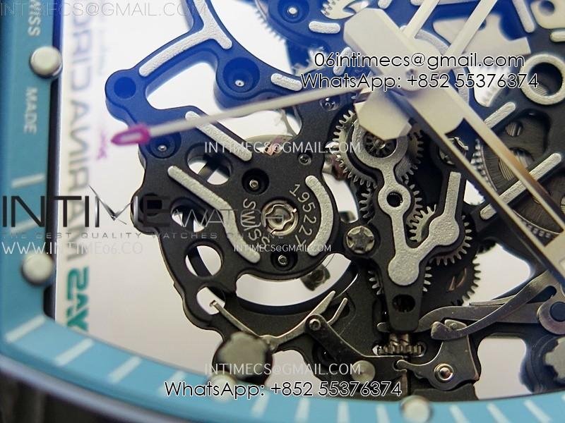 RM055 Blue Inner Bezel Black Crown NTPT/NTPT ZF 1:1 Best Edition on White Rubber Strap RMUL2 Super Clone