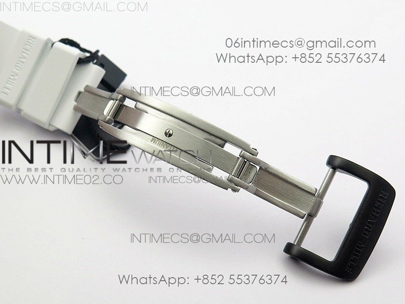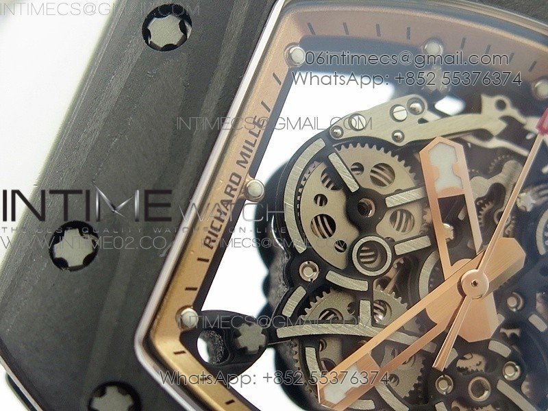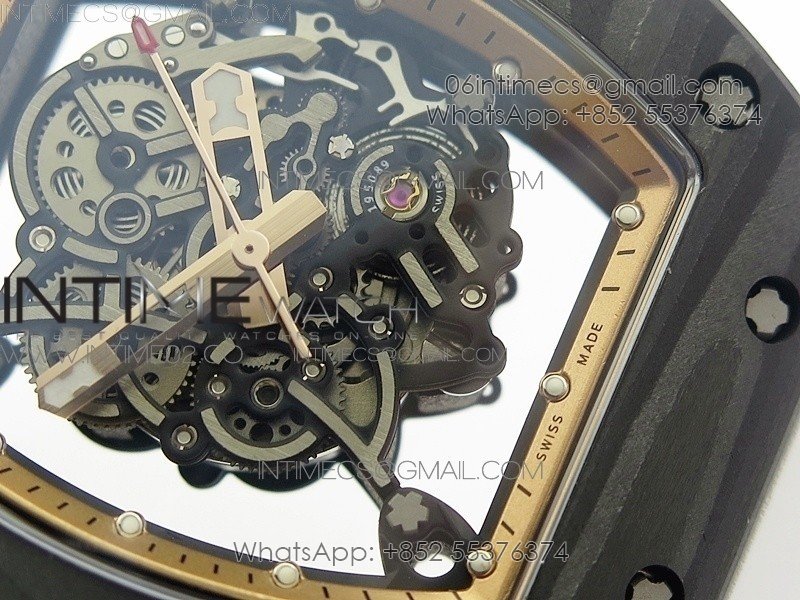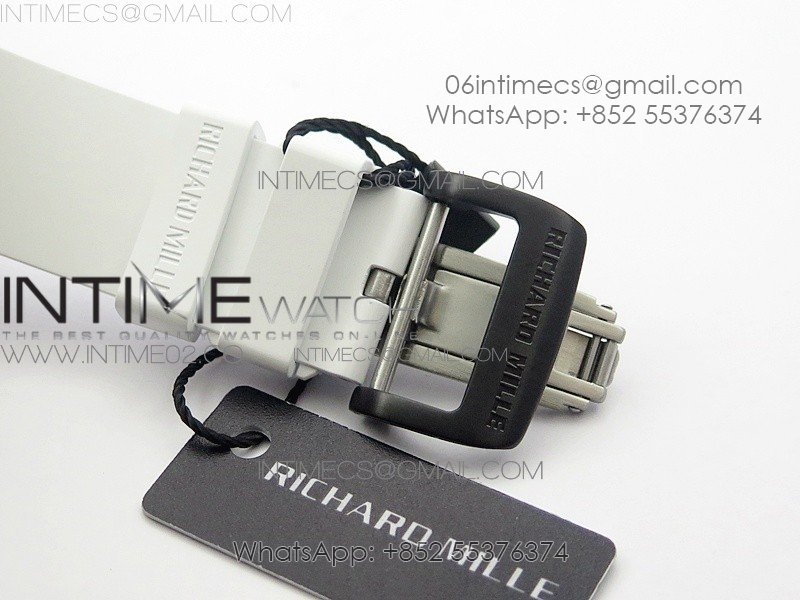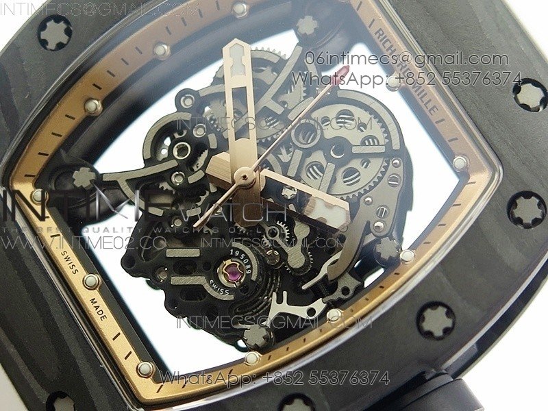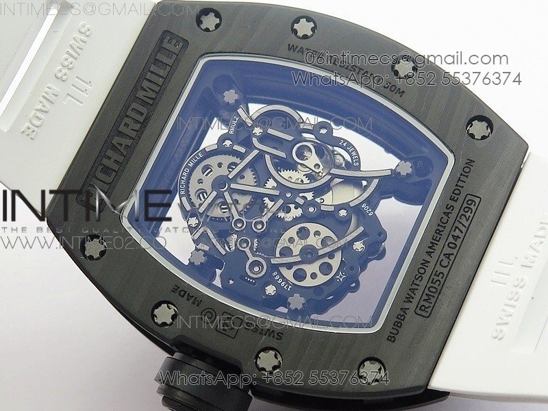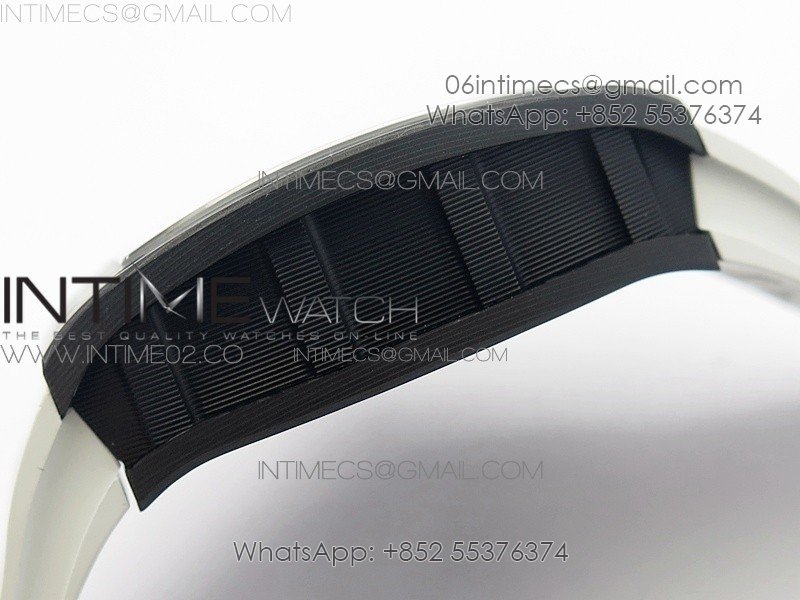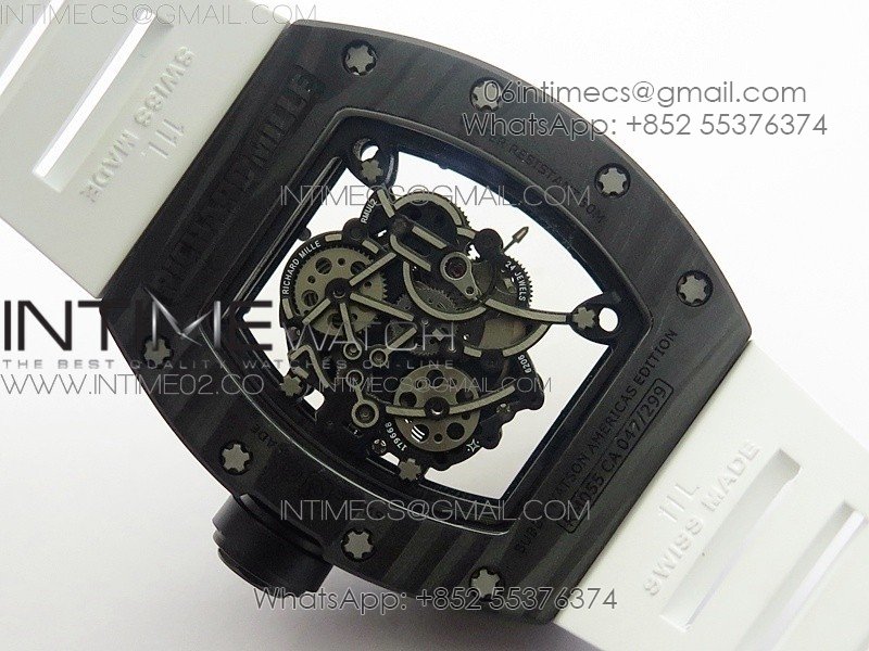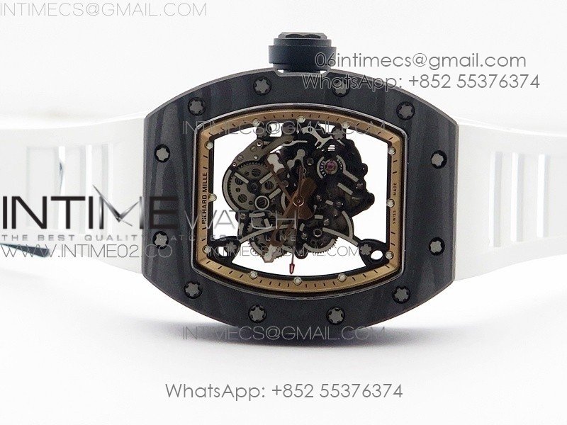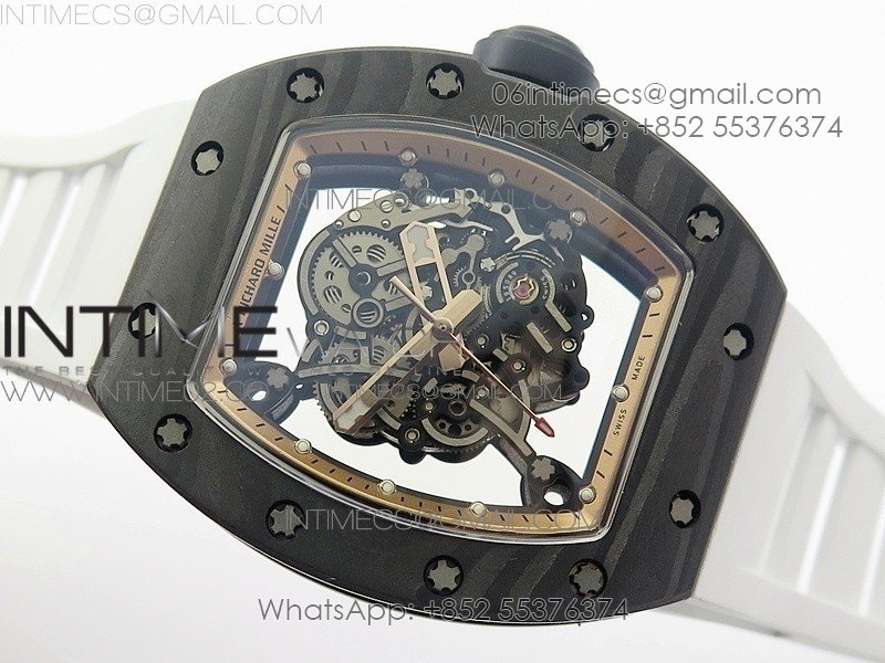 RM055 Carbon Case KVF Best Edition Carbon Bezel Skeleton Dial Black Crown on White Rubber Strap MIYOTA8215