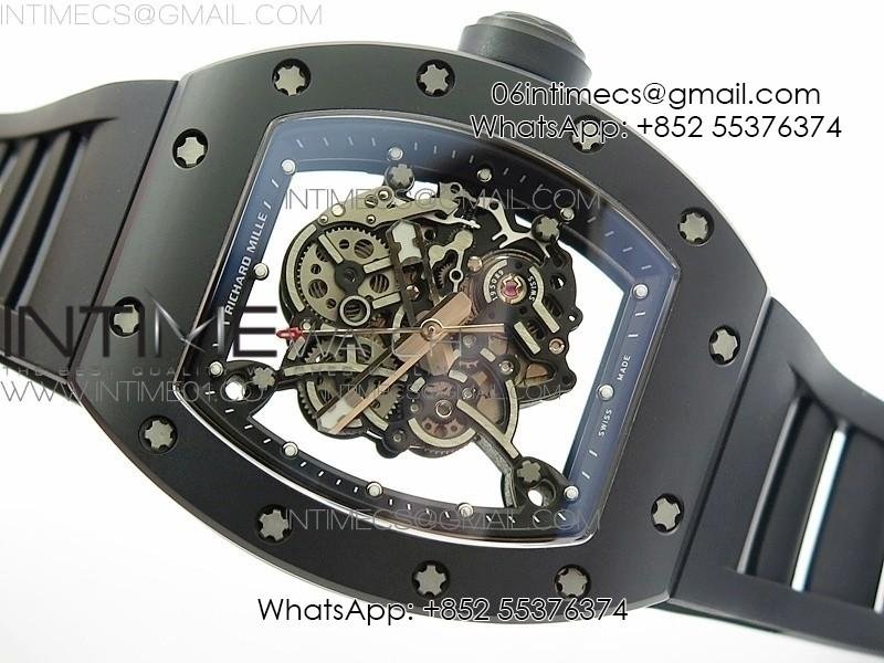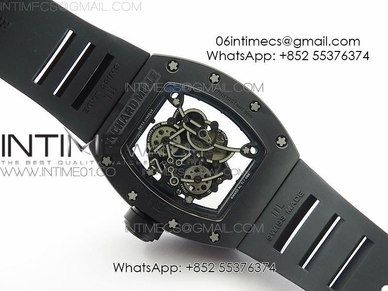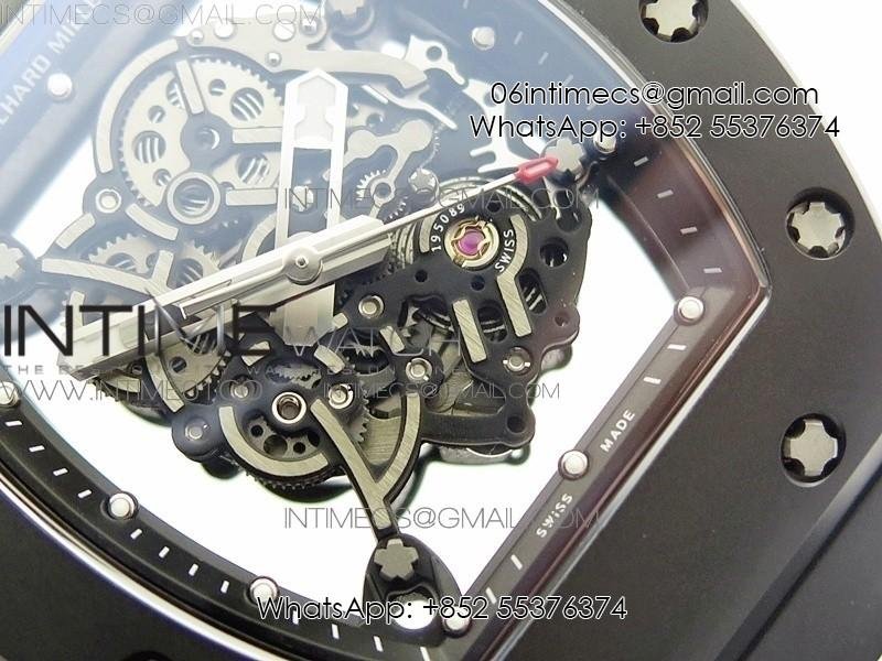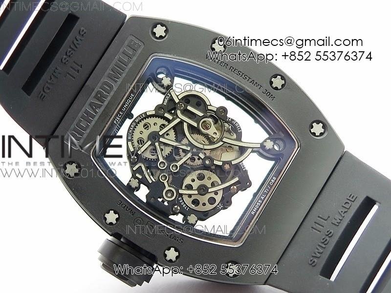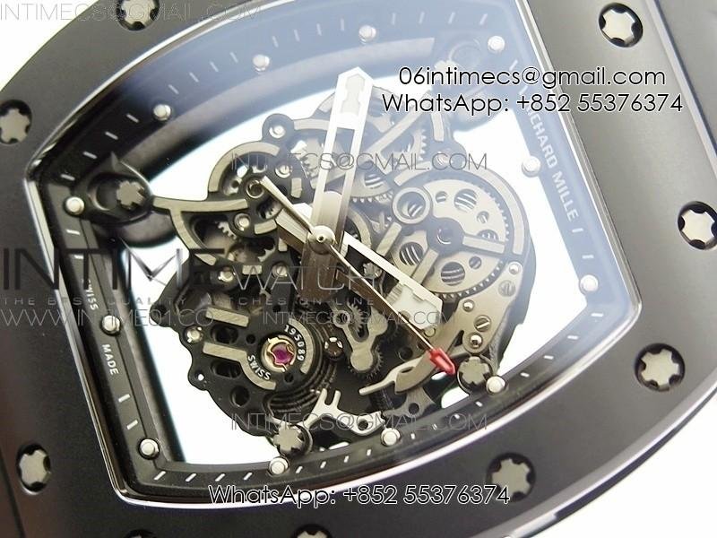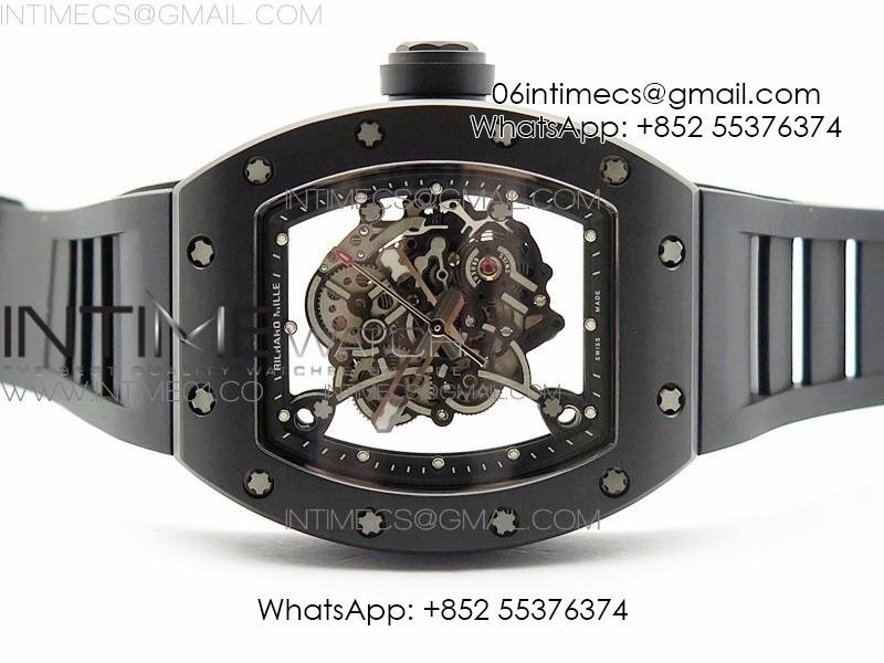 RM055 Real Ceramic Case KVF Best Edition Skeleton Dial Black Crown on Black Rubber Strap MIYOTA8215