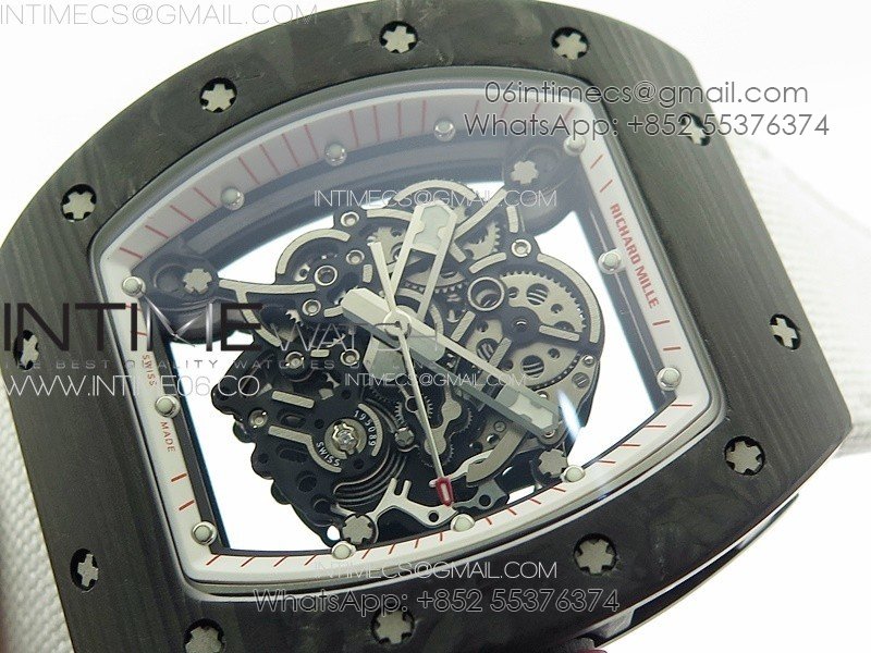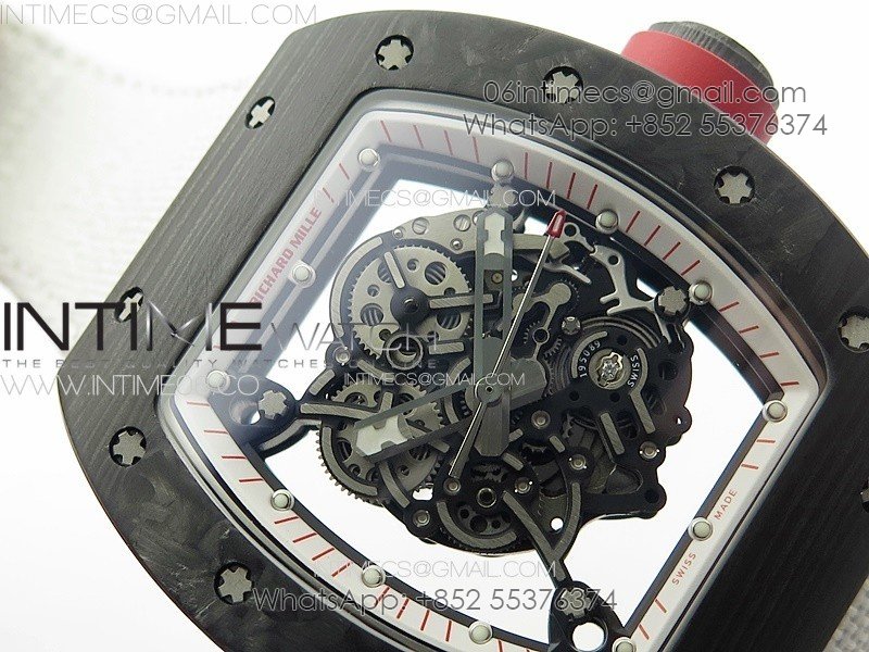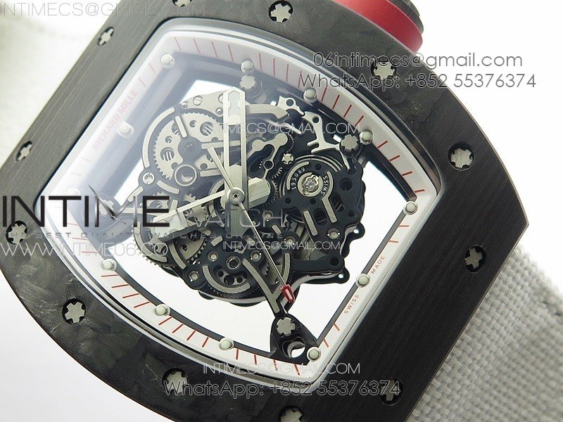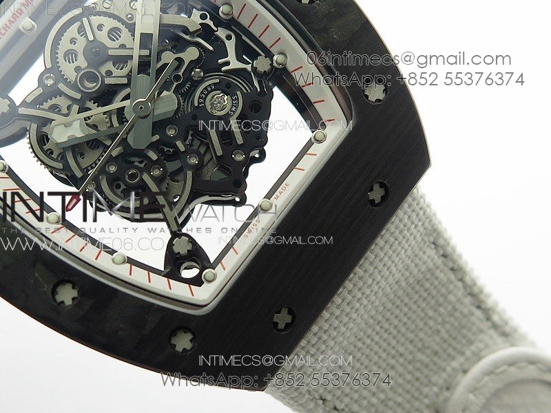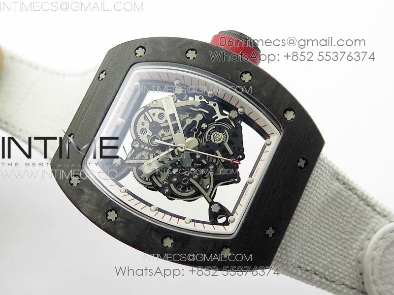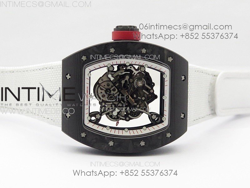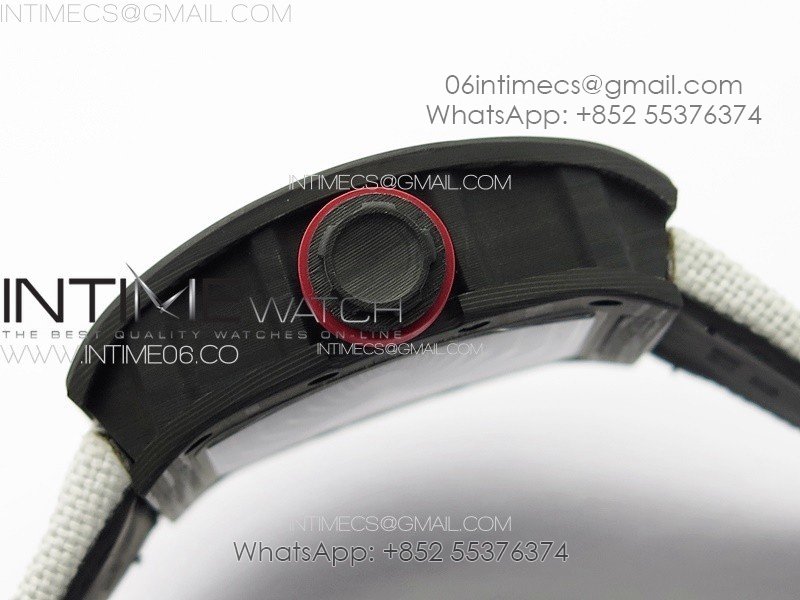 RM055 Real Forged Carbon Case KUF Best Edition Red Crown on White Nylon Strap MIYOTA8215