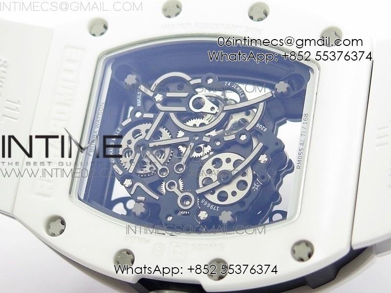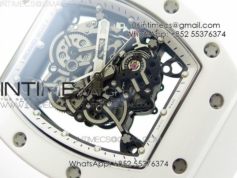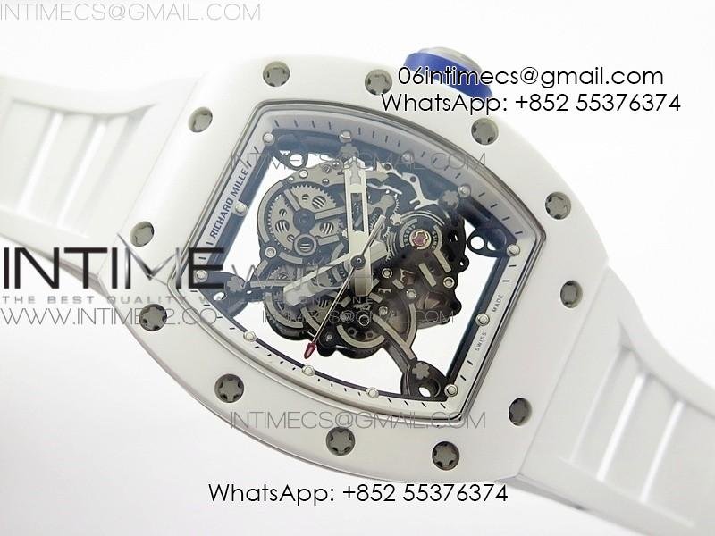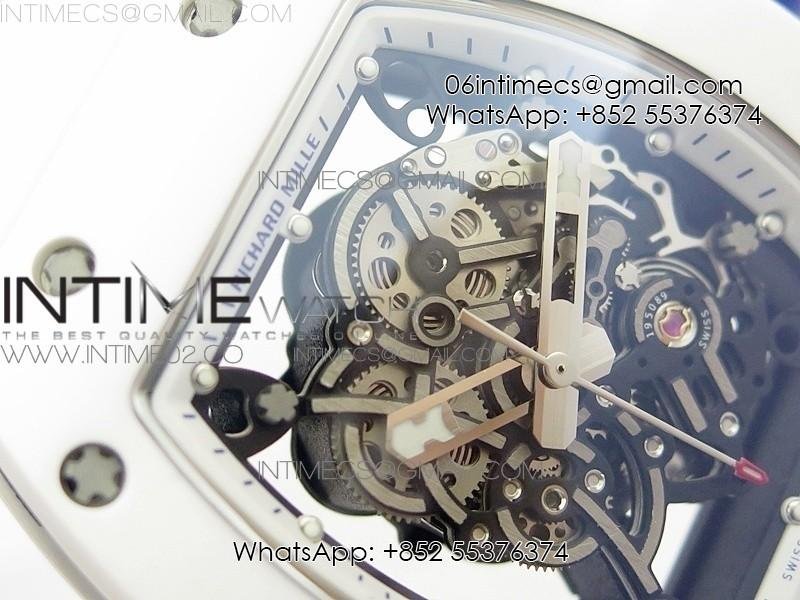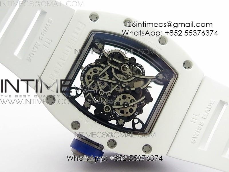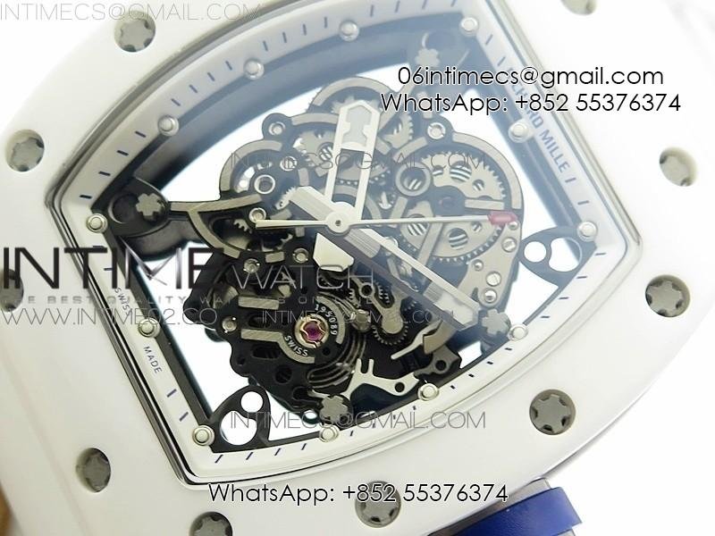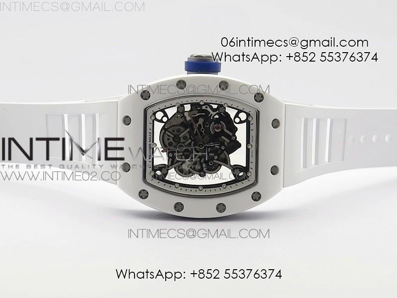 RM055 Real White Ceramic Case KVF Best Edition Skeleton Dial Blue on White Rubber Strap MIYOTA8215