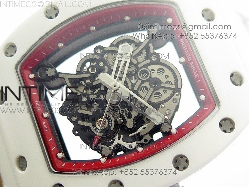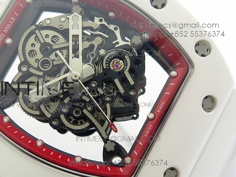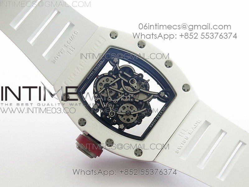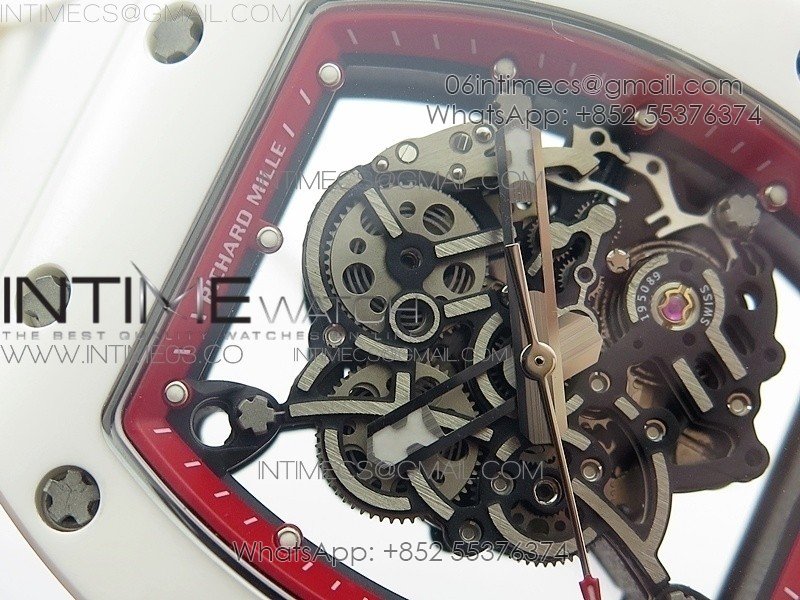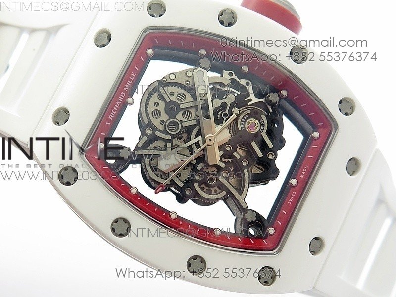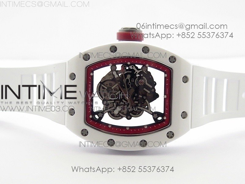 RM055 Real White Ceramic Case V2 KVF Best Edition Skeleton Dial Red Crown on White Rubber Strap MIYOTA8215
