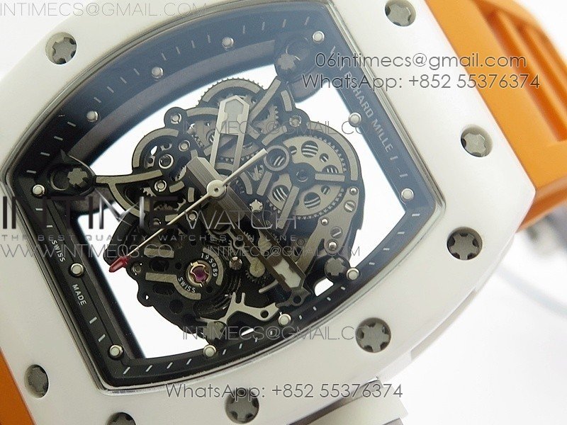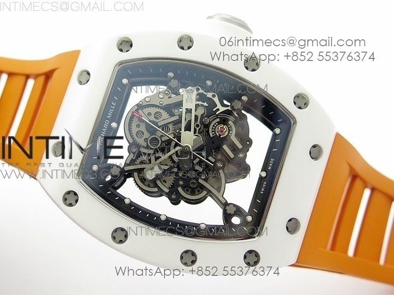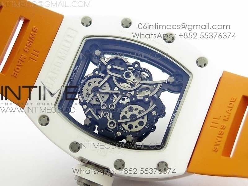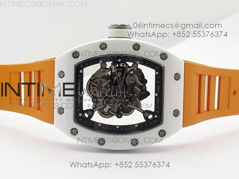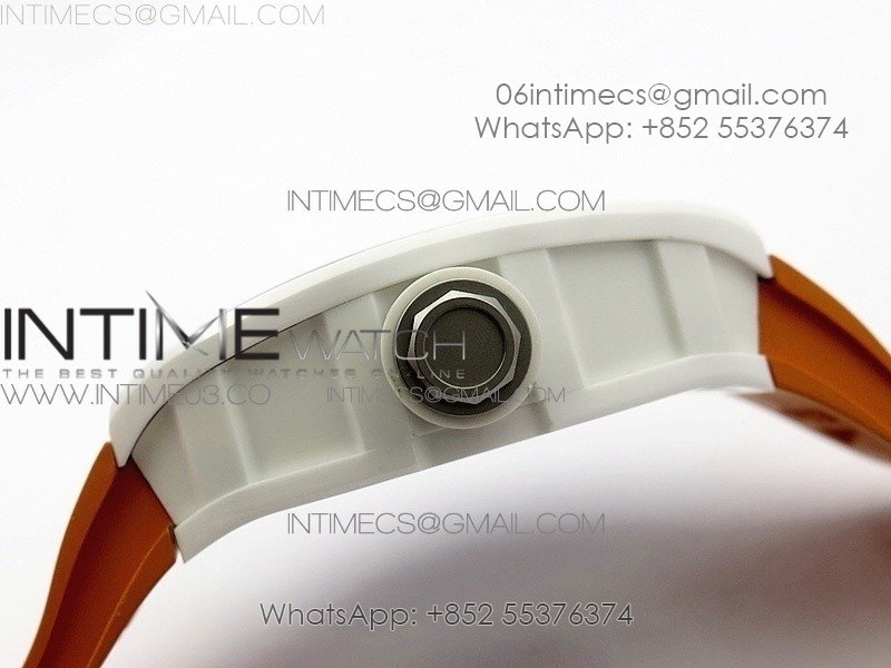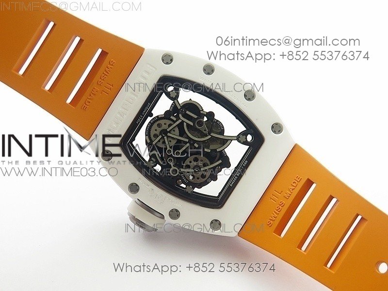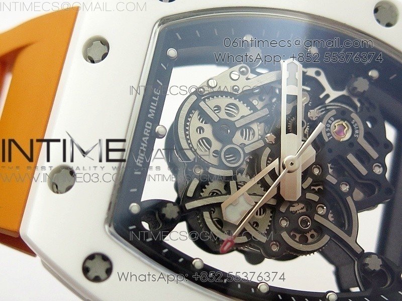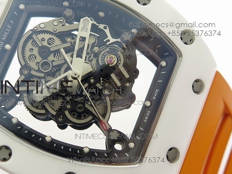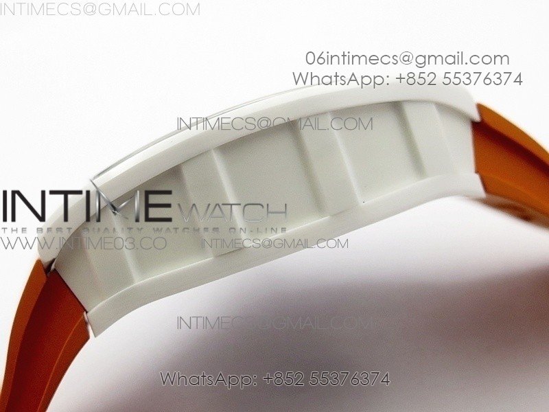 RM055 Real White Ceramic Case V2 KVF Best Edition Skeleton Dial White Crown on Orange Rubber Strap MIYOTA8215