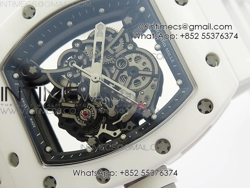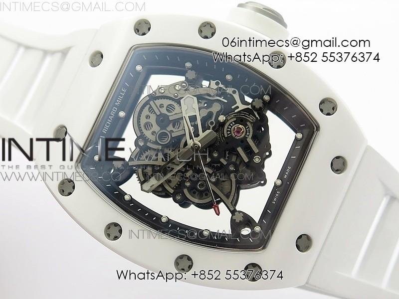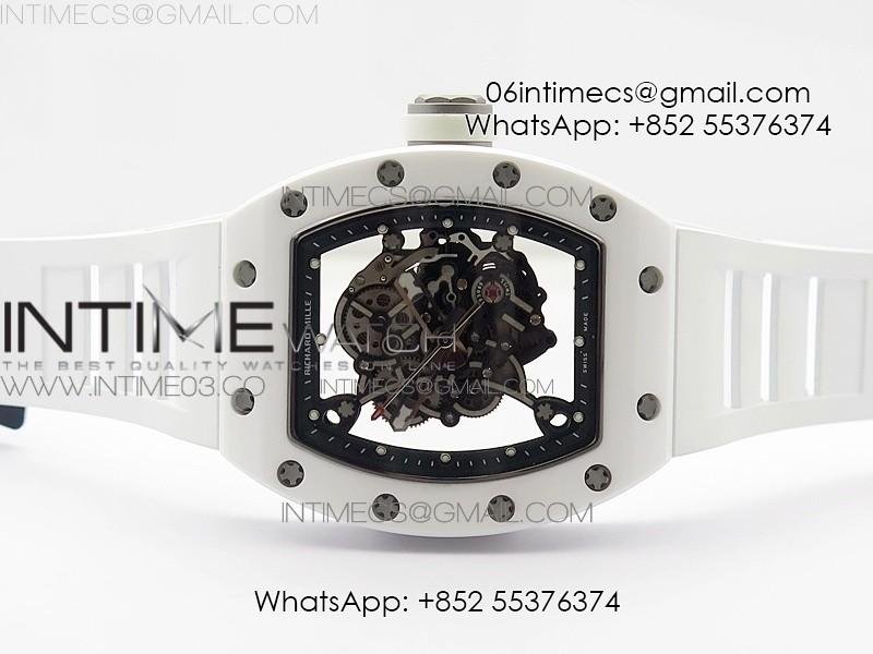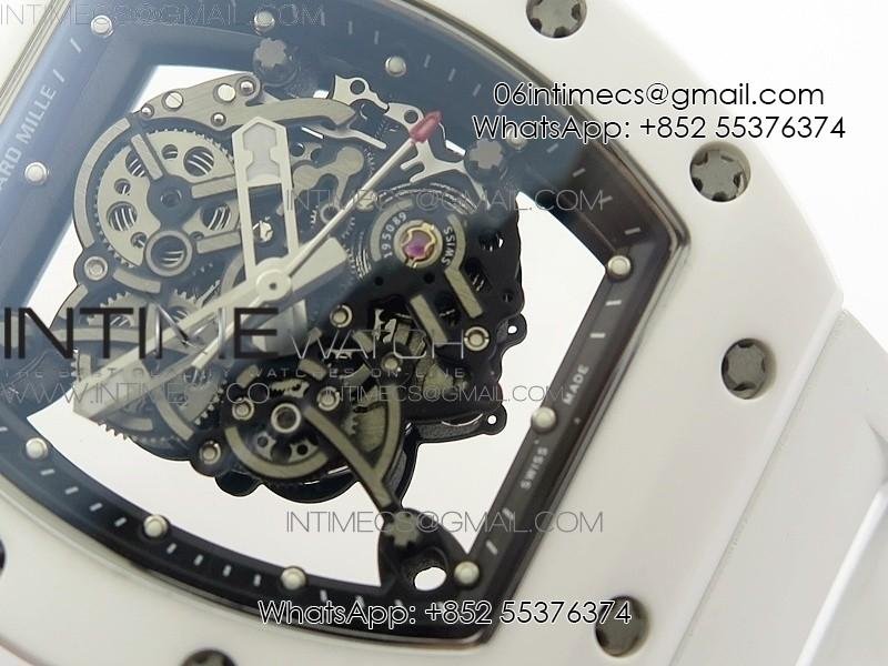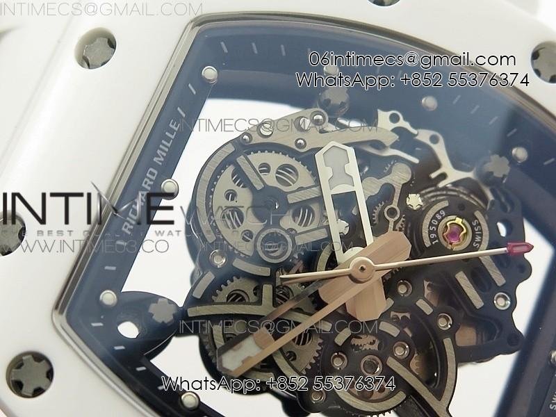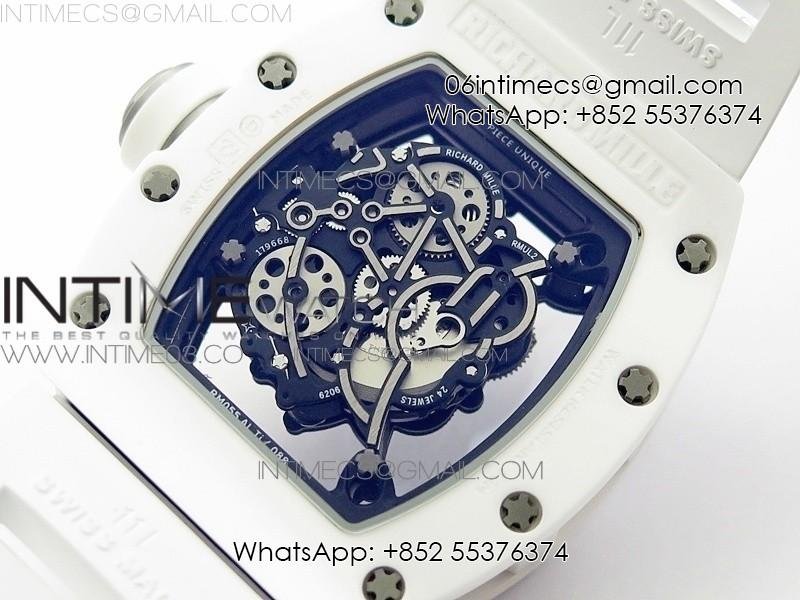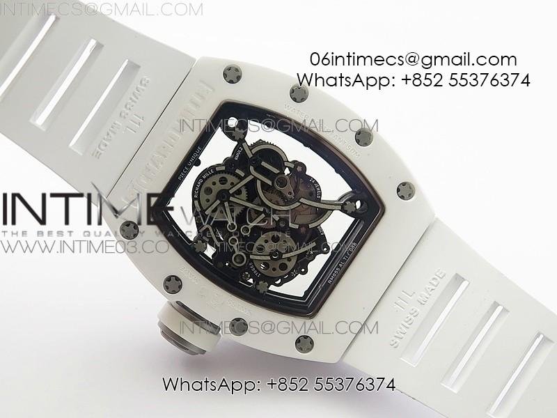 RM055 Real White Ceramic Case V2 KVF Best Edition Skeleton Dial White Crown on White Rubber Strap MIYOTA8215