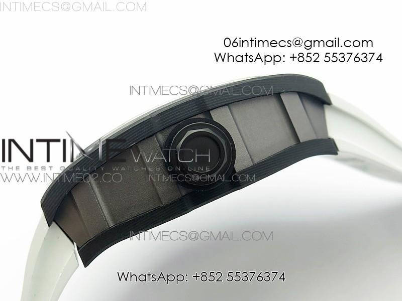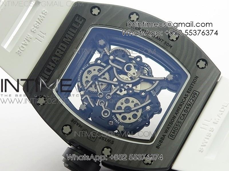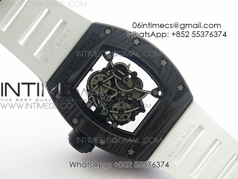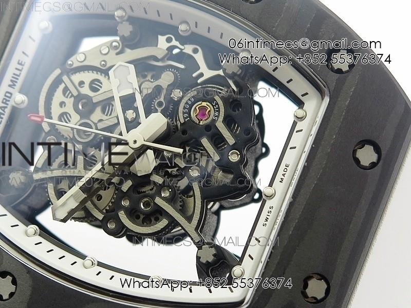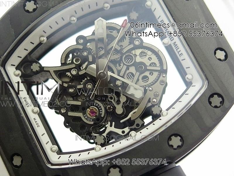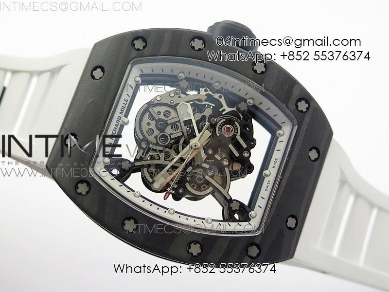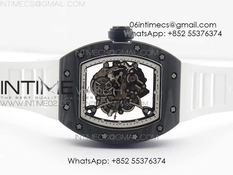 RM055 Ti Case KVF Best Edition Carbon Bezel Skeleton Dial Black Crown on White Rubber Strap MIYOTA8215