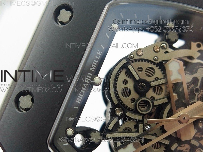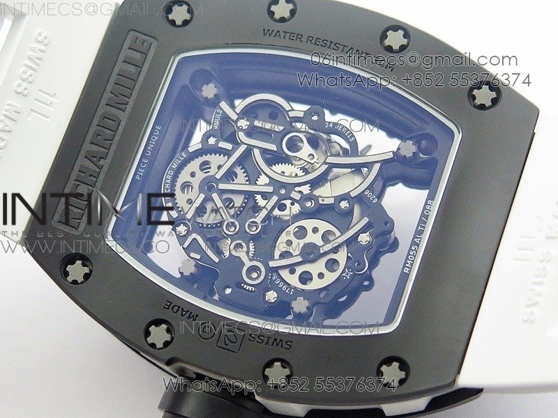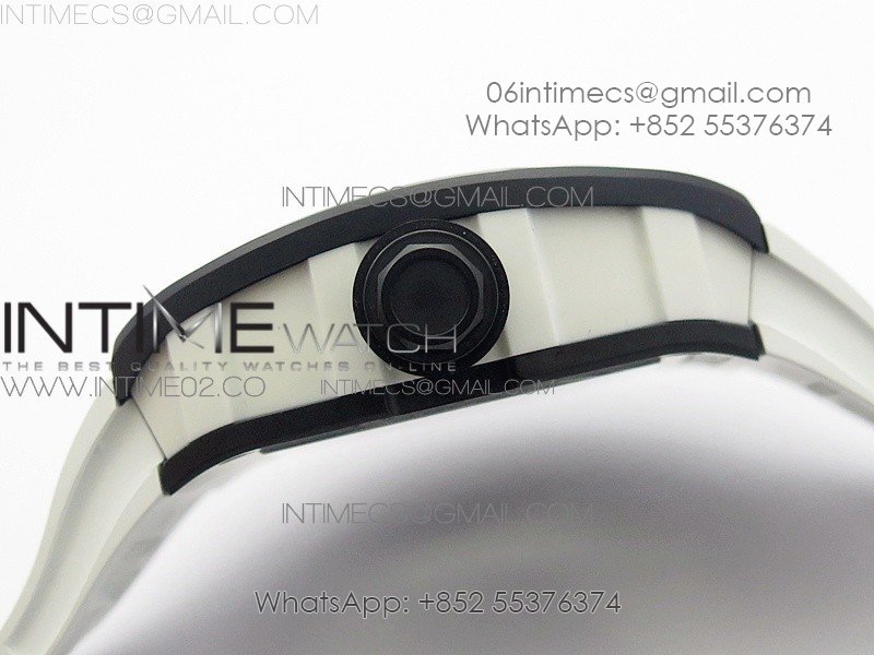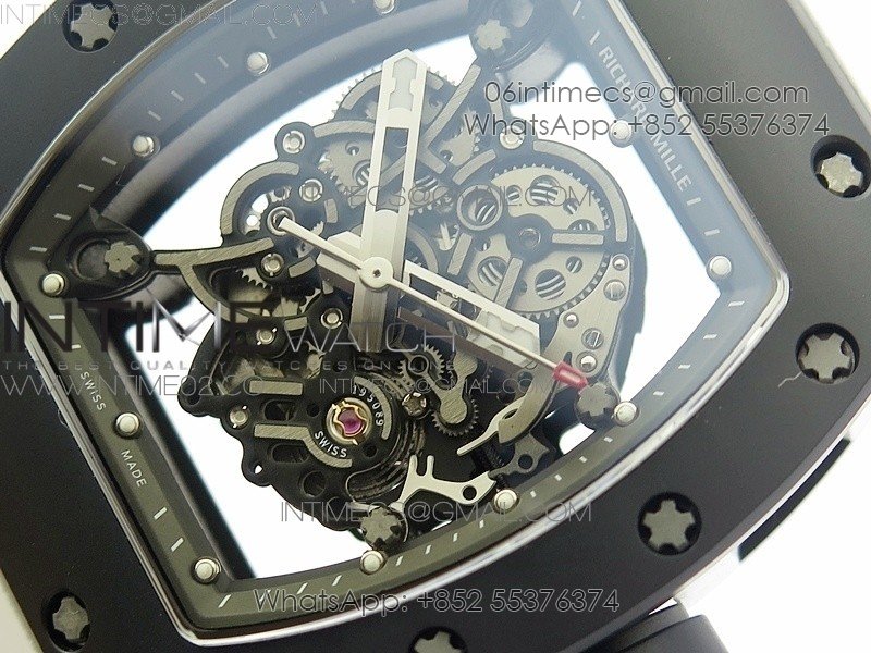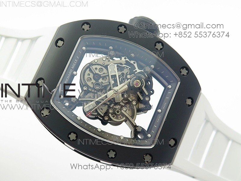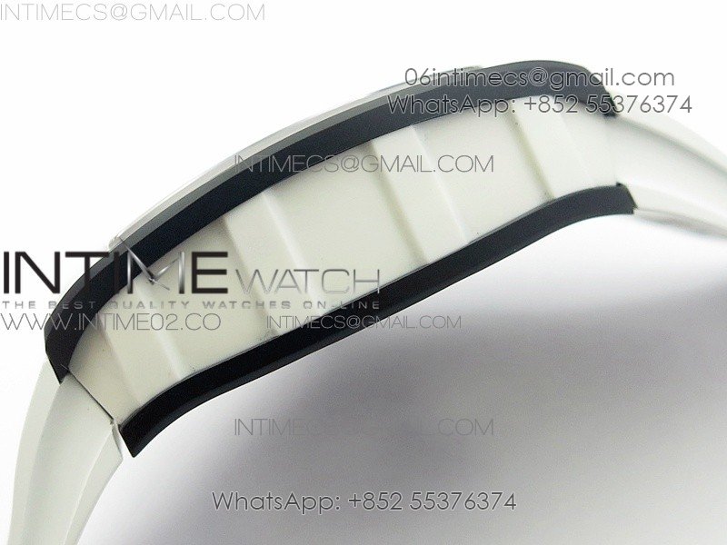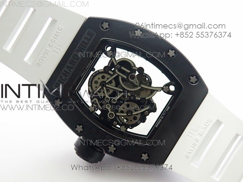 RM055 White Ceramic Case KVF Best Edition Black Ceramic Bezel Skeleton Dial on White Rubber Strap MIYOTA8215