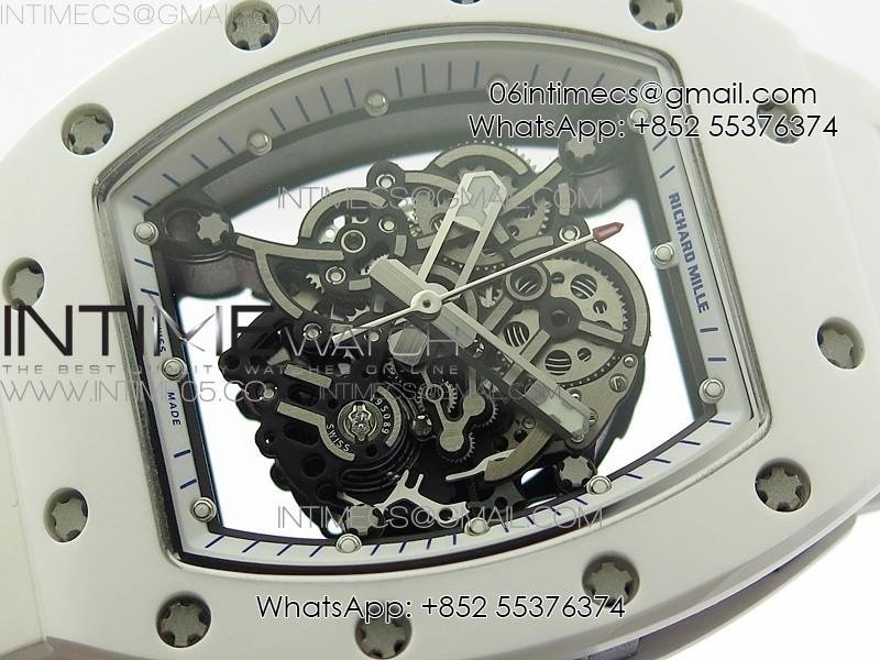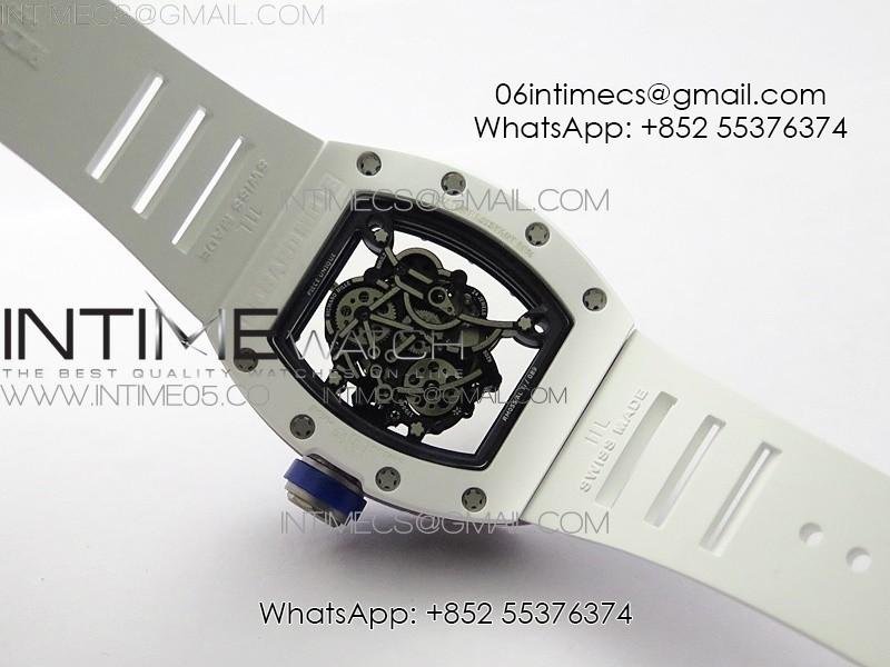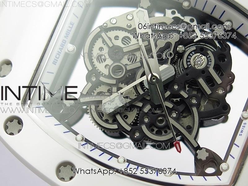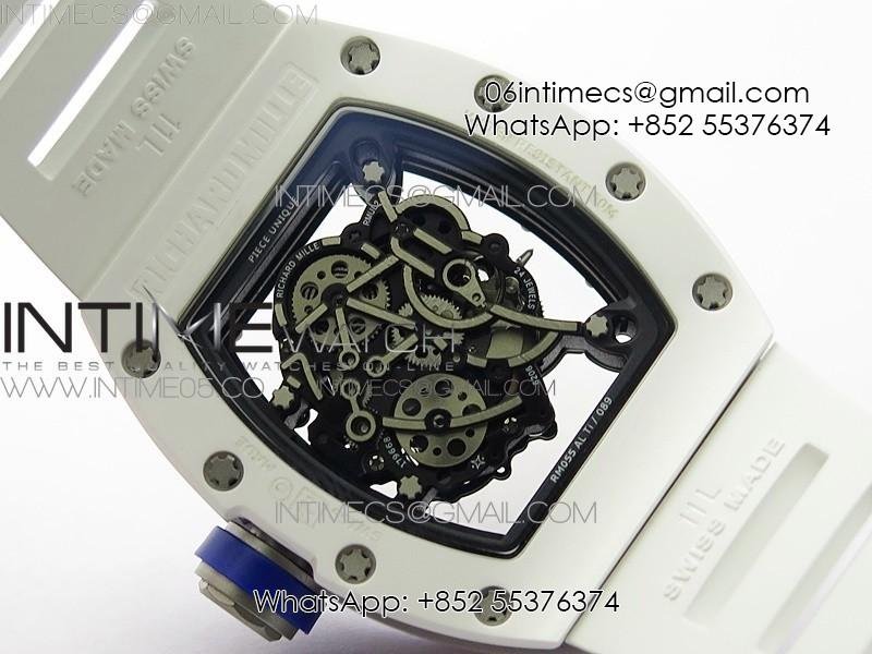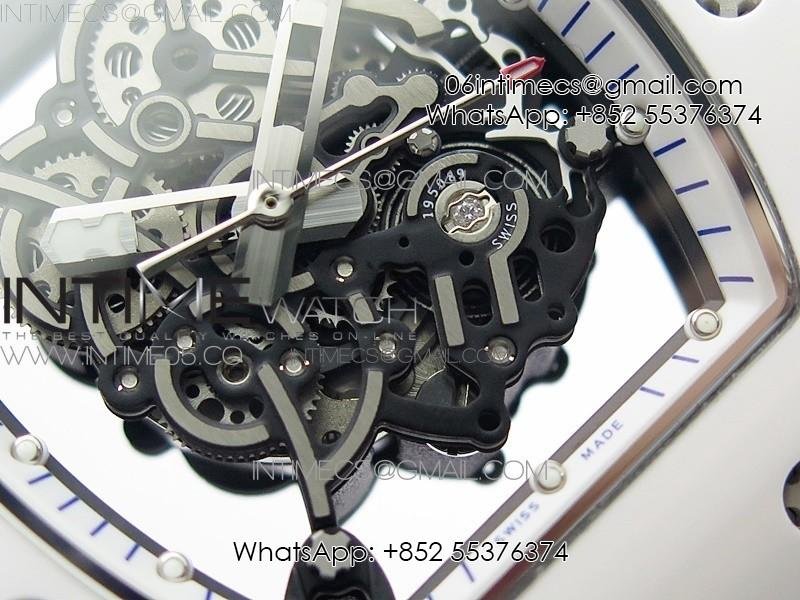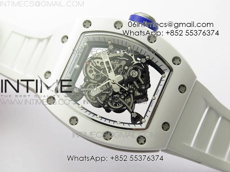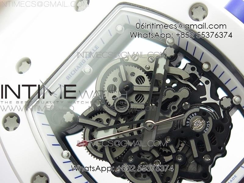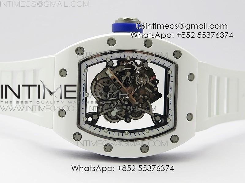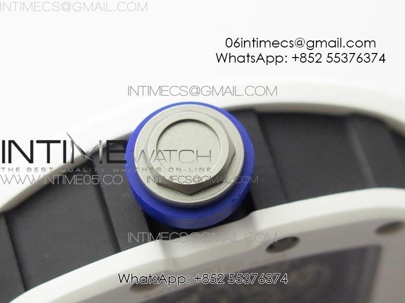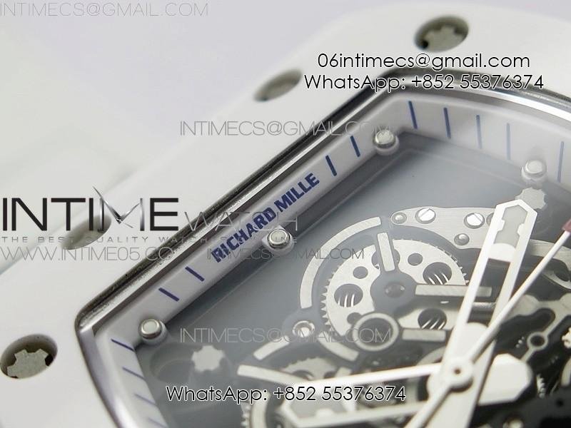 RM055 White Ceramic KVF Best Edition Skeleton Dial Blue Crown on White Rubber Strap MIYOTA8215 V3