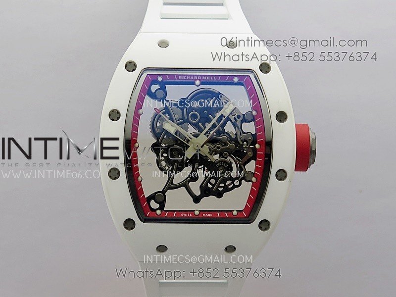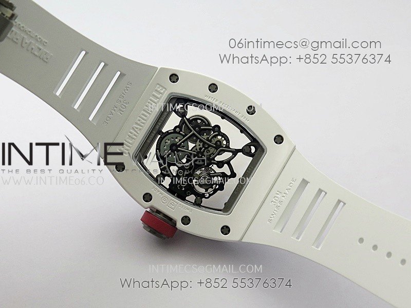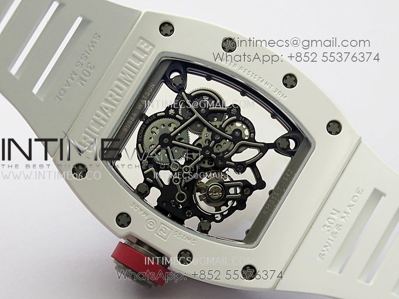 RM055 White Ceramic Red Inner Bezel APSF 1:1 Best Edition On White Rubber Strap RMUL2 Super Clone